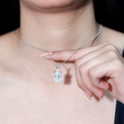 Moissanite 10X14mm Emerald Cut Necklace With Silver Chain