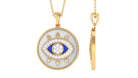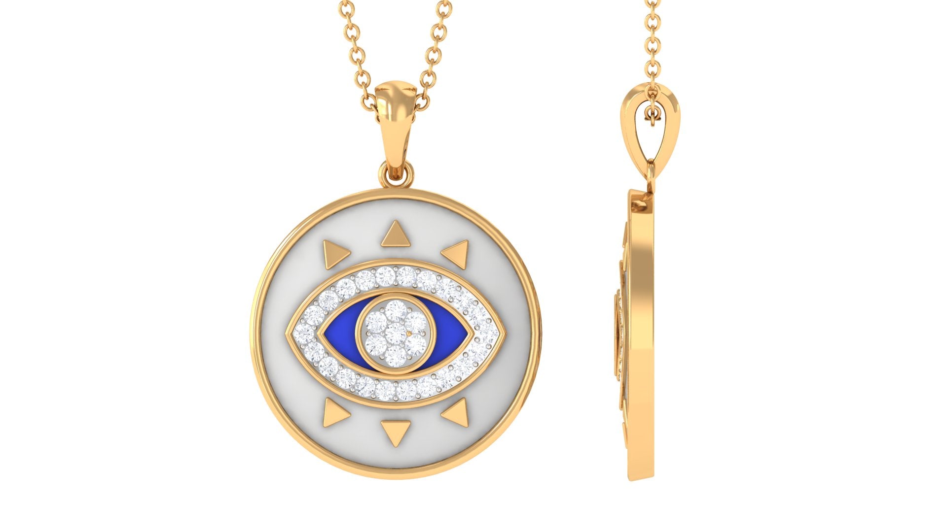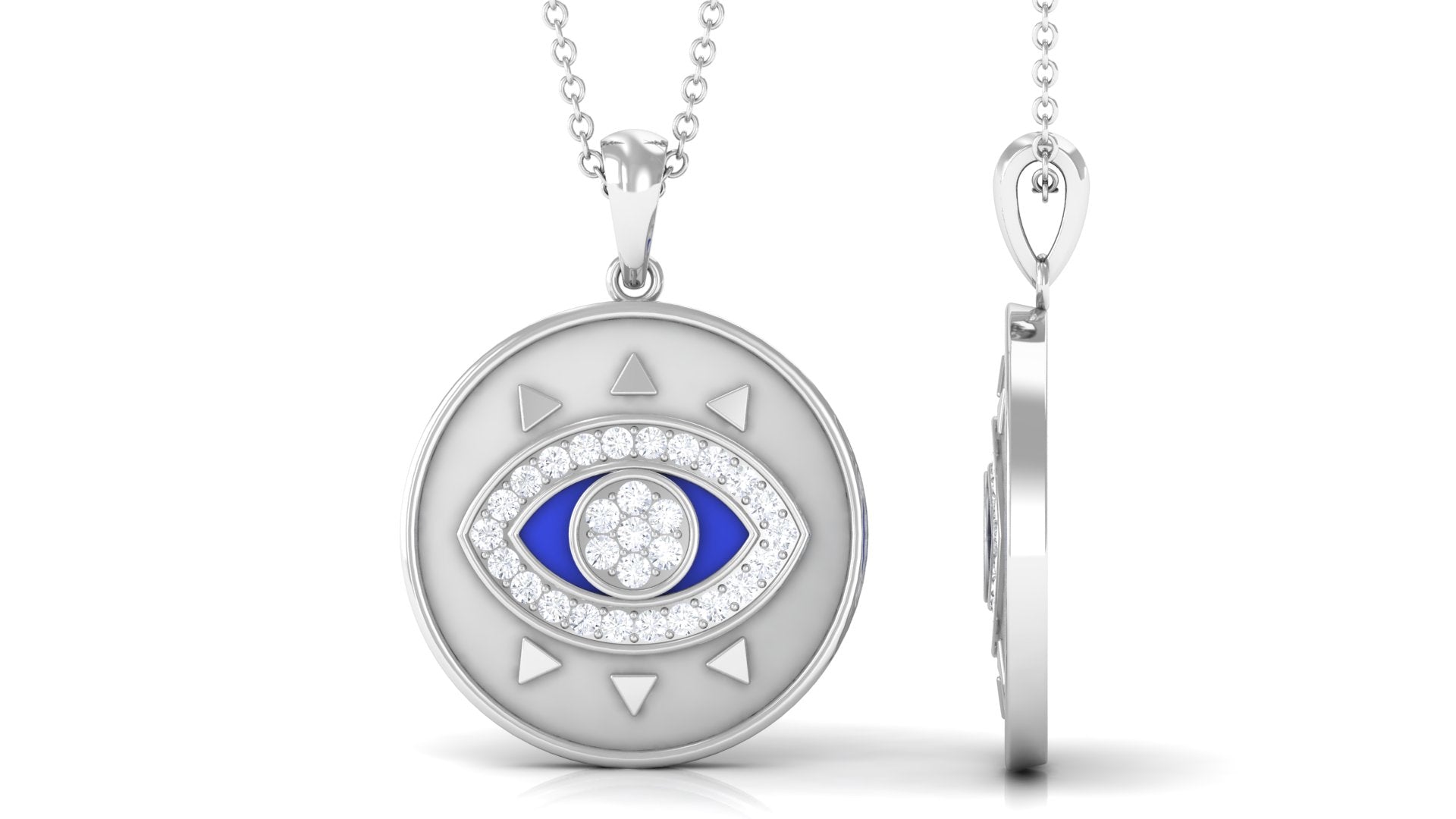Rosec Jewels designed this stunning Evil Eye Pendant to complement your beauty and shield your aura. This Moissanite Pendant is more than just a piece of jewelry, it is a symbol of protection, positivity, and elegance. It features a mesmerizing enamel-filled round disc with a center evil eye motif adorned with dazzling round cut D-VS1 quality moissanite stones in pave setting and deep blue enamel detailing. Whether it is a birthday, an anniversary, Halloween, Christmas, New Year, or any special occasion, this Disc Necklace makes a meaningful gift, reminding your loved one that they are always protected and cherished.
