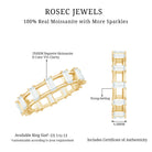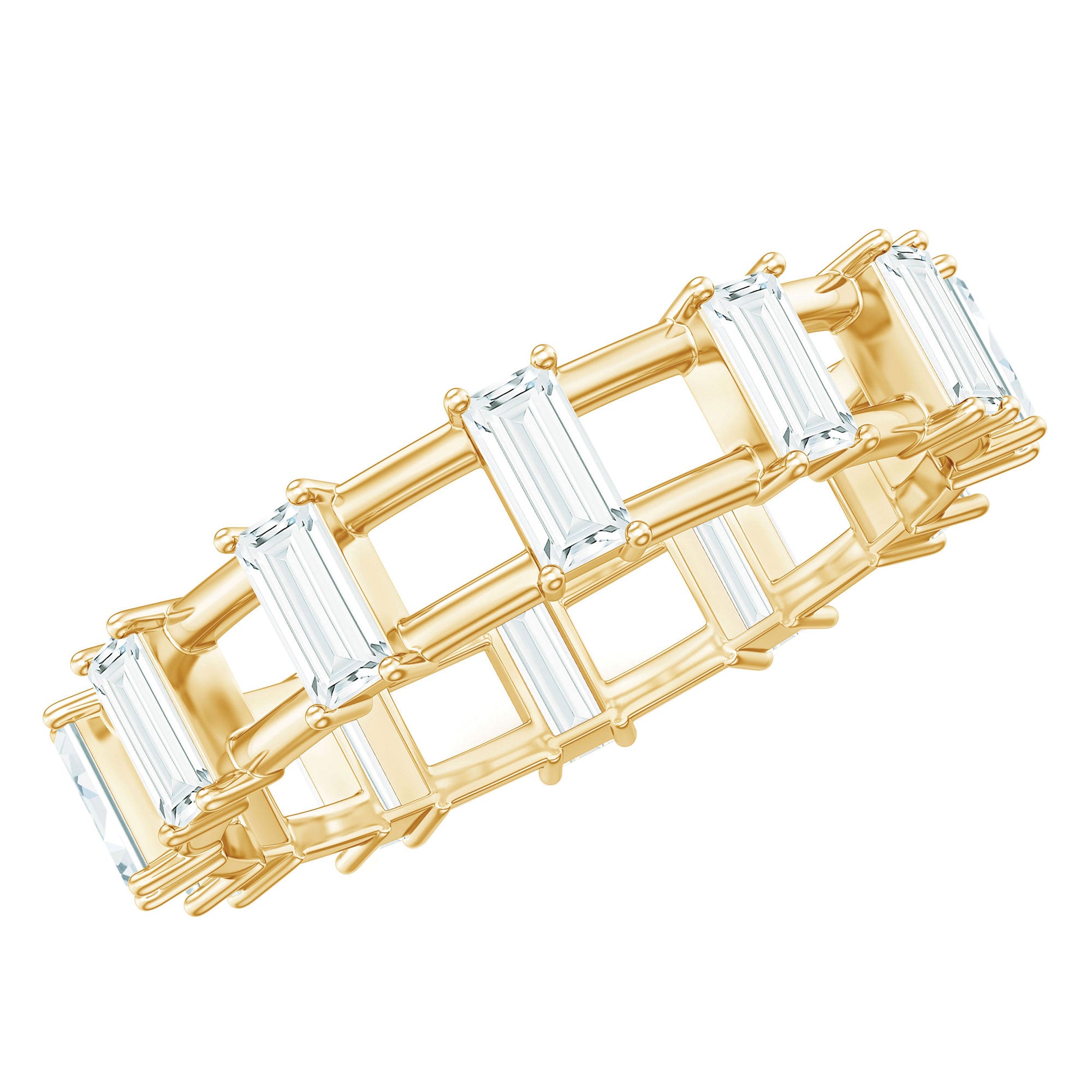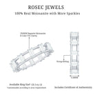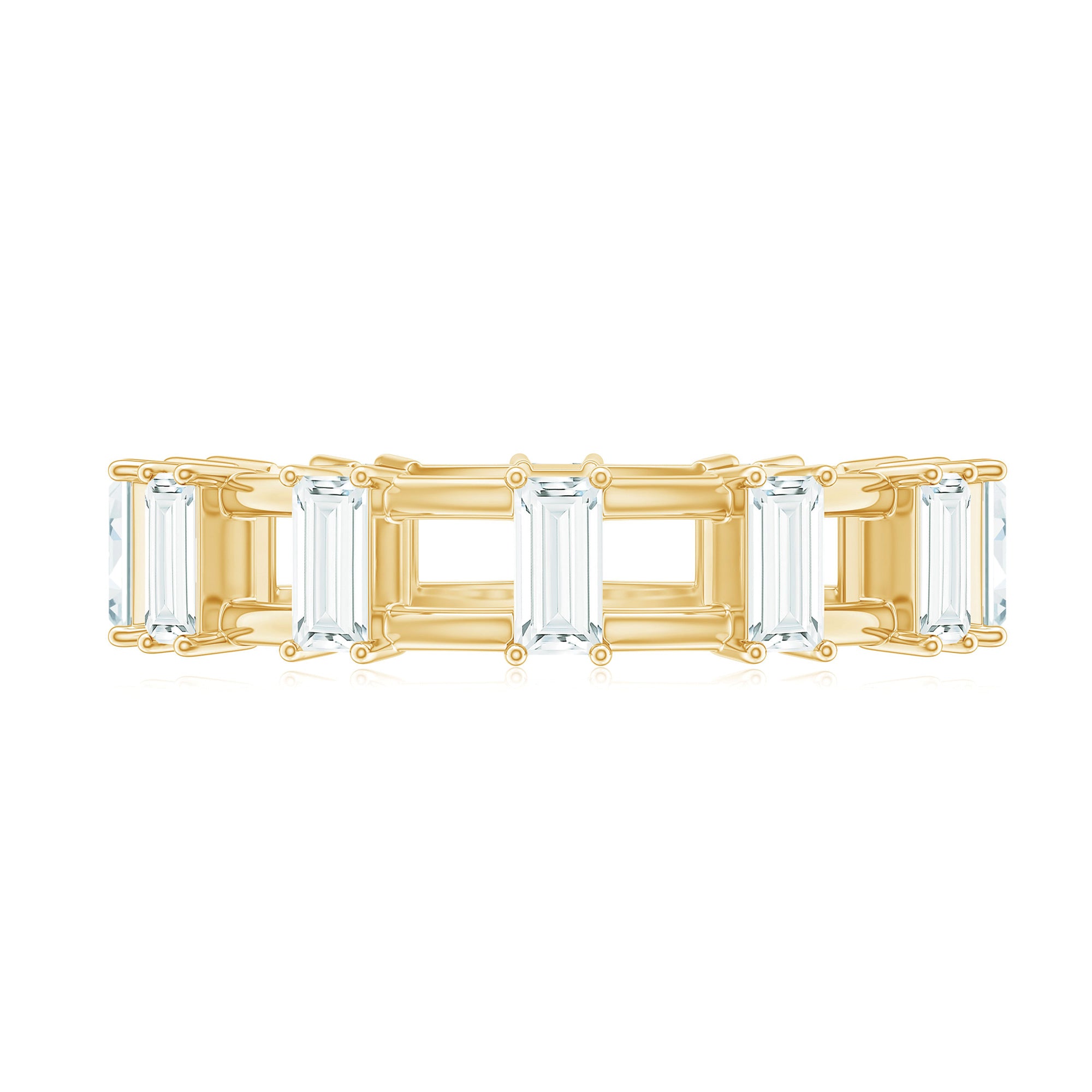 Crafted for those who appreciate a bold and contemporary look, this Full Eternity Band features a continuous row of precisely cut 2X4 MM baguette moissanites, each selected for their exceptional D color and VS1 clarity. These sparkling stones are set in a secure prong setting that not only enhances their geometric brilliance but also allows maximum light to dance through every facet. The uniform spacing and symmetry give it a distinct station band feel, offering a structured yet airy look that feels modern and timeless all at once. Because it is a full eternity design, the sparkle wraps seamlessly around the finger, no matter how you move your hand, brilliance is always on display. It is the kind of Moissanite Wedding Band that makes a statement without saying a word, perfect for wedding vows, anniversaries, or simply celebrating your own journey. Whether worn solo or stacked with other rings, this piece adds a contemporary edge to any collection. And let’s not forget the craftsmanship. Each stone is expertly set to ensure comfort and durability, making it just as wearable as it is beautiful. This Baguette Wedding Band is a wearable symbol of lasting elegance and love, designed to turn everyday moments into something a little more extraordinary.