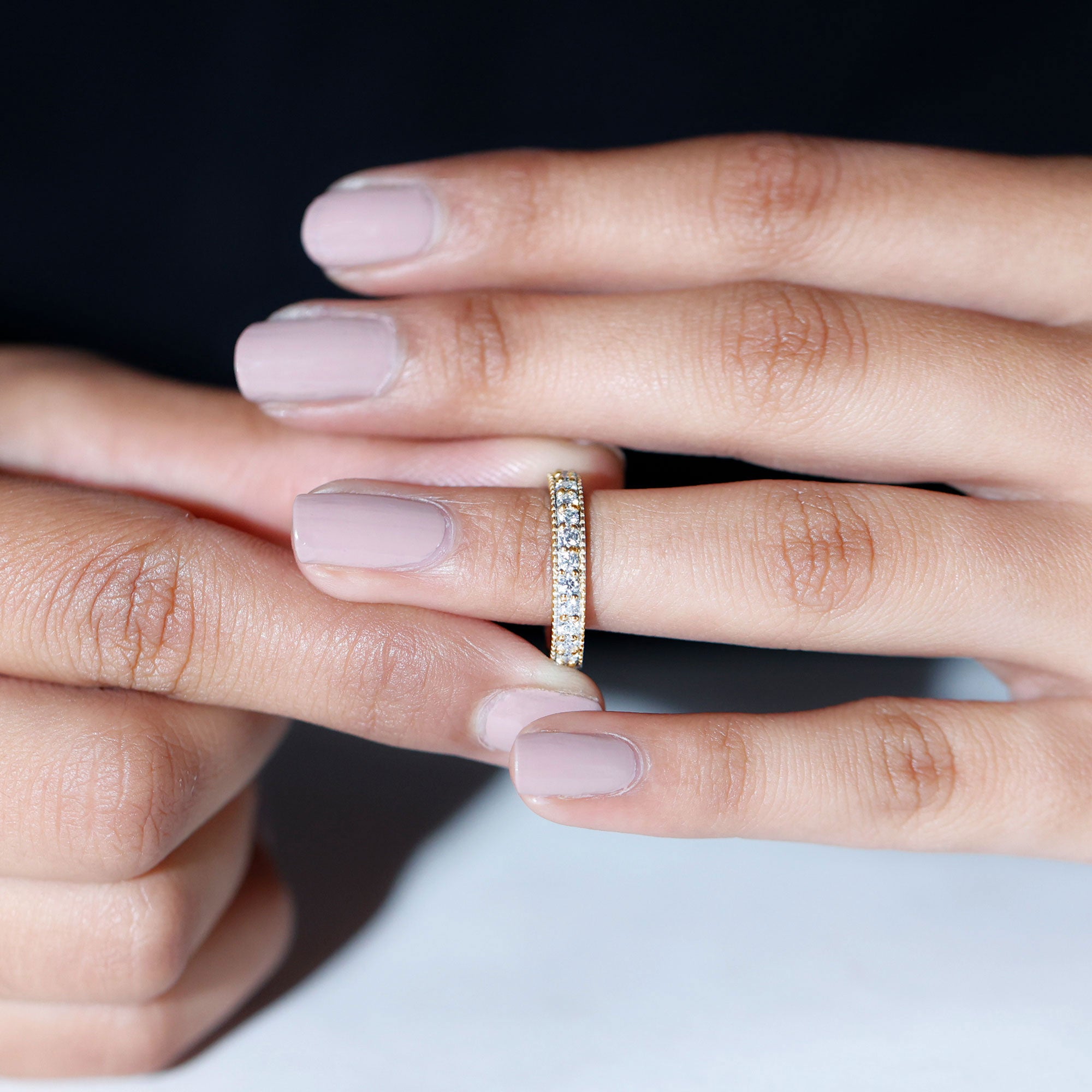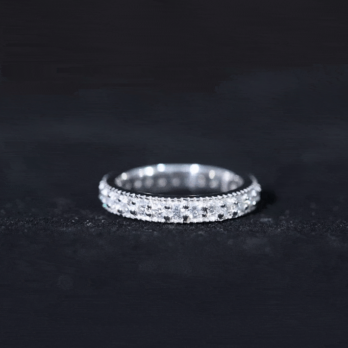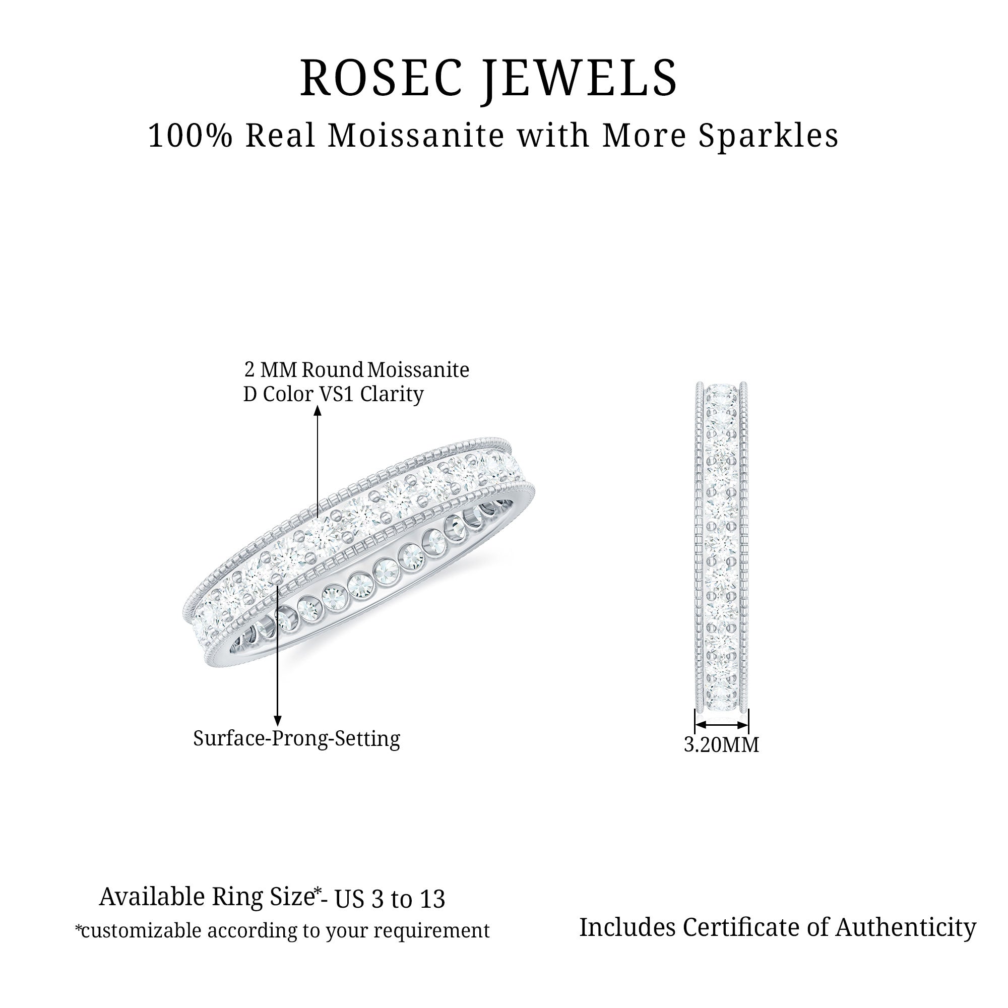 This Full Eternity Ring is the ultimate symbol of everlasting love. It is not just a gorgeous piece; it is a tribute to the moments that truly matter. Crafted with D-VS1 Quality brilliance, each Round Shape Moissanite is set in a sleek continuous band that radiates purity, strength, and a love that lasts forever. This Eternity Wedding Band is beautifully enhanced with milgrain detailing along the edges, designed to commemorate your most significant milestones, whether it is a wedding or an anniversary. The sparkle of this Moissanite Eternity Band is hard to miss, but it is the feelings behind each twinkle that really make it special. Sleek, timeless, and super versatile, this Moissanite Anniversary Band comes in a signature jewelry box, perfect for gifting or keeping for yourself for years to come. Add a touch of forever to your daily style, stack it with your favorite pieces, or let it shine on its own, the choice is yours. Decorate your fingers with a piece that not only looks amazing but also serves a purpose: to remind you that some connections never fade, and some promises are meant to shine for a lifetime.