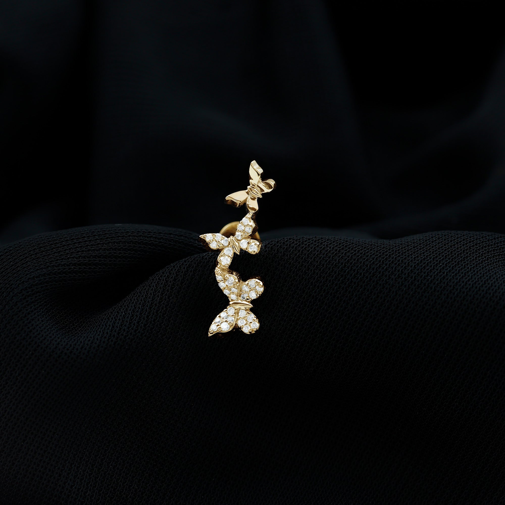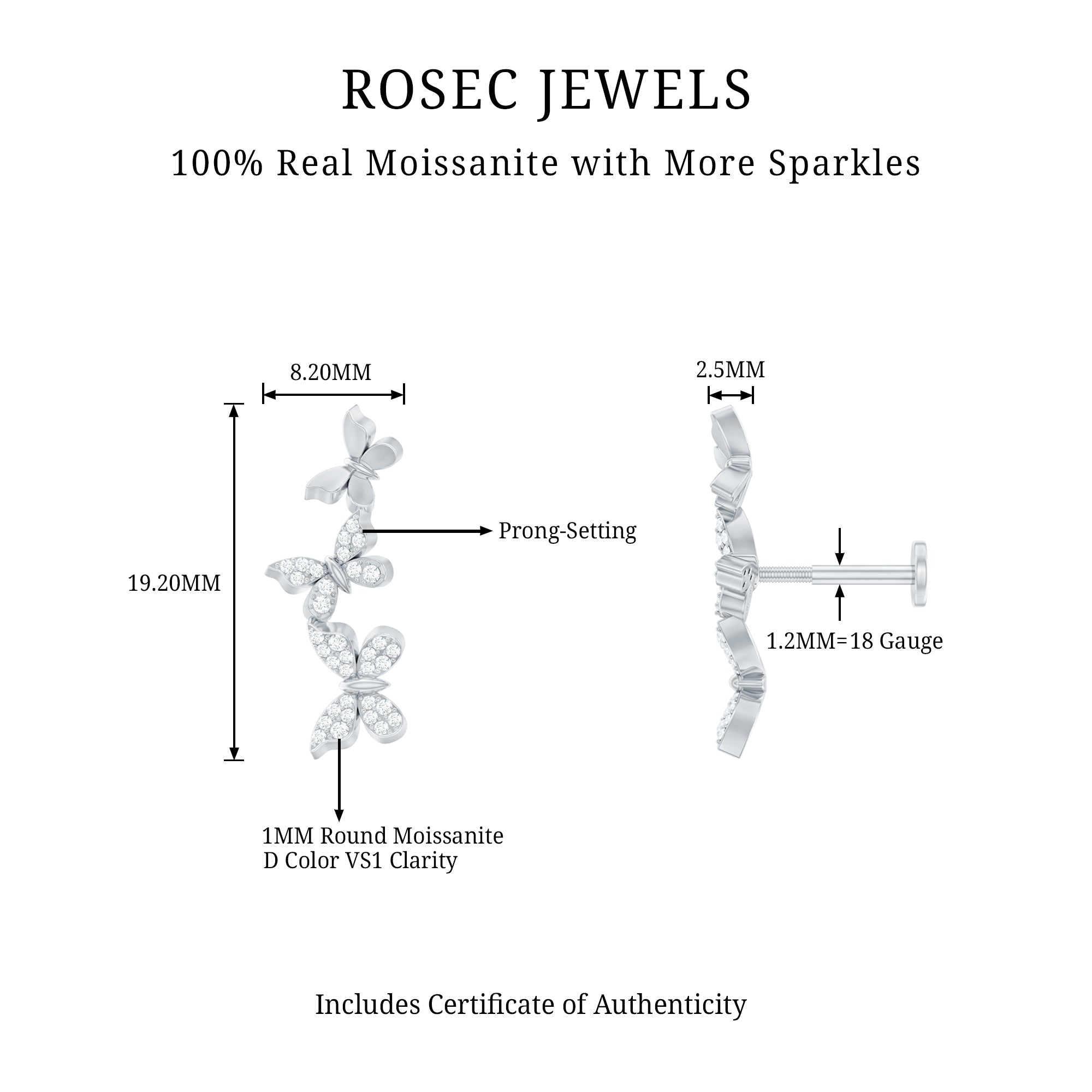 Our Moissanite Butterfly Climber Earring is a unique and stunning piece of jewelry that will elevate your ear piercing game to the next level. Featuring three butterfly designs, embellished with natural Round Cut Moissanites for an eye-catching sparkle. You can wear this Butterfly Earring on your Helix, Cartilage, or Upper Lobe Piercing.