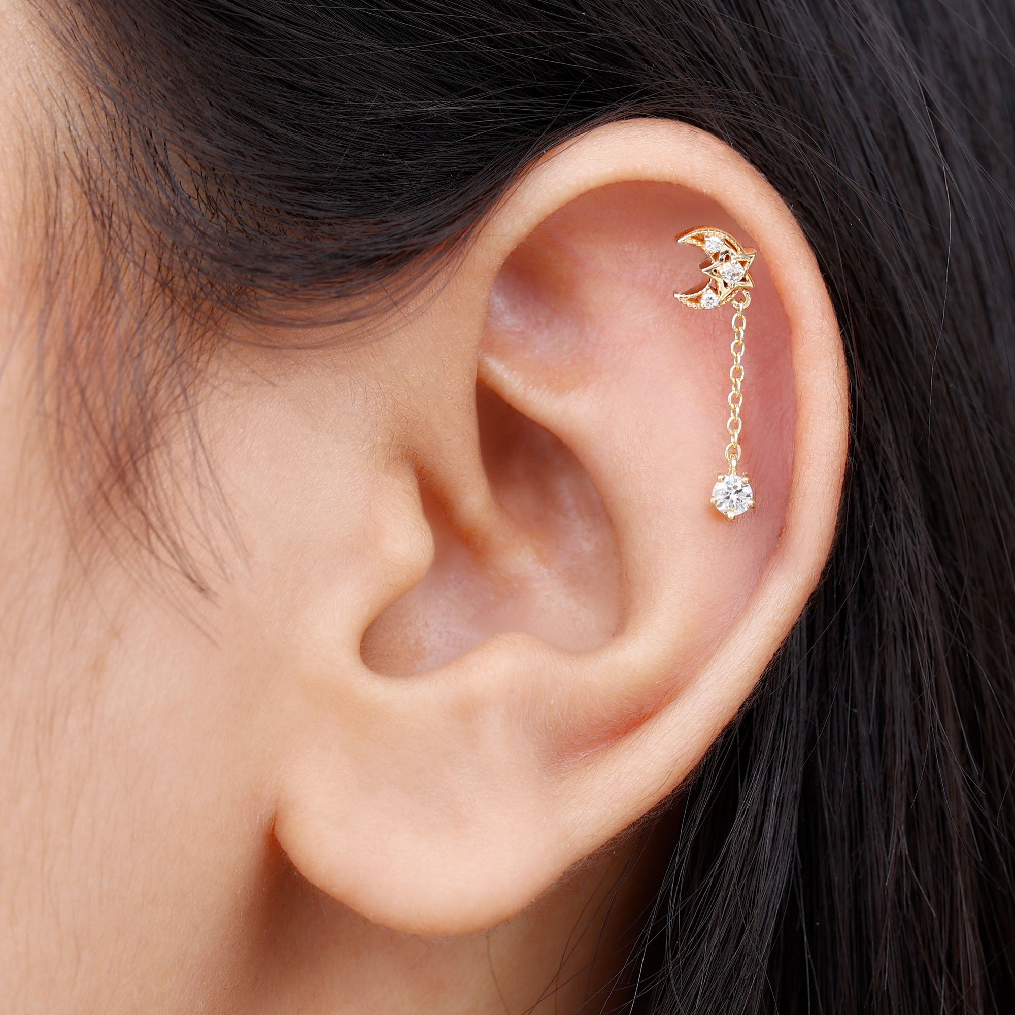 Moissanite Celestial Chain Drop Earring for Helix Piercing