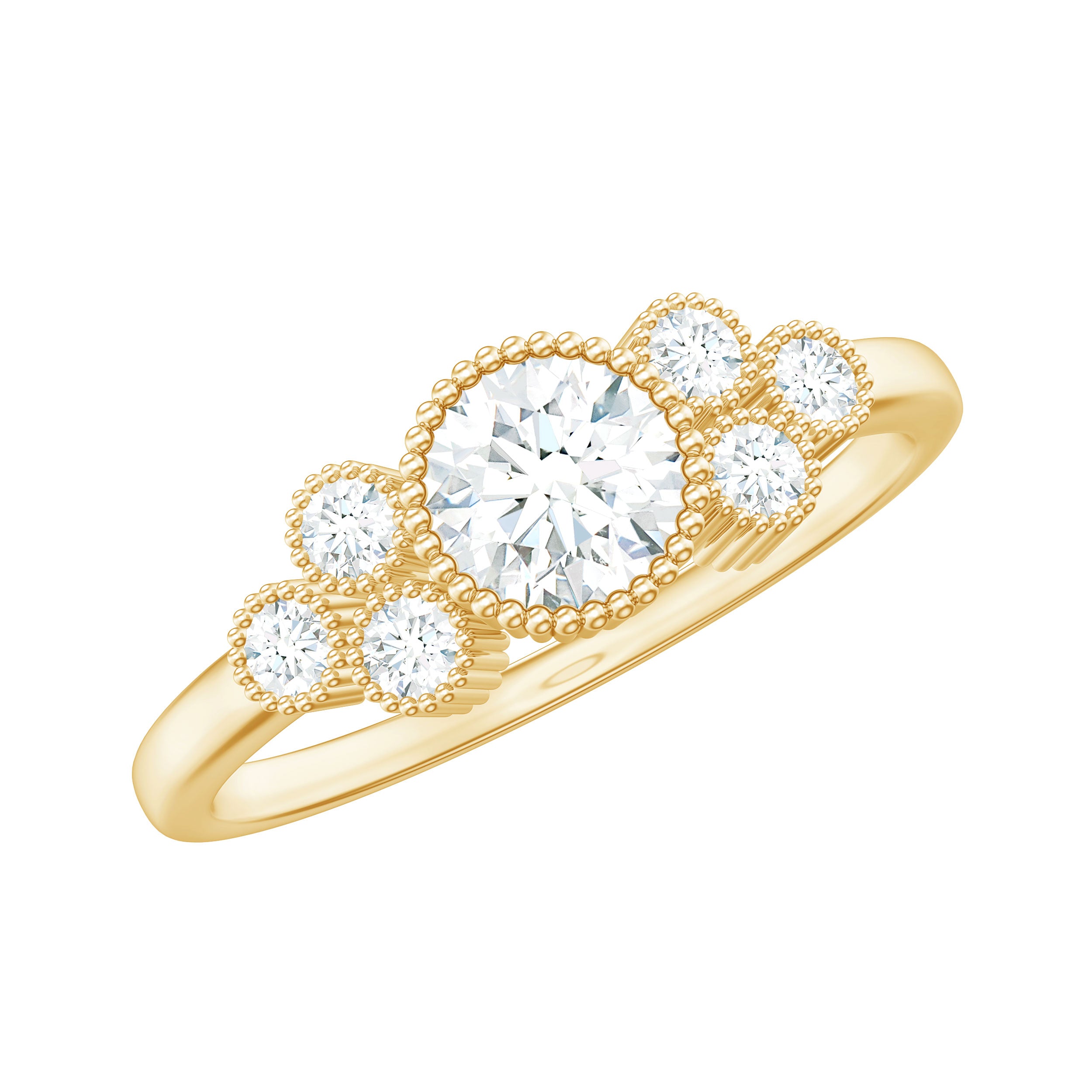 Moissanite Classic Engagement Ring with Beaded Details