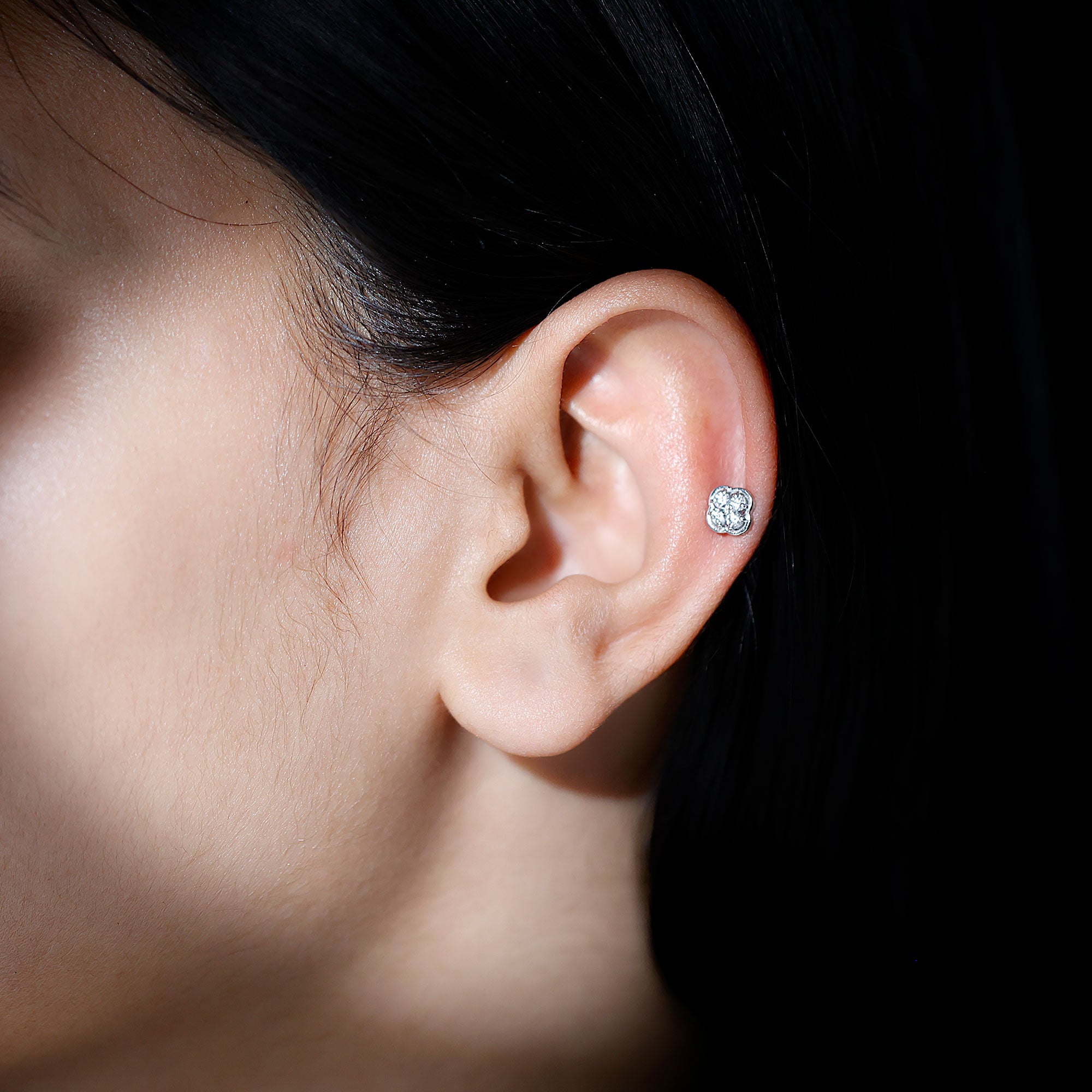 Adorned with four Round Cut Moissanites in Prong Setting on a clover design, this Clover Helix Earring is a stunning piece of jewelry that is sure to captivate everyones attention. Whether you wear it on your Helix, Cartilage, Conch, or Upper Lobe Piercing, this Cluster Earring will make a trendy addition to your collection. You can wear it alone or pair it with your favorite pieces to create unique looks. This Helix Earring features a Flat Back Closure to keep it securely in place.