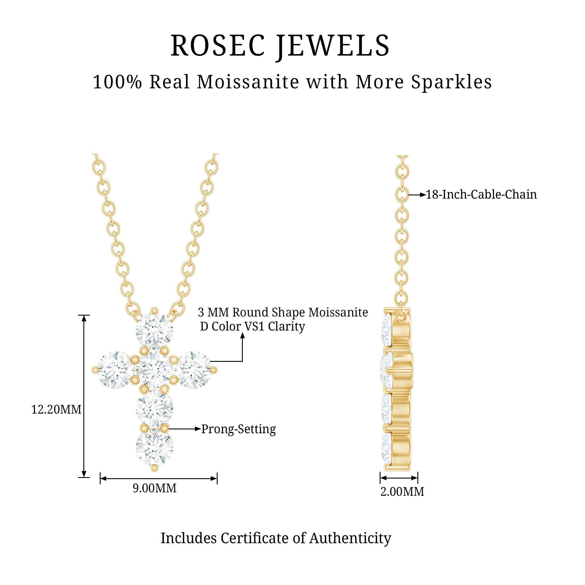 Let a piece of you shine with this meaningful symbol of Moissanite Pendant that reflects your most spiritual beliefs. The Round Cut Moissanite in Prong Setting on Cross Necklace also makes a present for yourself or the one who is very close to your heart. Protecting from evil this Moissanite Cross Necklace is also a jewelry for all occasions.