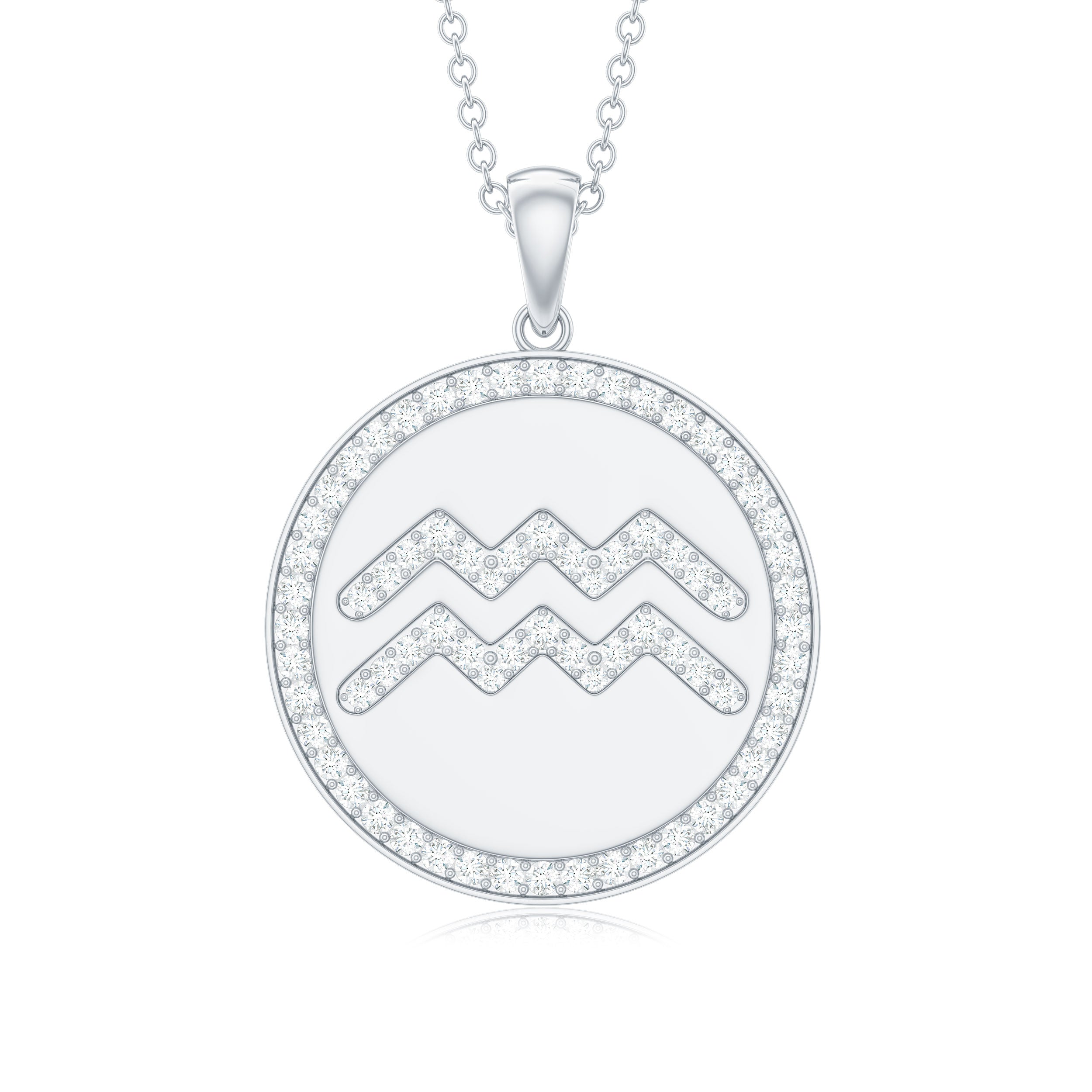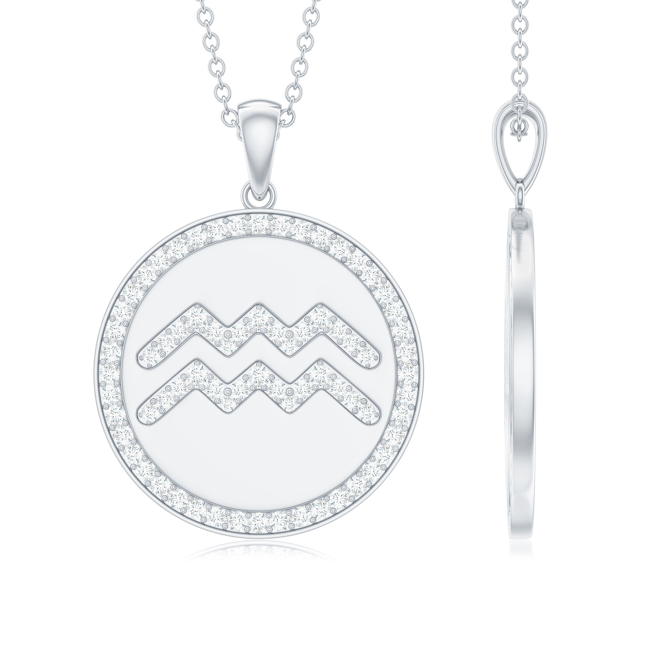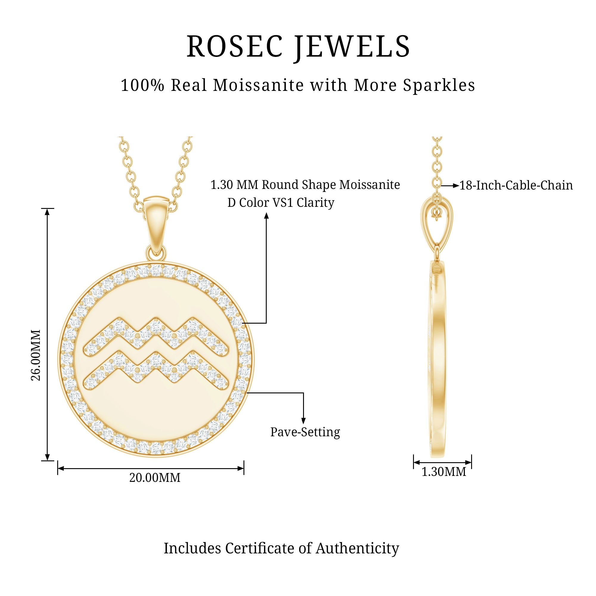 Moissanite Disc Aquarius Zodiac Sign Pendant Necklace