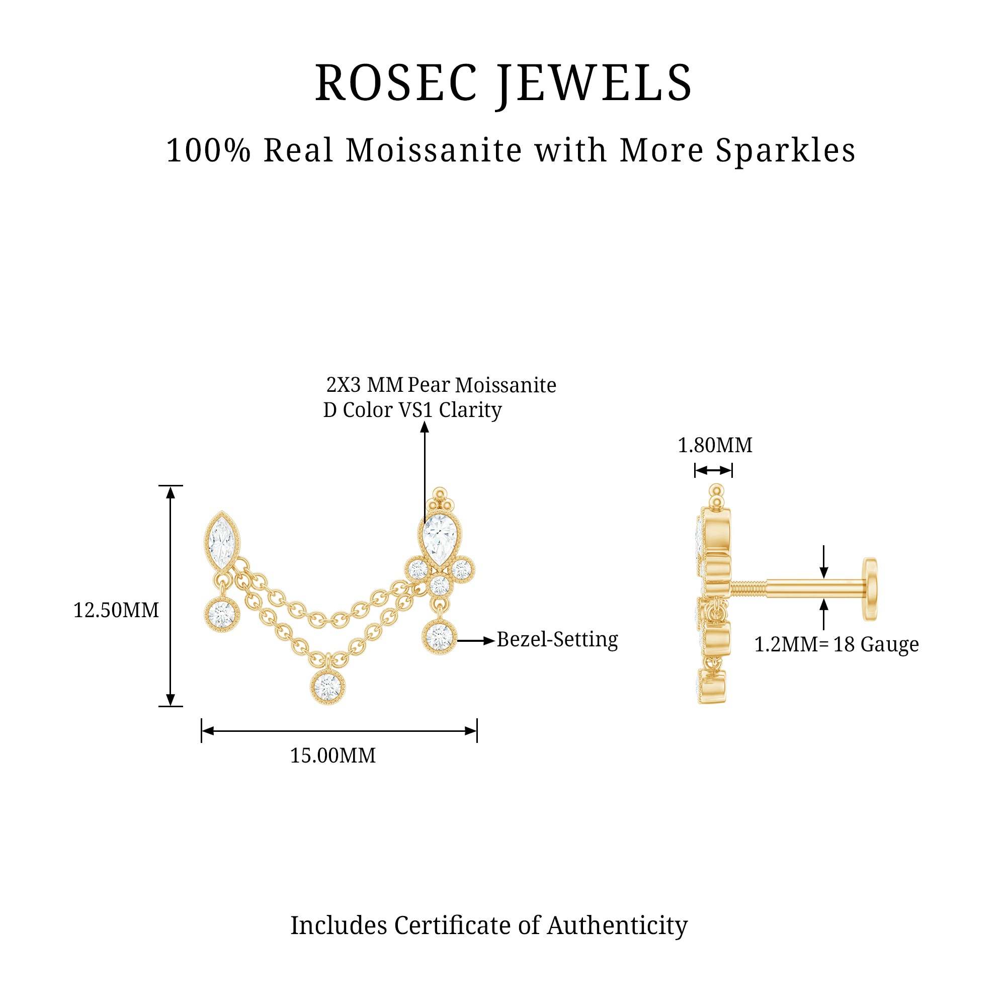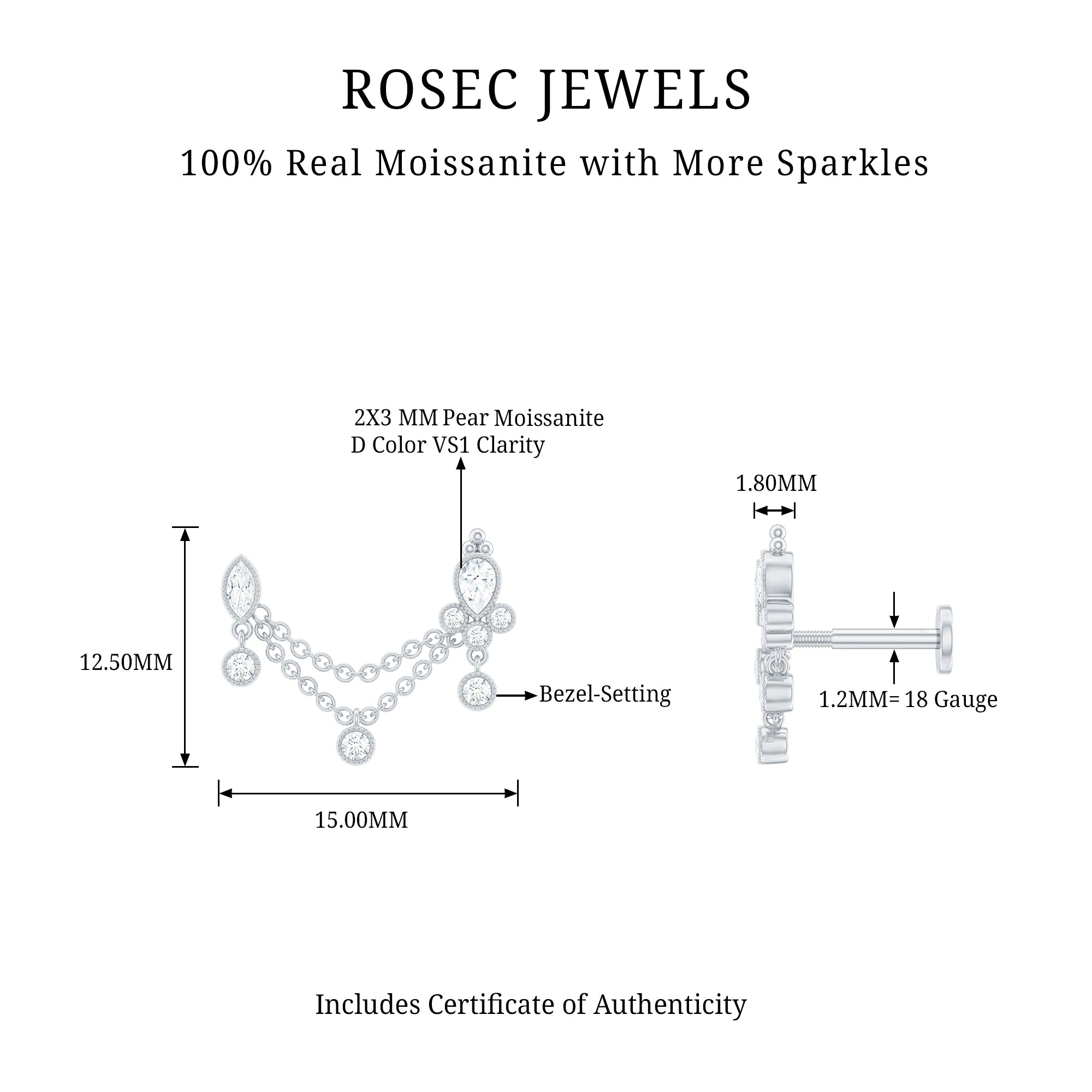 Moissanite Double Chain Earring for Helix
