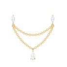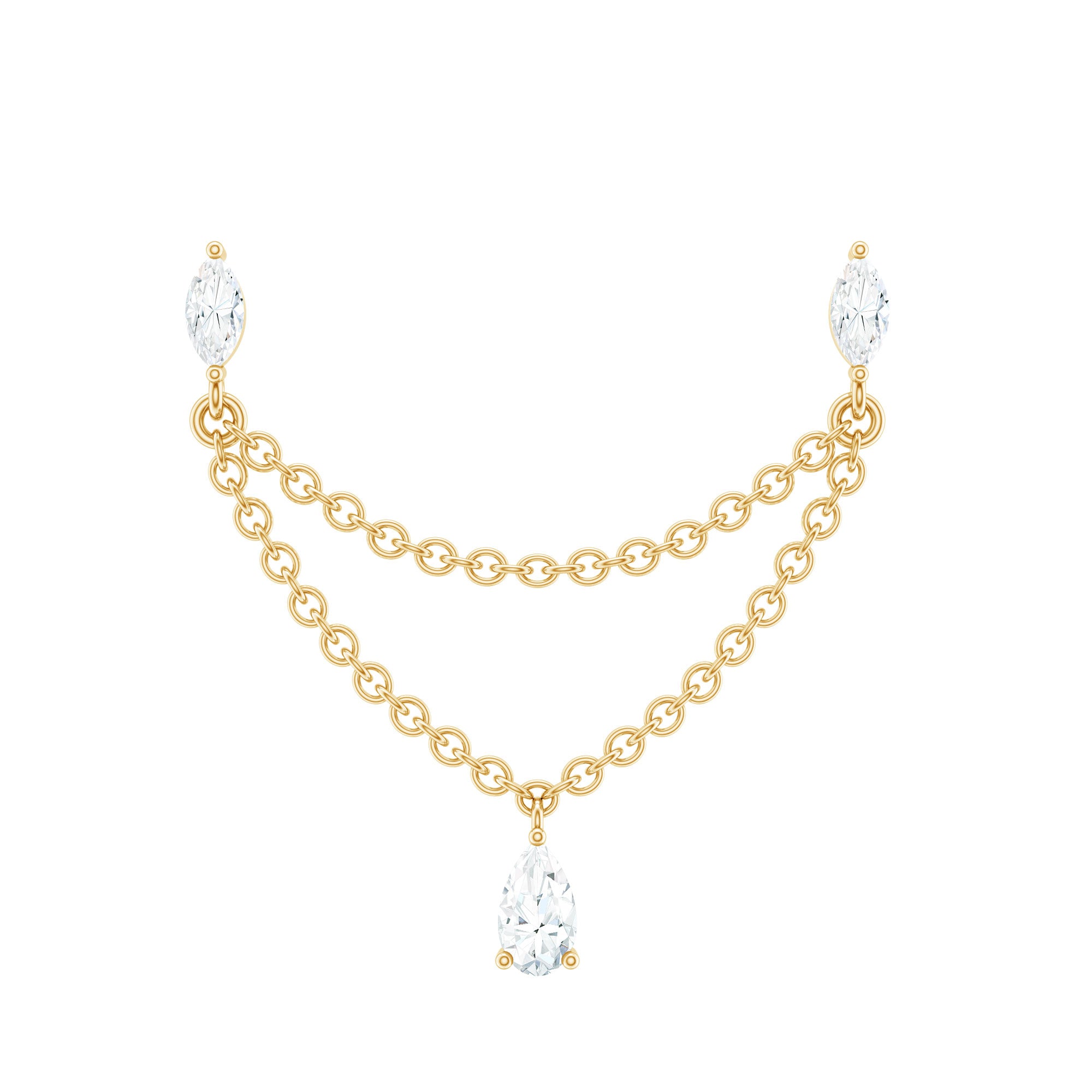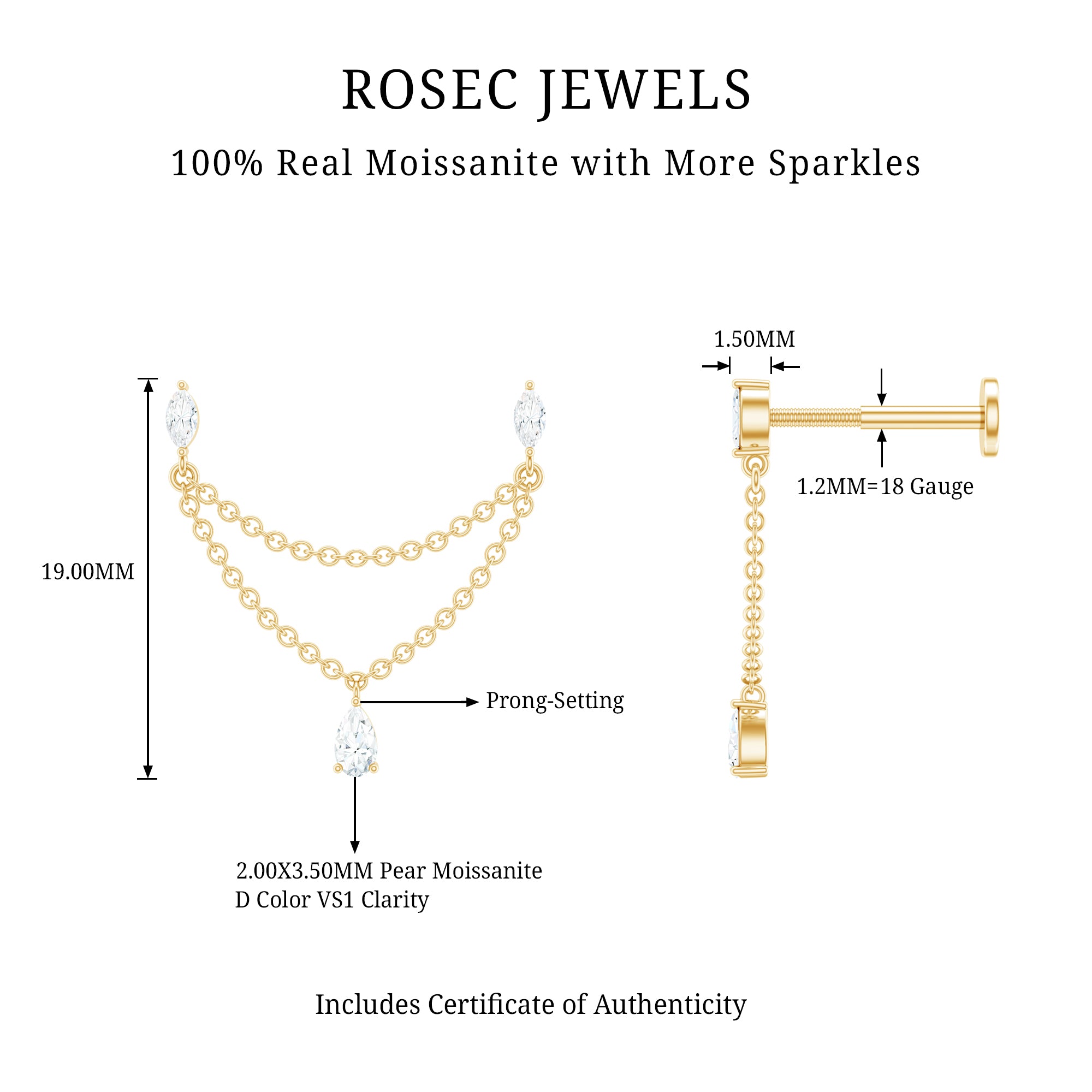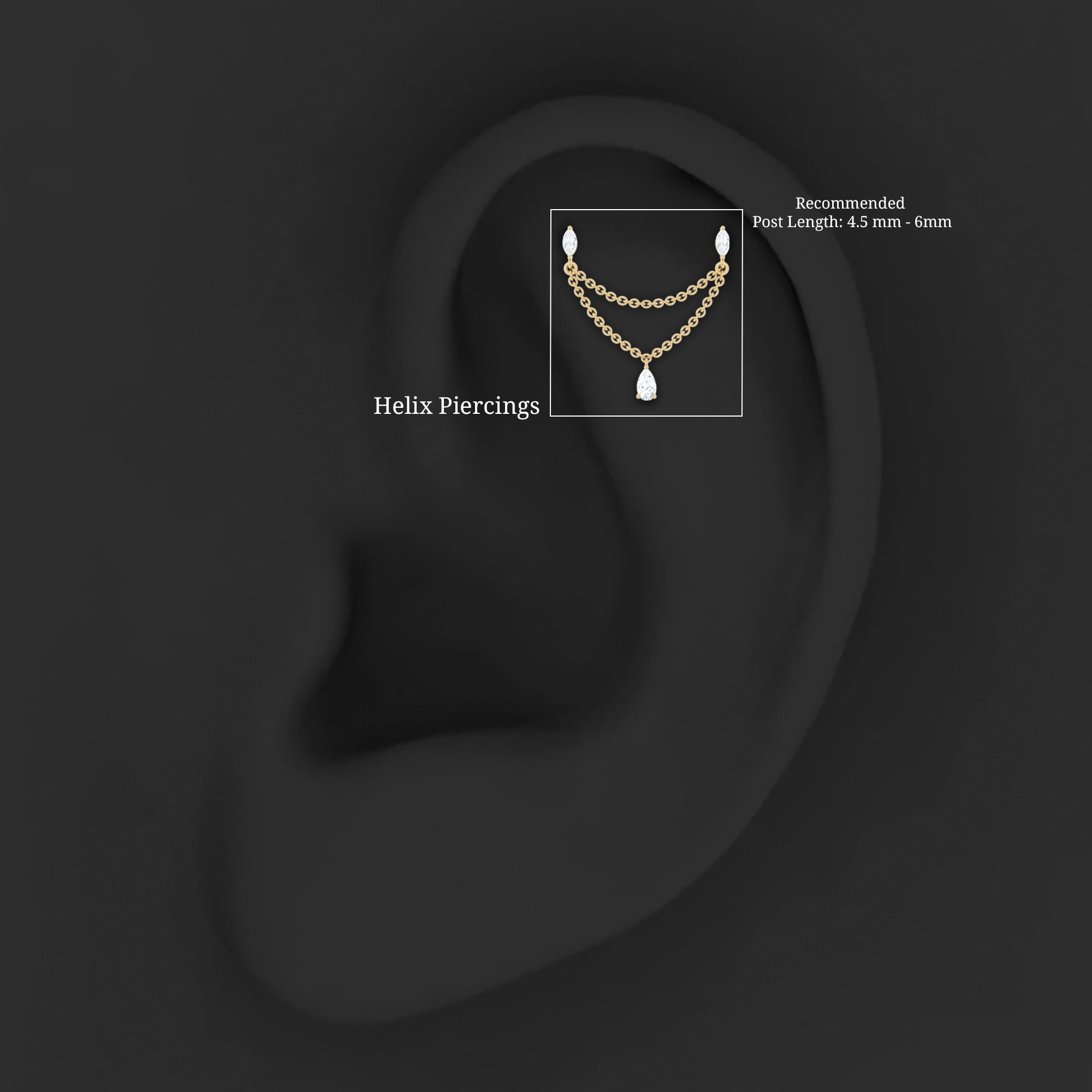 This Moissanite Double Chain Earring is embellished with Marquise Cut Moissanites while two chain dangling with a Pear Shape Moissanite. Grab this Moissanite Earring for a trendy and unique look as you can wear it on your Helix, Cartilage, or Lobe Piercing.