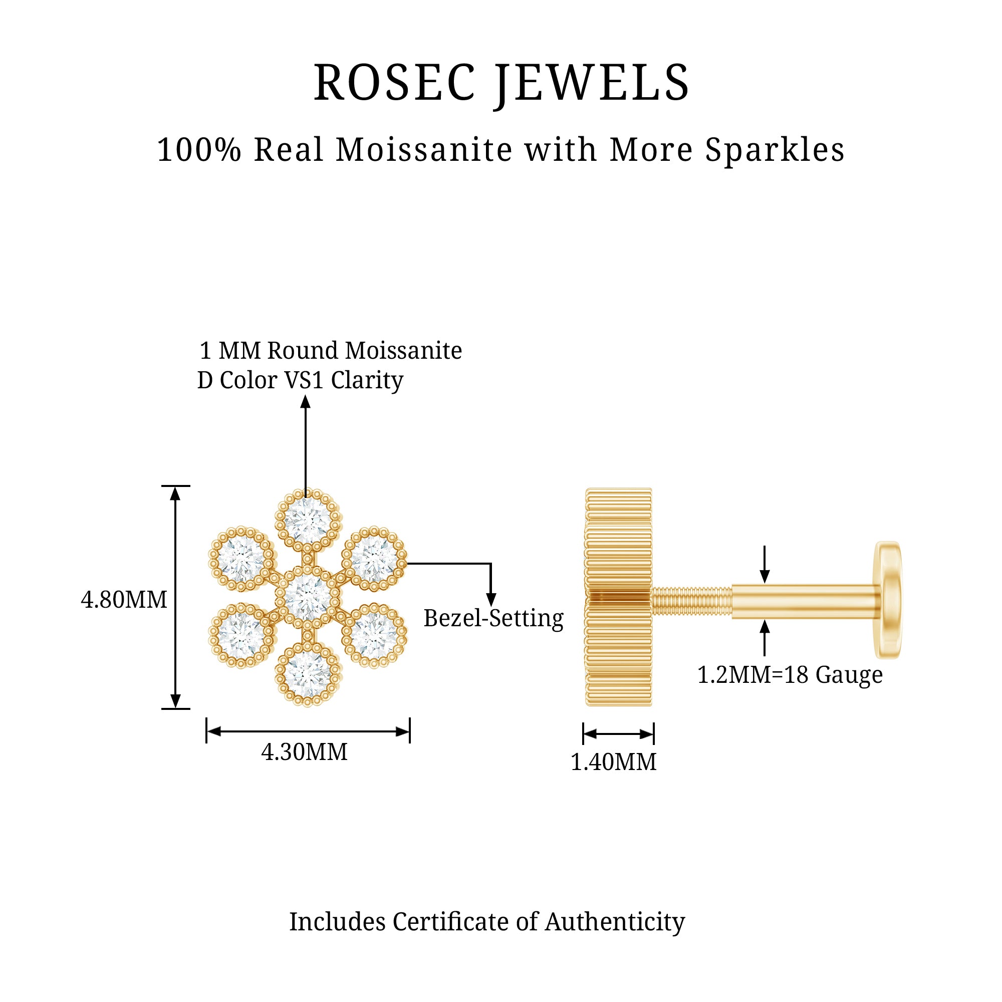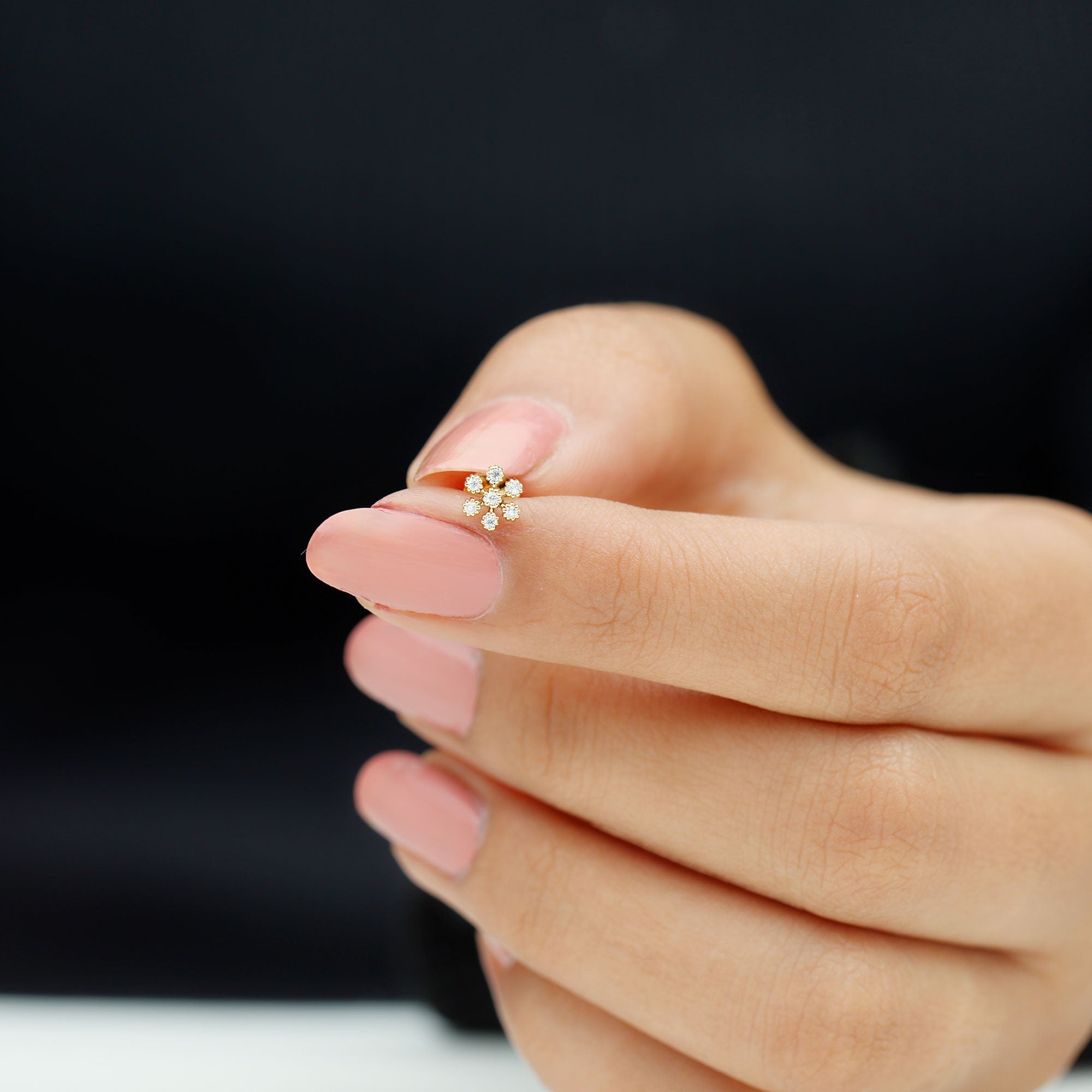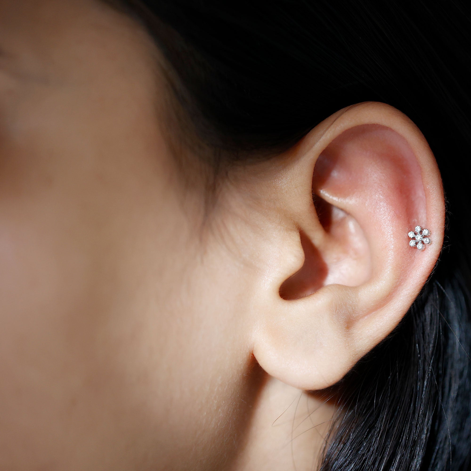 The Moissanite Flower Earring is an exquisite piece of jewelry that combines simplicity and elegance. Adorned with Round Cut Moissanites in Beaded Bezel Setting arranged in a Floral Design, this Cartilage Earring is perfect for gifting to your daughter, mom, wife, or loved ones. Its timeless design makes it suitable for daily wear, and its guaranteed to become a cherished item in any jewelry collection. Its compact size makes it ideal for helix, cartilage, or upper lobe piercings, giving you the freedom to style it on its own or pair it with other earrings for a layered look. Whether you are going for a subtle glow or a more eye-catching style, this Flower Cartilage Earring adapts easily to your mood. Designed for all-day comfort, the Moissanite Helix Earring features a flat back closure that sits smoothly against the skin and stays securely in place. Lightweight and easy to wear, it works well for everyday use as well as special occasions.