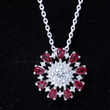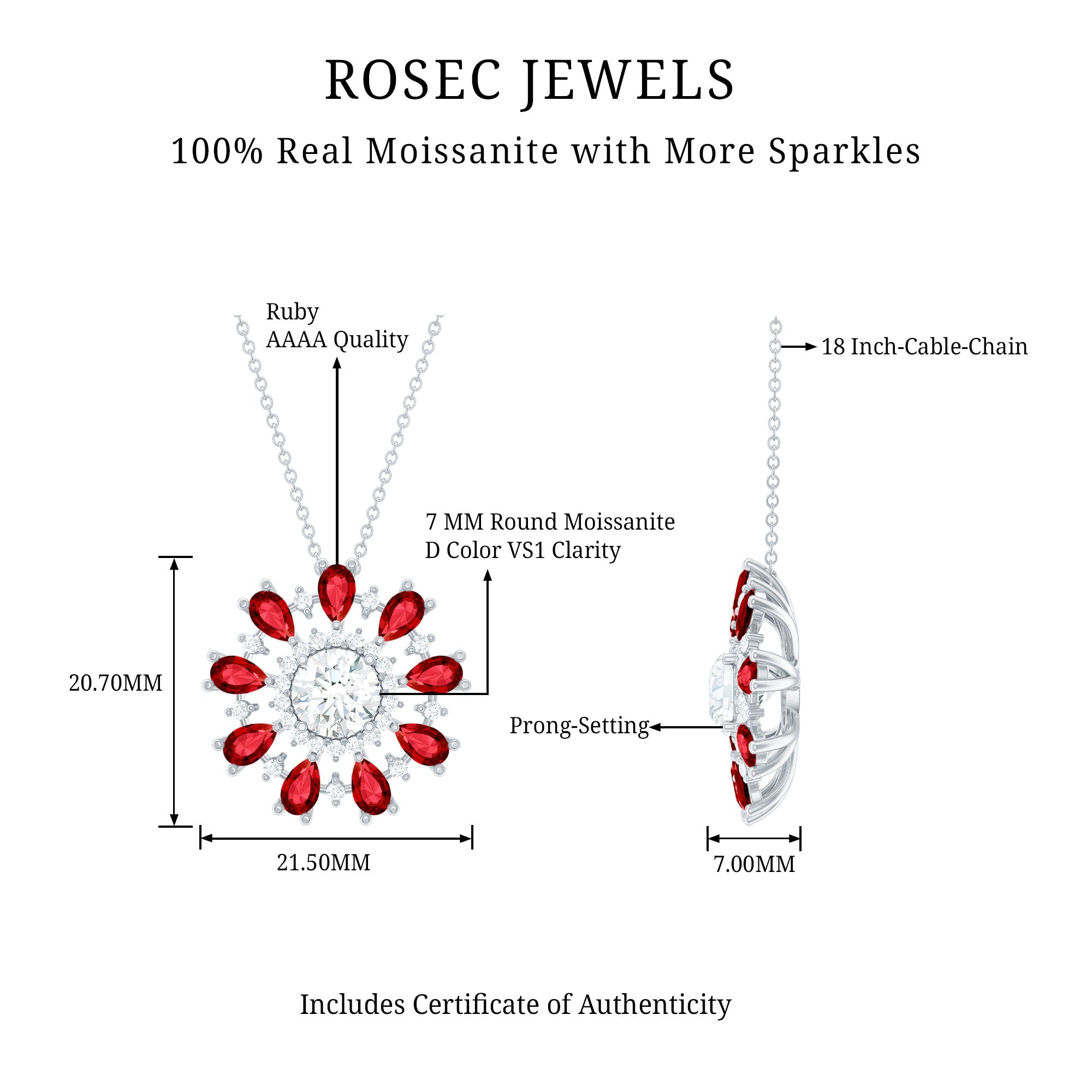 Moissanite Flower Pendant Necklace with Lab Grown Ruby