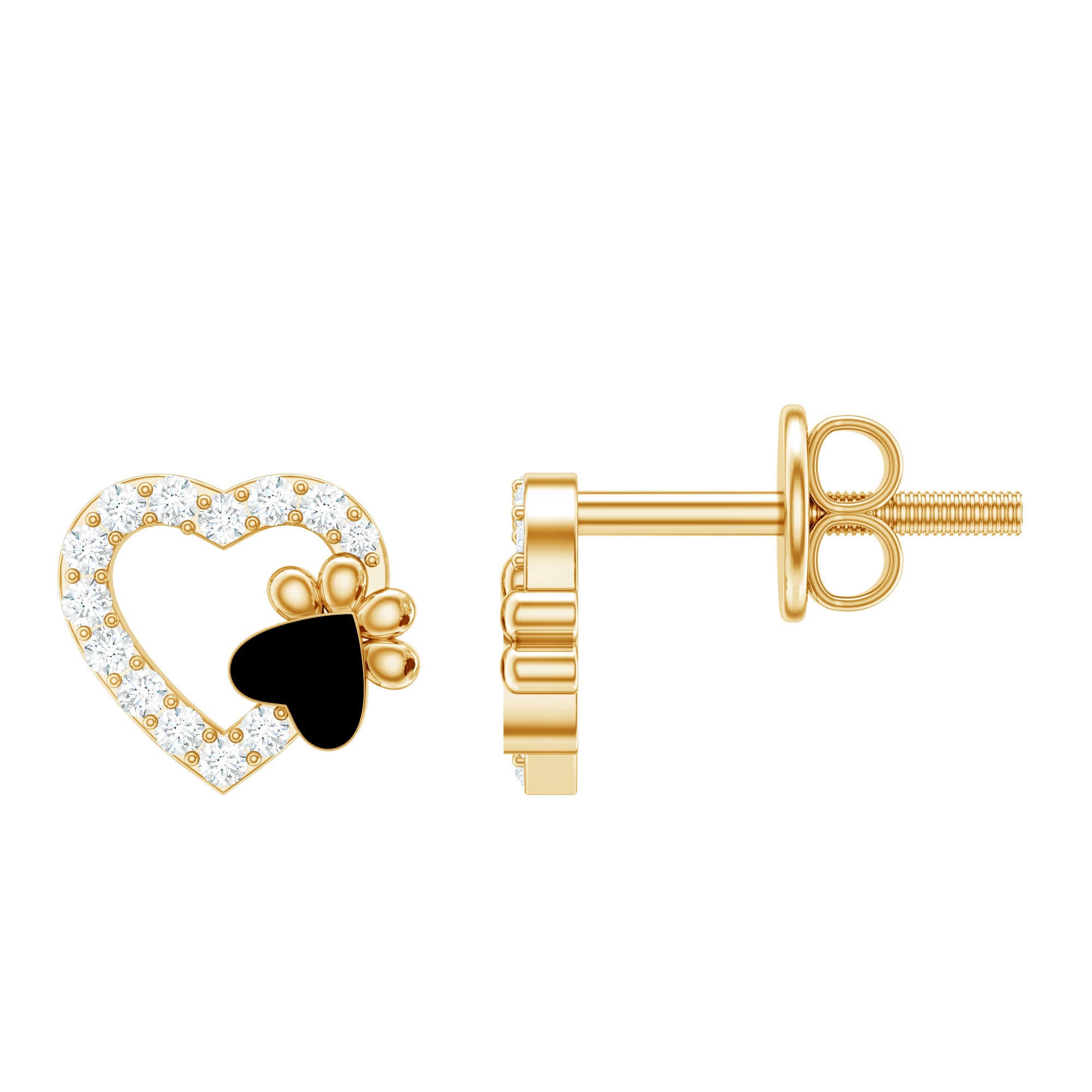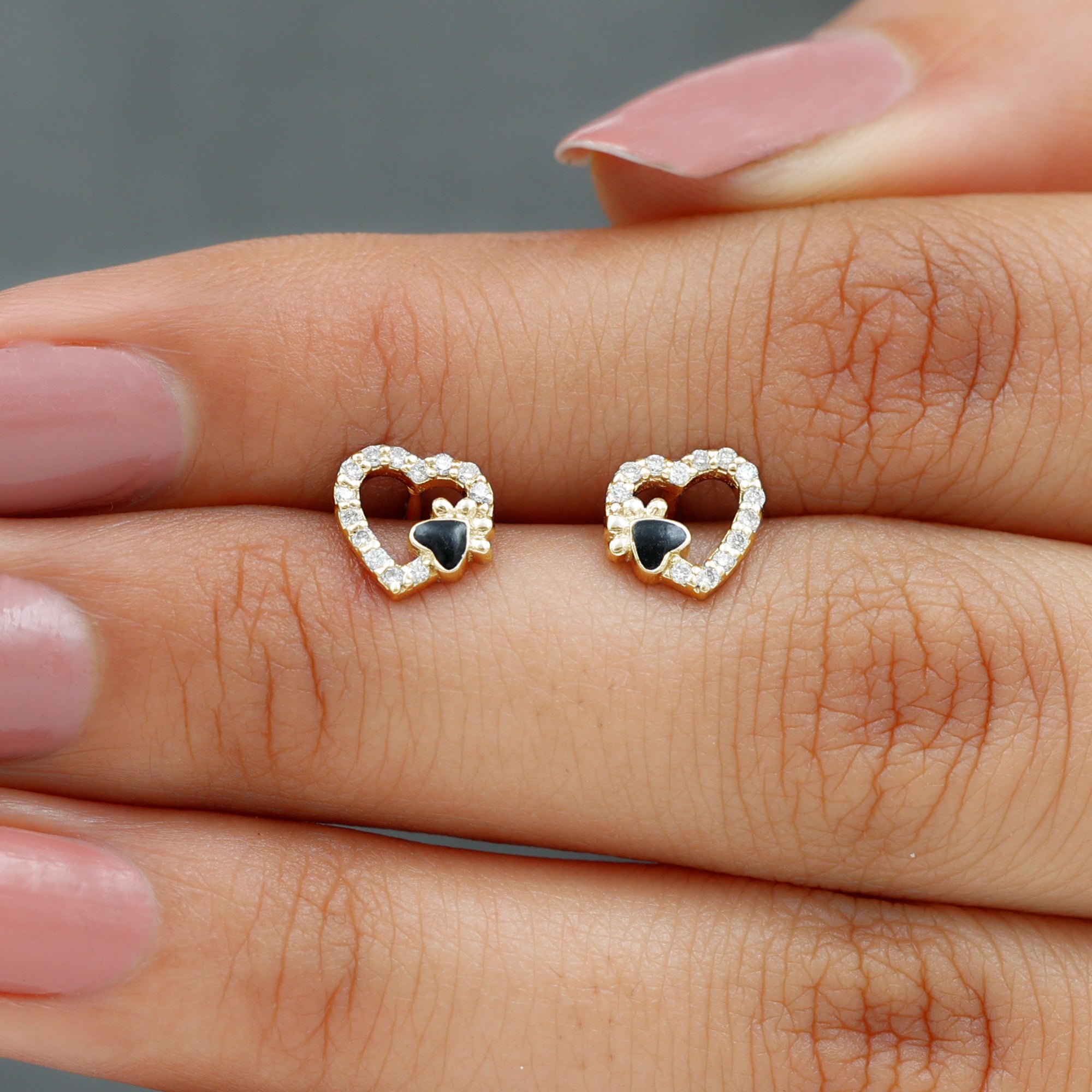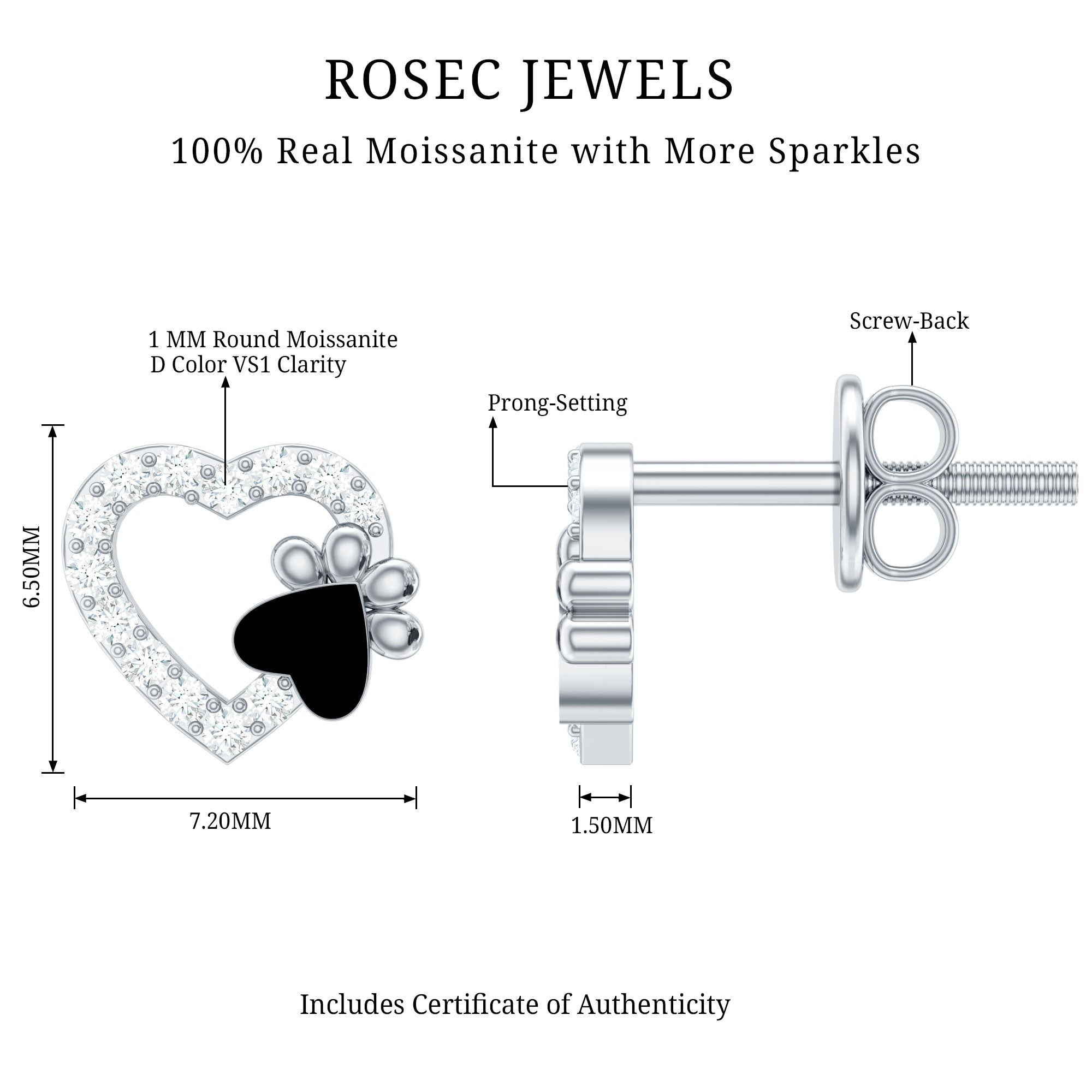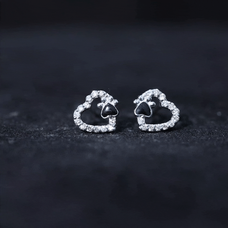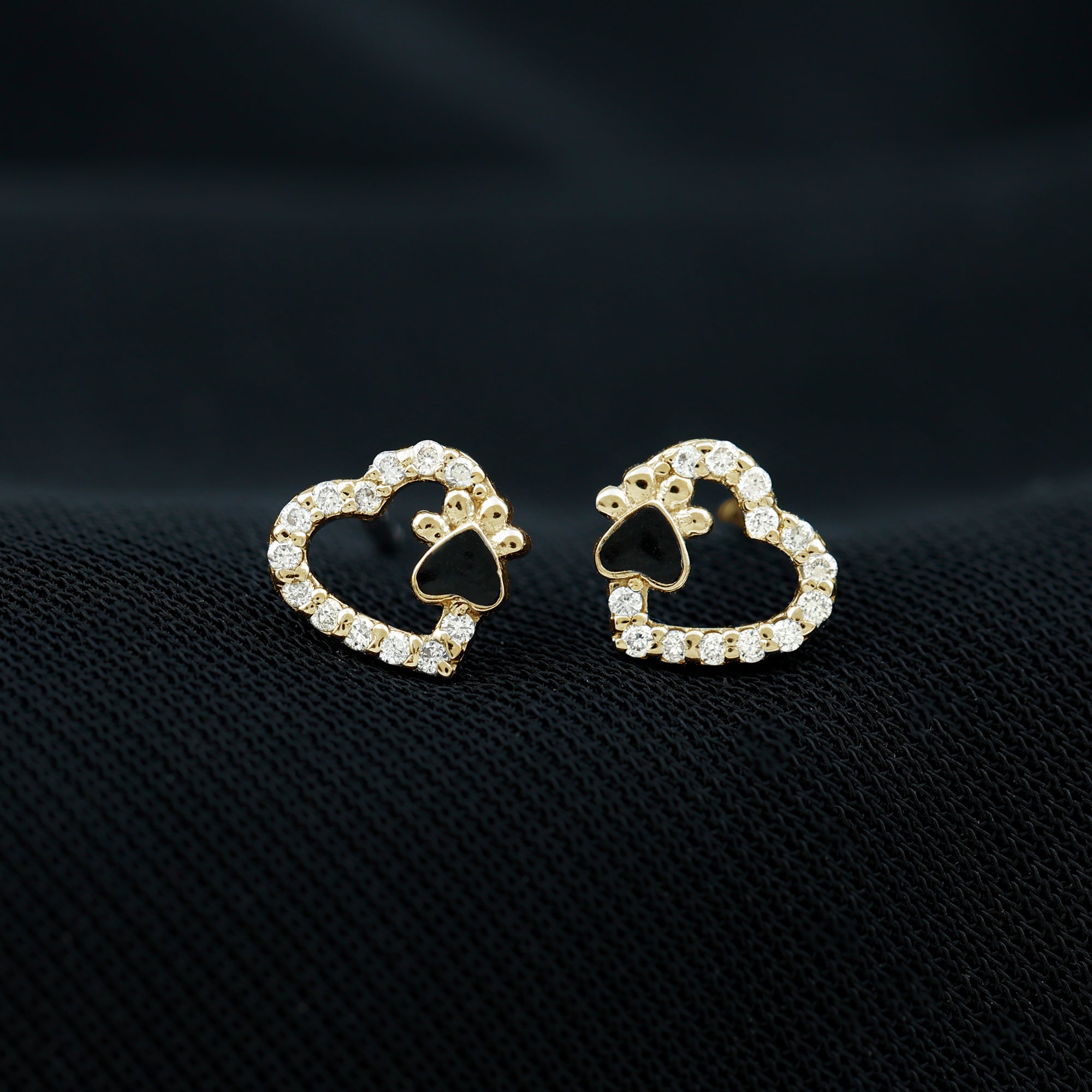 Moissanite Heart and Paw Stud Earrings with Enamel