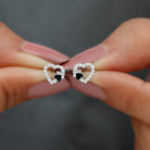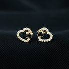Sparkle up wearing these Moissanite Stud Earrings. Each earring boasts an open heart, gracefully adorned with pave-set Moissanite stones that glisten with enchanting brilliance. Adding a touch of fancy, one side of the heart features a striking black enameled paw print, creating a mesmerizing contrast and a symbol of affection for your furry friend. These earrings are more than just jewelry; theyre a heartwarming statement piece, perfect for those who appreciate both style and the bond they share with their beloved pets.