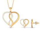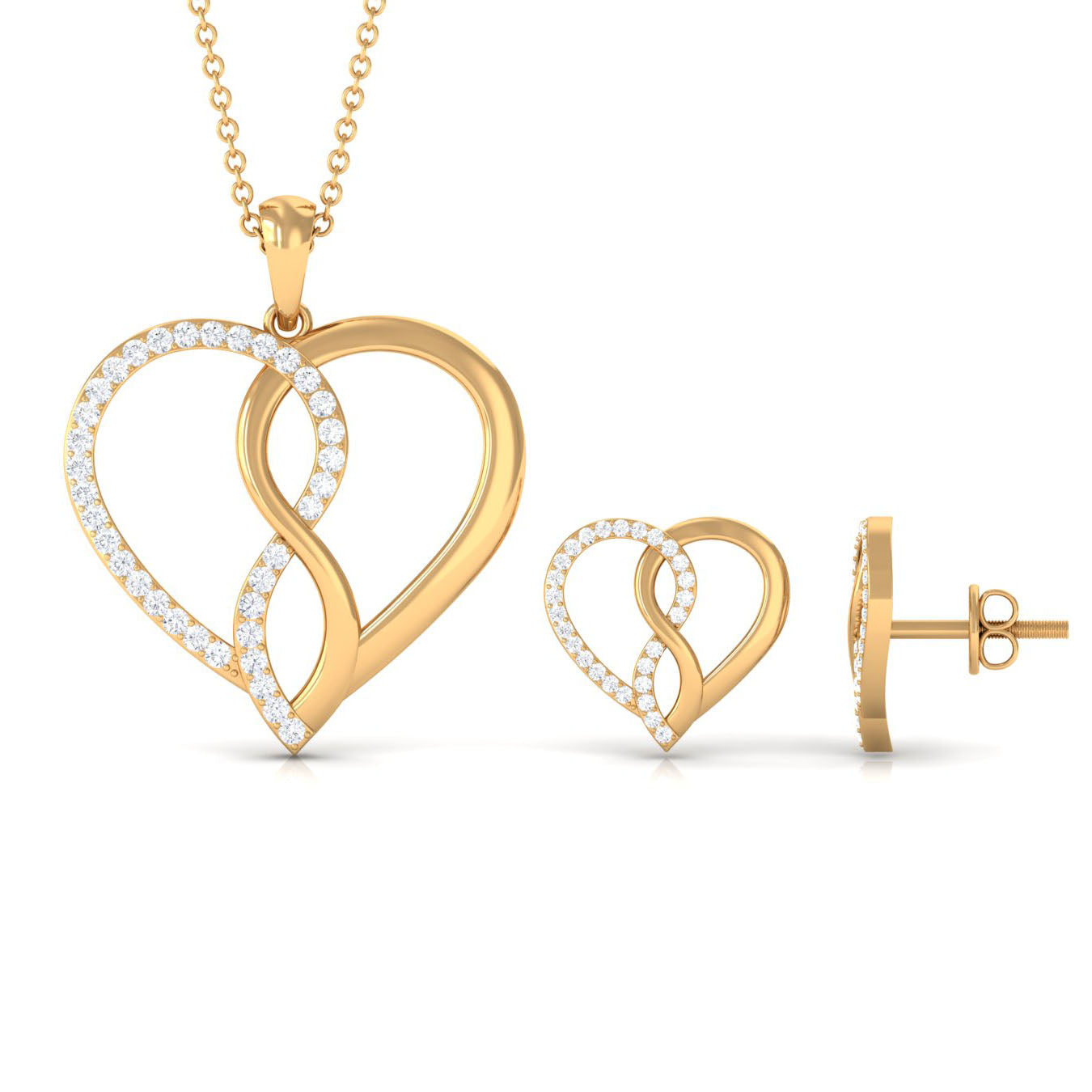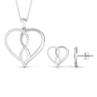 The Moissanite Infinity Heart Pendant Earrings set is a stunning and elegant piece of jewellery that is perfect for any occasion. The pendant features a heart-shaped moissanite stone in a pave setting type that is surrounded by an infinity loop, symbolizing eternal love and commitment. The earrings feature matching moissanite stones in a delicate stud style. This jewellery set is a beautiful and meaningful gift for any loved one.