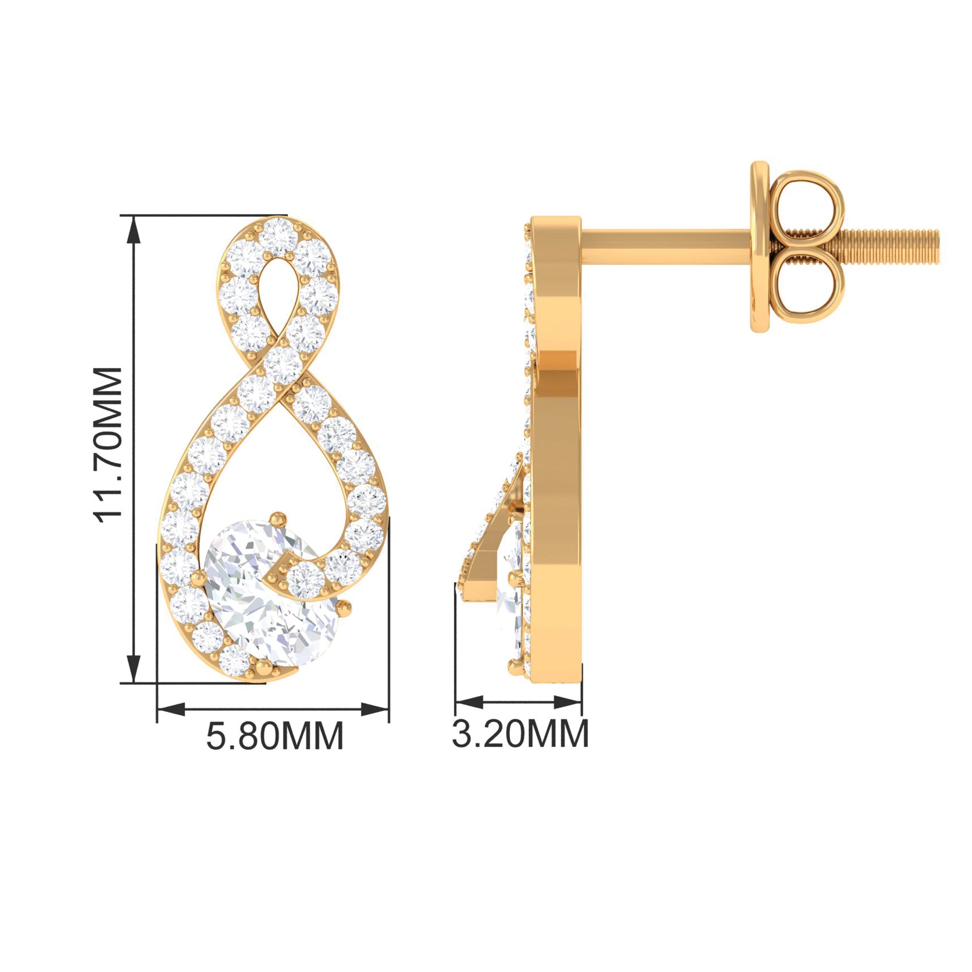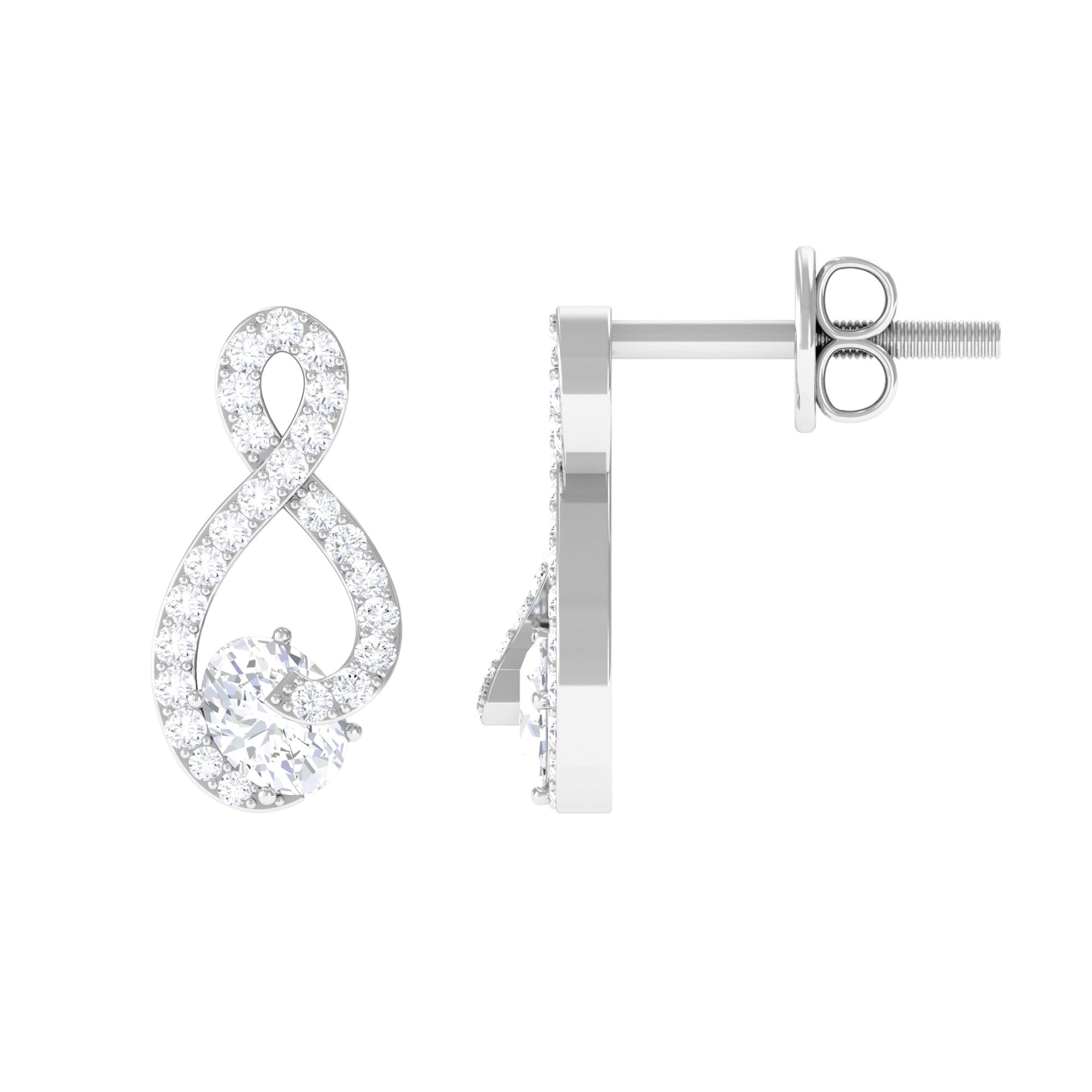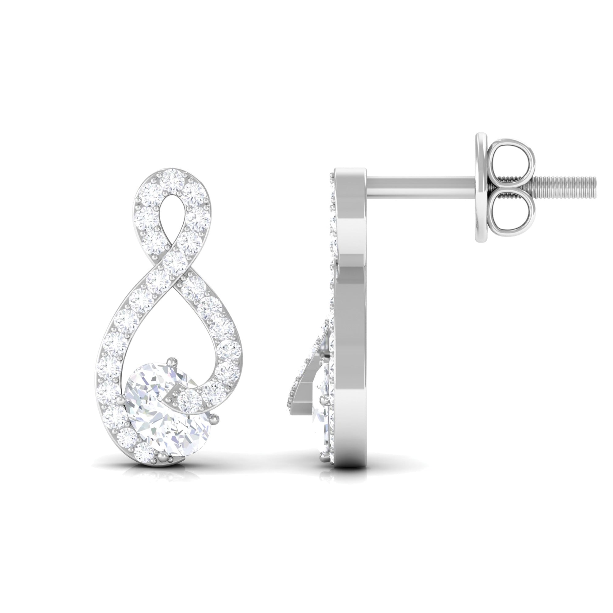 These exquisite moissanite infinity stud earrings capture the infinite bond of love with their stunning design and sparkling moissanite stones. The earpiece features a 3x4 MM oval moissanite center stone attached with an infinity symbol encrusted with small sparkling moissanite. The prong setting ensures the safety and durability of the stones. The infinity symbol represents eternity, and the prong setting ensures that your earrings will sparkle for years to come. It is the perfect way to add a touch of luxury and sophistication to your everyday look.