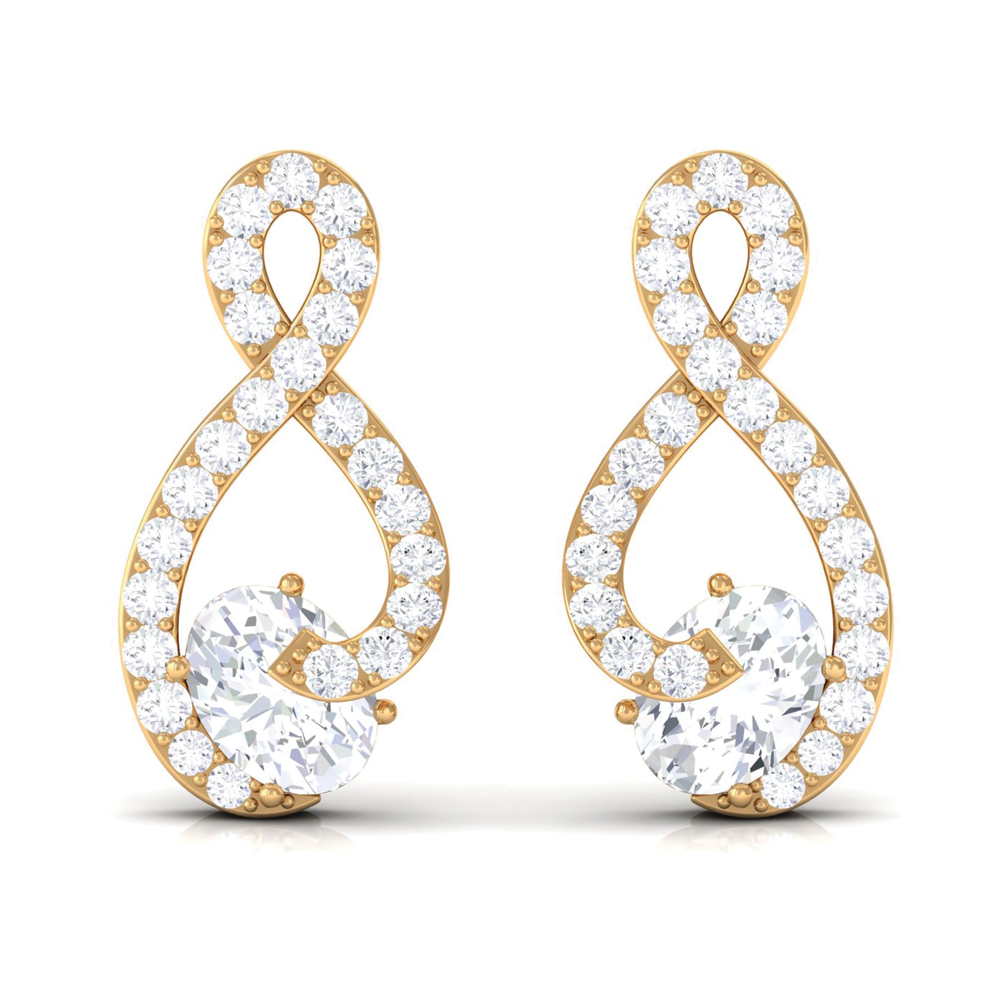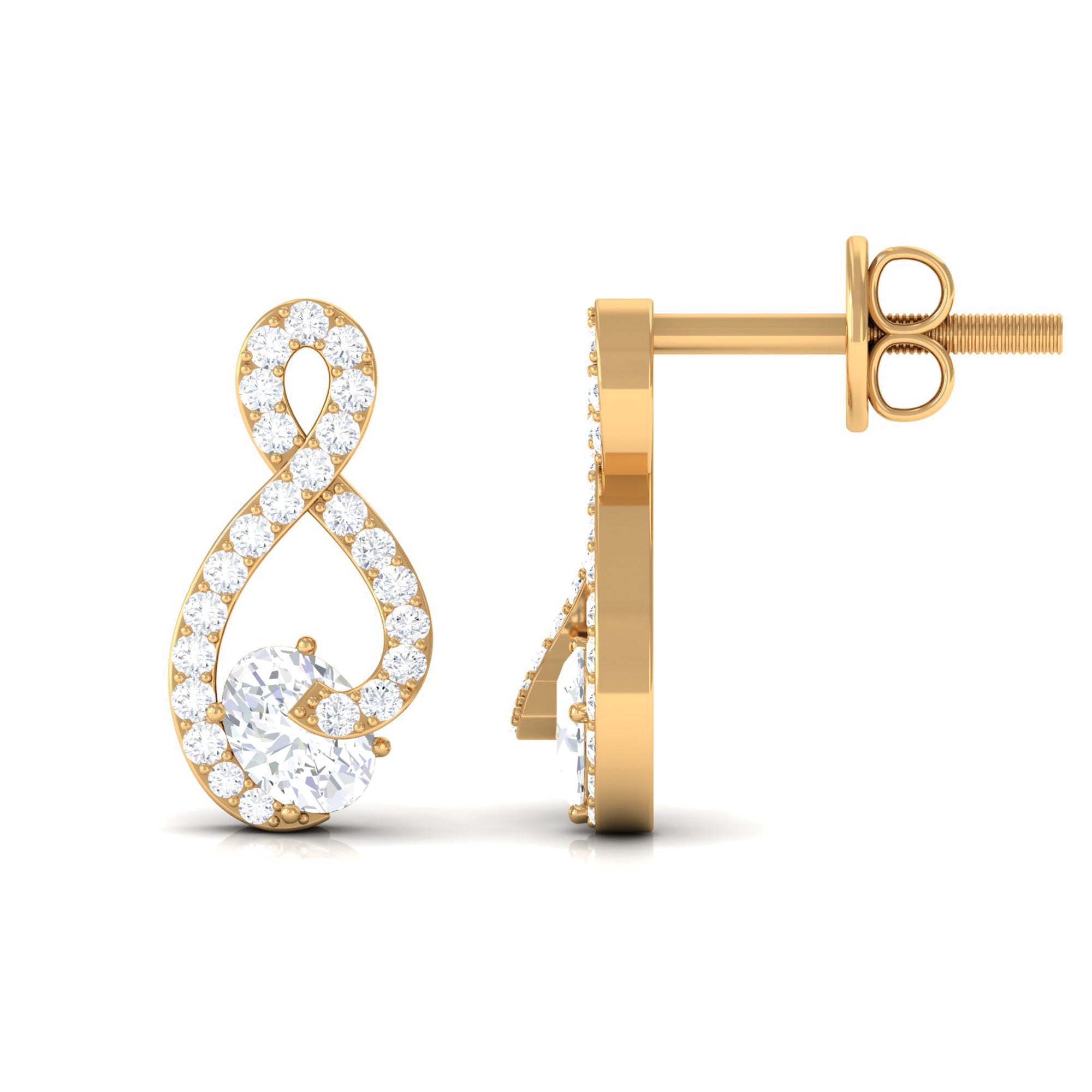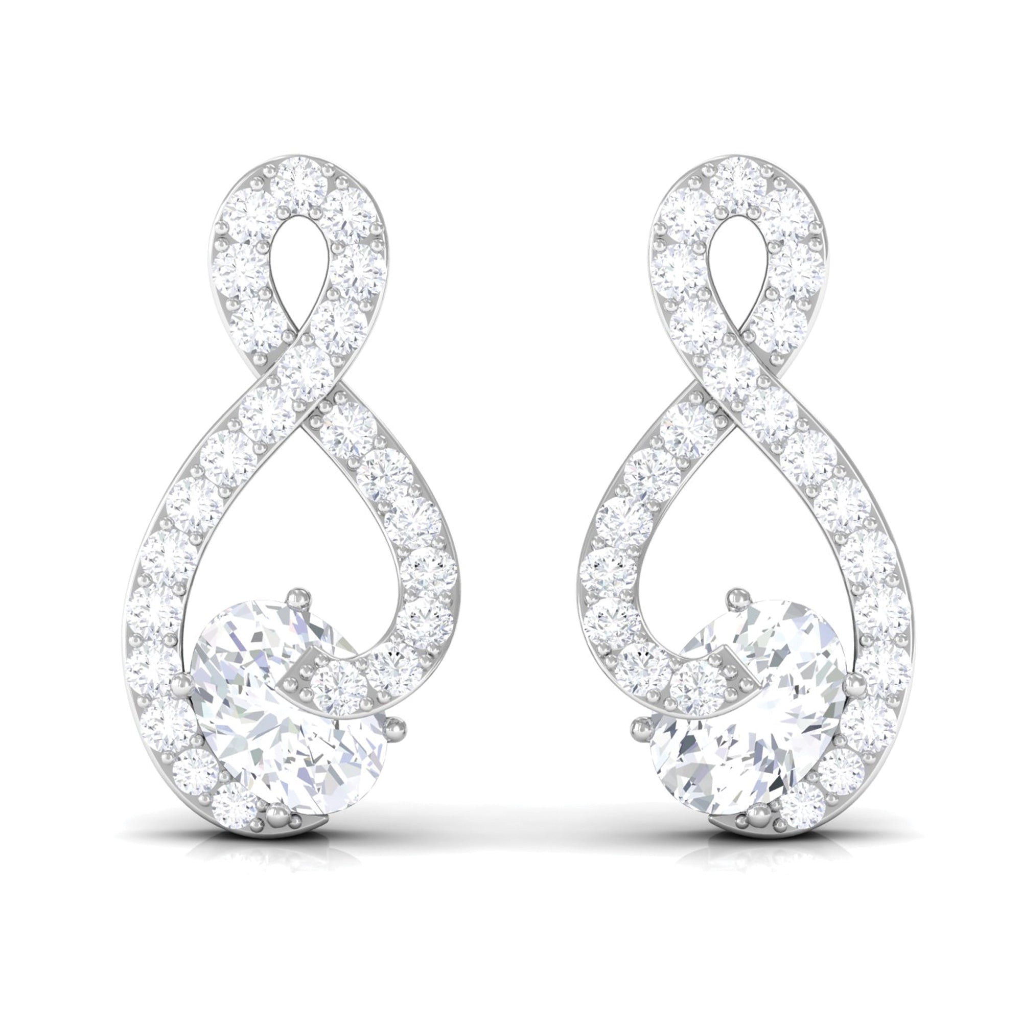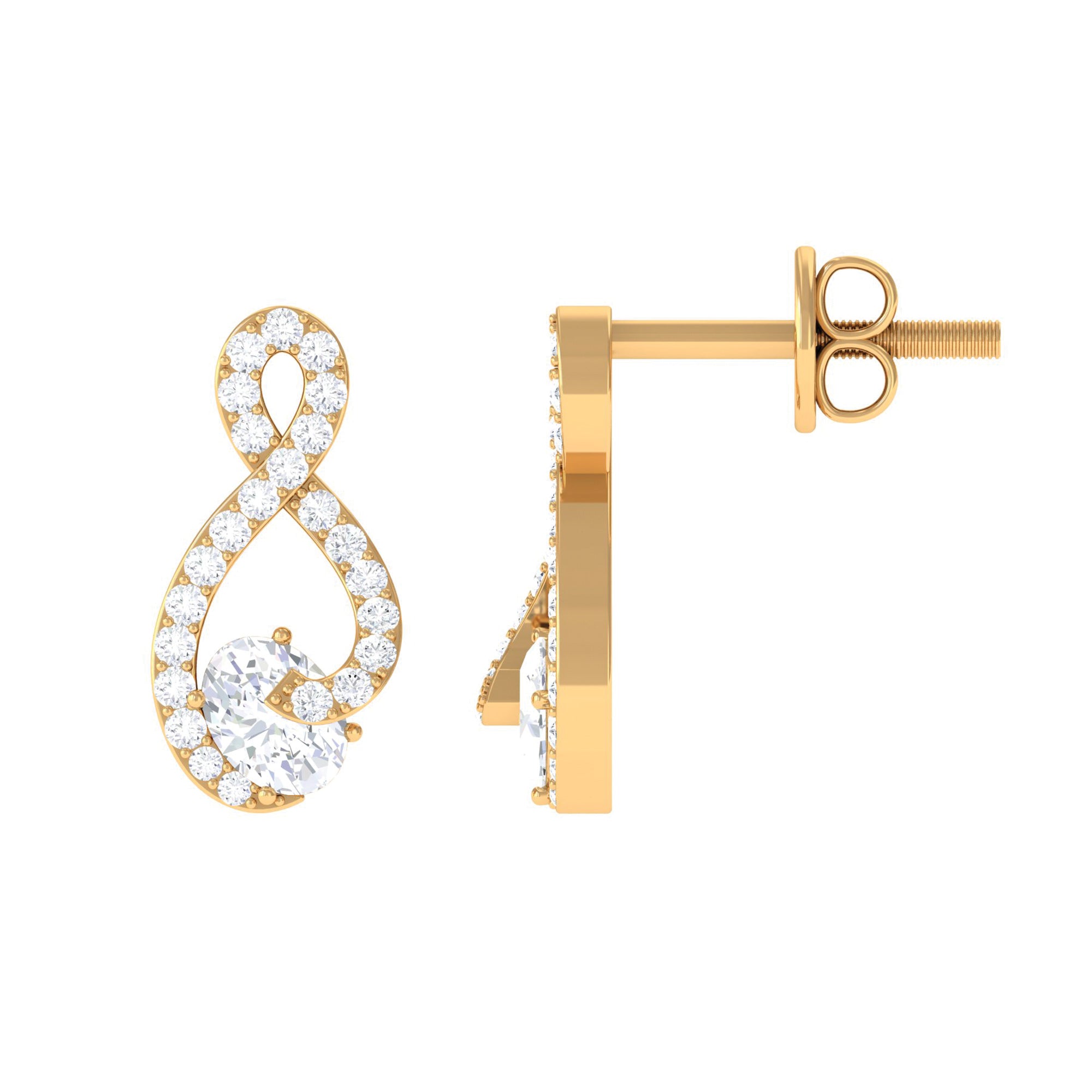 These exquisite moissanite infinity stud earrings capture the infinite bond of love with their stunning design and sparkling moissanite stones. The earpiece features a 3x4 MM oval moissanite center stone attached with an infinity symbol encrusted with small sparkling moissanite. The prong setting ensures the safety and durability of the stones. The infinity symbol represents eternity, and the prong setting ensures that your earrings will sparkle for years to come. It is the perfect way to add a touch of luxury and sophistication to your everyday look.