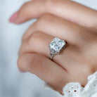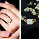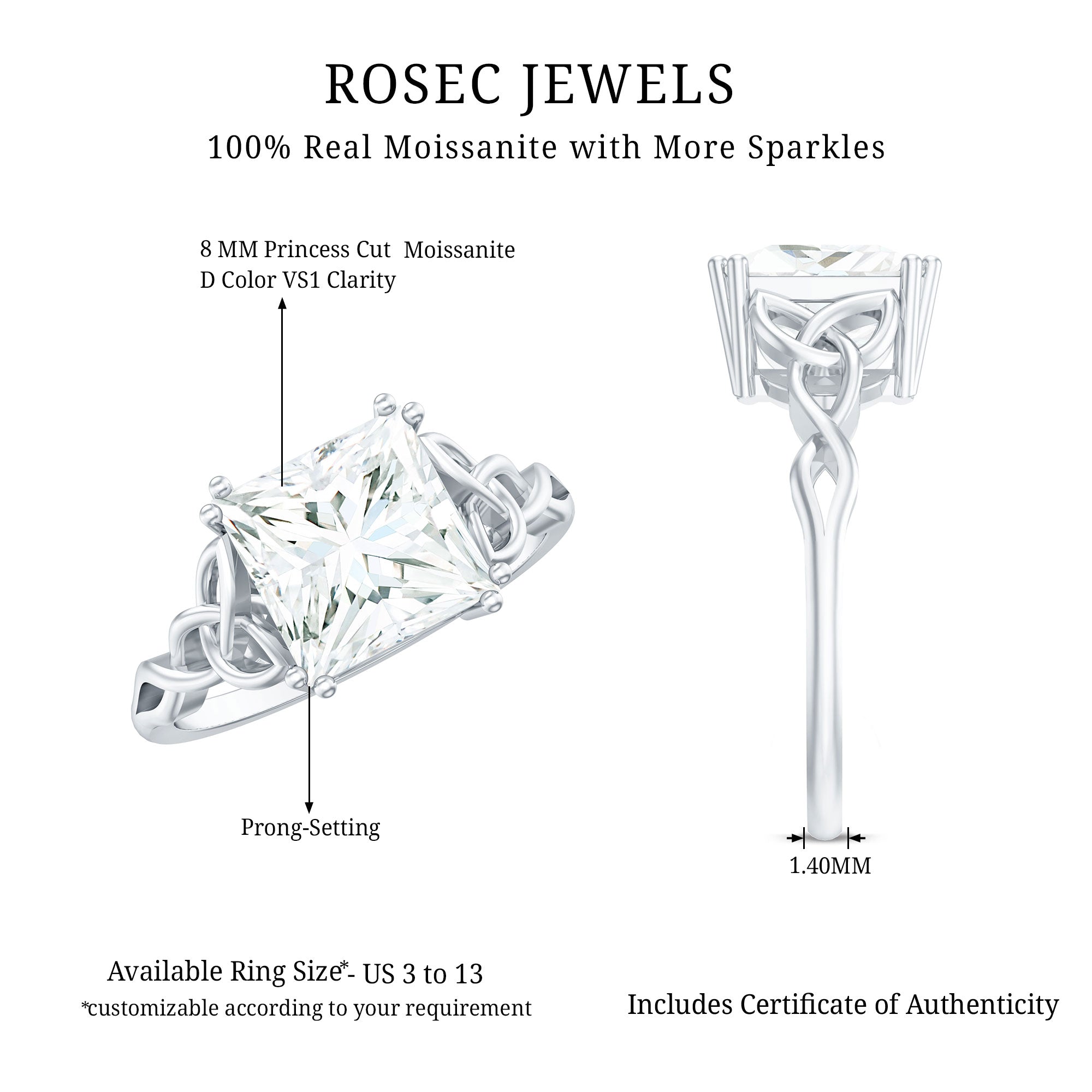 Articulate your deepest emotions with this extraordinary Moissanite Solitaire Ring. It showcases an 8 mm Princess Cut Moissanite gracefully placed in Double Prong Setting. The shank is adorned with Celtic Knot details, infusing both timeless beauty and meaningful symbolism of togetherness for life. This Celtic Knot Ring represents the eternal bond and endless love which makes it the perfect choice to start a new beginning with your loved one. This Princess Cut Engagement Ring reflects the adorable shine of D-VS1 Quality Moissanite embedded in the ring. This square engagement ring will be delivered to you with the classic jewelry box for storage.