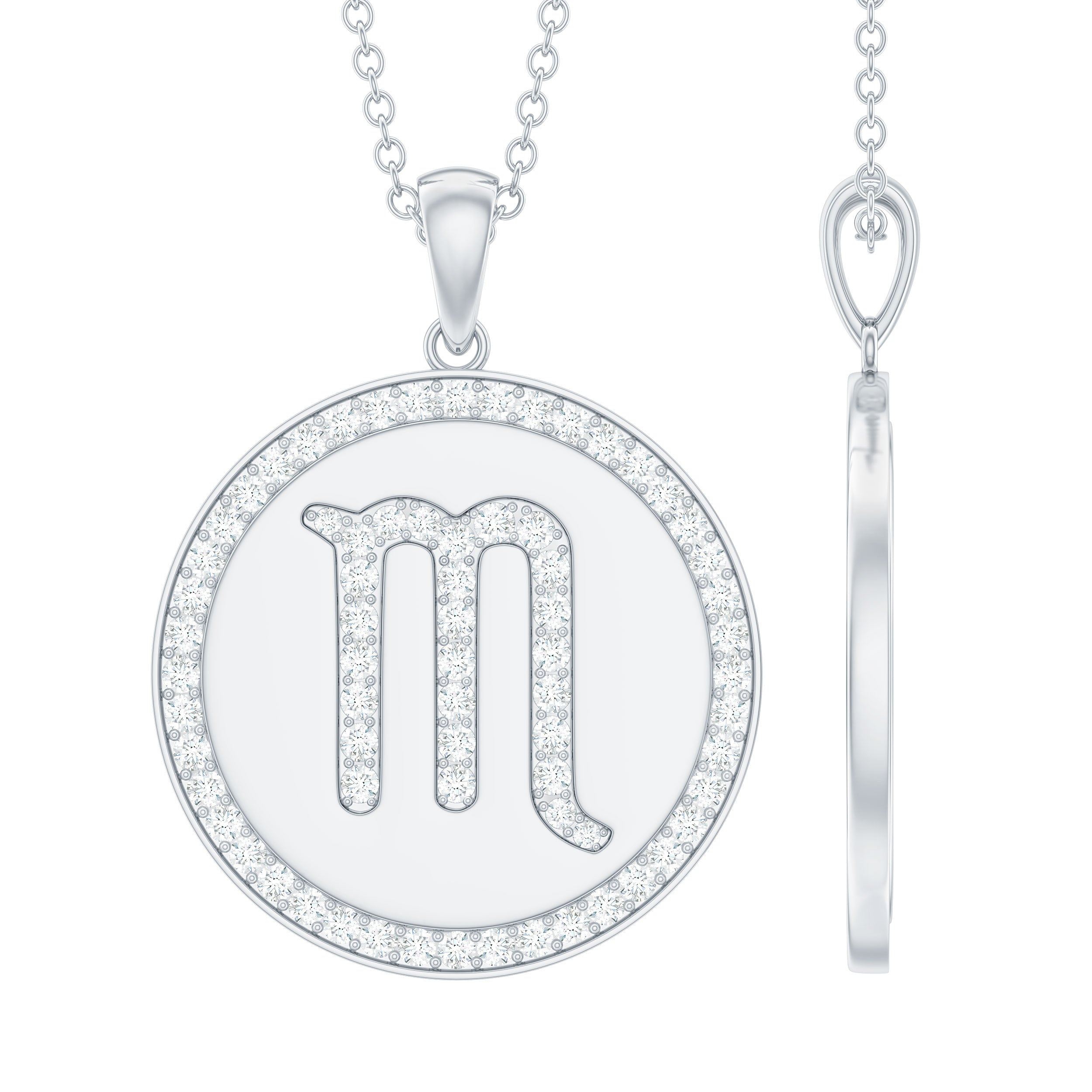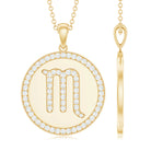 Experience a heightened sense of protection while wearing our Zodiac jewelry, meticulously fashioned in the captivating pattern of the Scorpio Zodiac Symbol, adorned with a stunning Round Cut Moissanite. This remarkable Scorpio Zodiac Disc Pendant is a reflection of your individuality and unique personality.