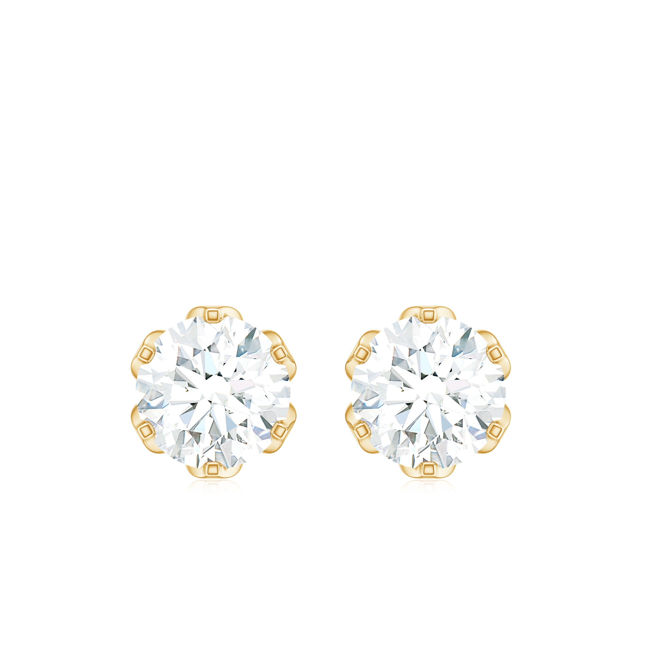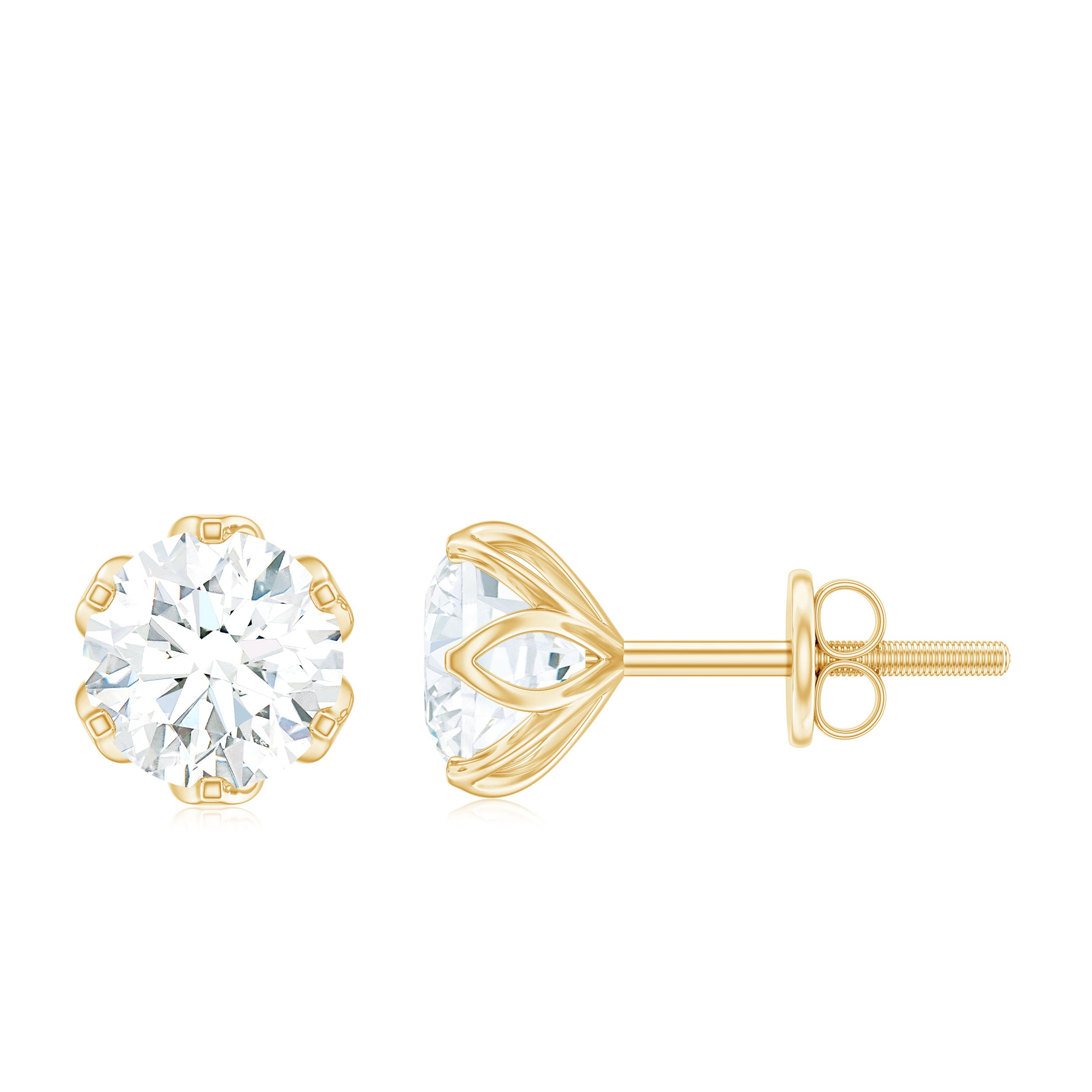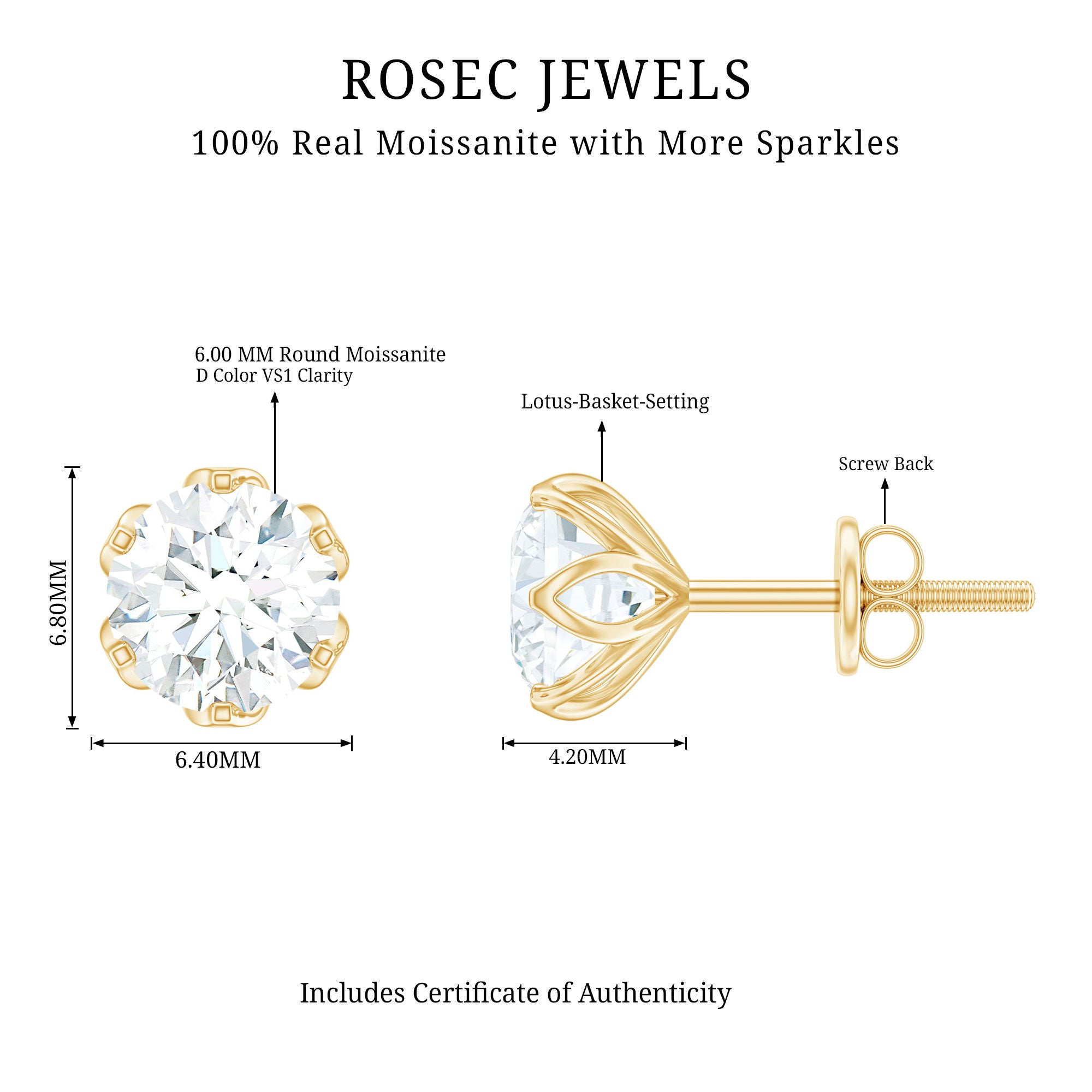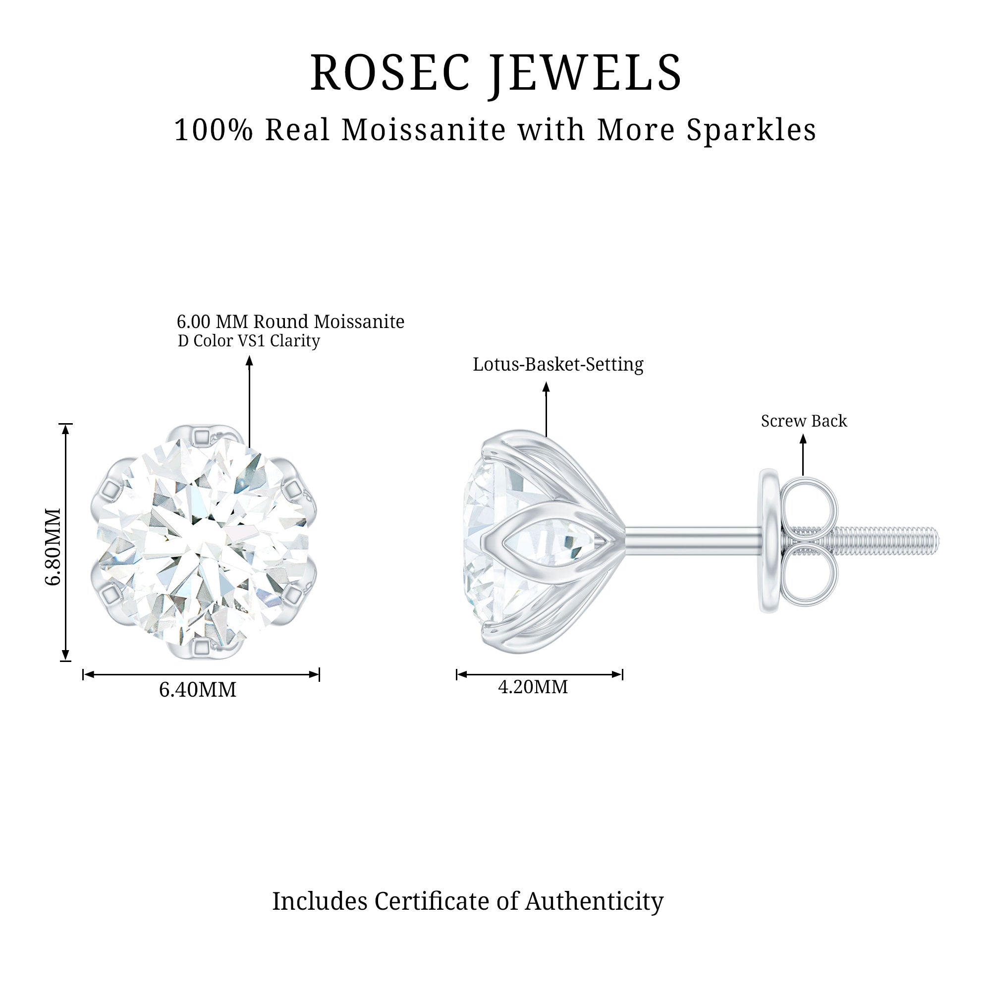 Moissanite Solitaire Stud Earrings in Lotus Basket Setting