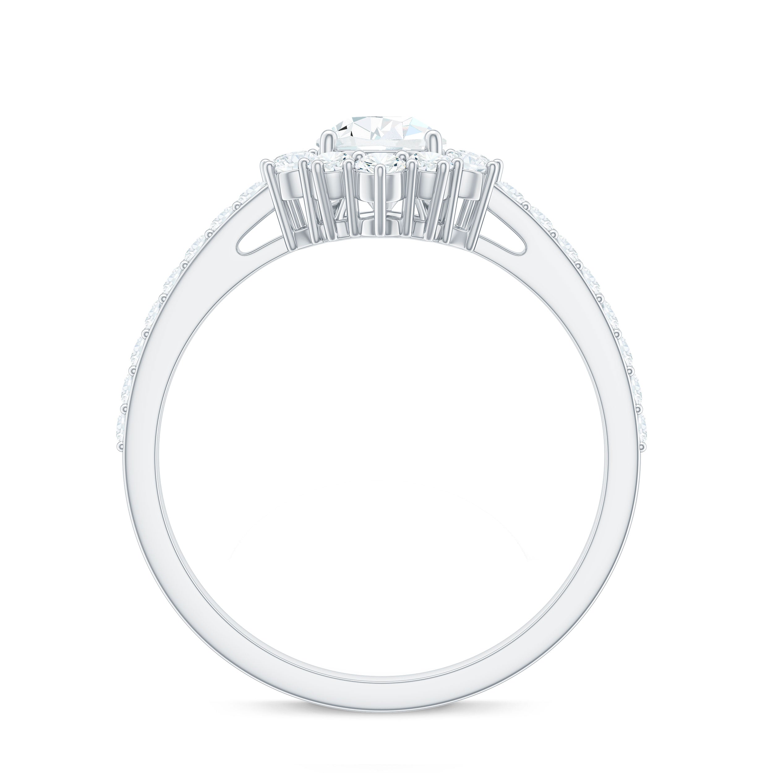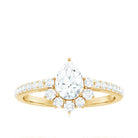 This Designer Engagement Ring is bound to wow anyone who sees it. At its heart, it showcases a 5X7 MM pear shaped moissanite of D-VS1 quality, set in prong setting, and is encircled by additional round cut moissanite stones that form a half halo around the main stone. The sleek band is adorned with delicate round cut moissanite for that added sparkle, and its stylish yet elegant design makes it perfect for everyday wear as well as special occasions. This Moissanite Engagement Ring is more than just jewelry; it radiates beauty and unconditional love. Begin your forever with something that is both stunning and timeless. What sets this Teardrop Engagement Ring apart is its versatility - whether you need an Engagement Ring that truly shines, a Proposal Ring to ask the big question in style, or just a gift for your loved one to commemorate your special moments, this piece is the ideal choice. Plus, it adds a classic charm with a touch of royalty in one breathtaking piece, making it a meaningful and thoughtful addition to your jewelry collection.