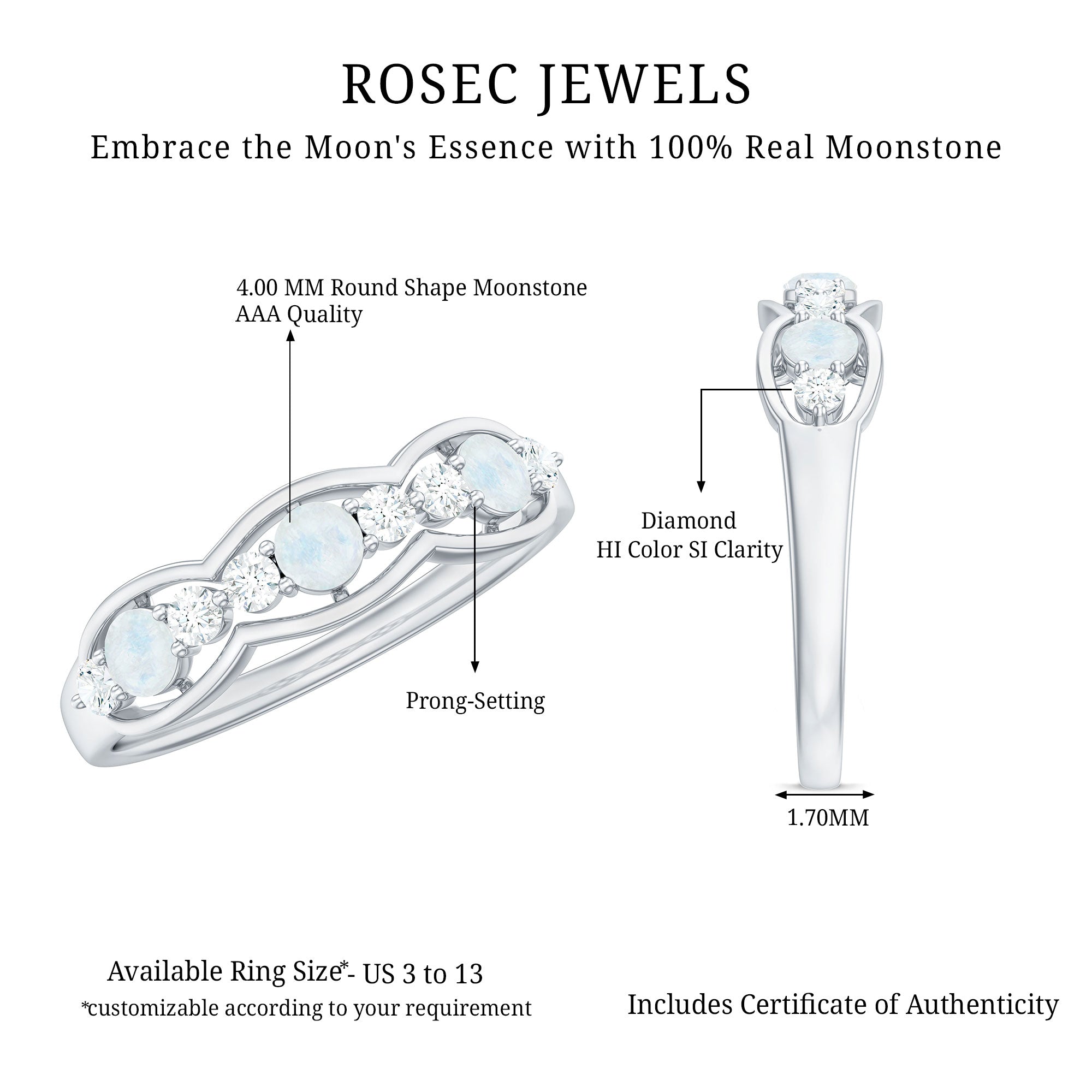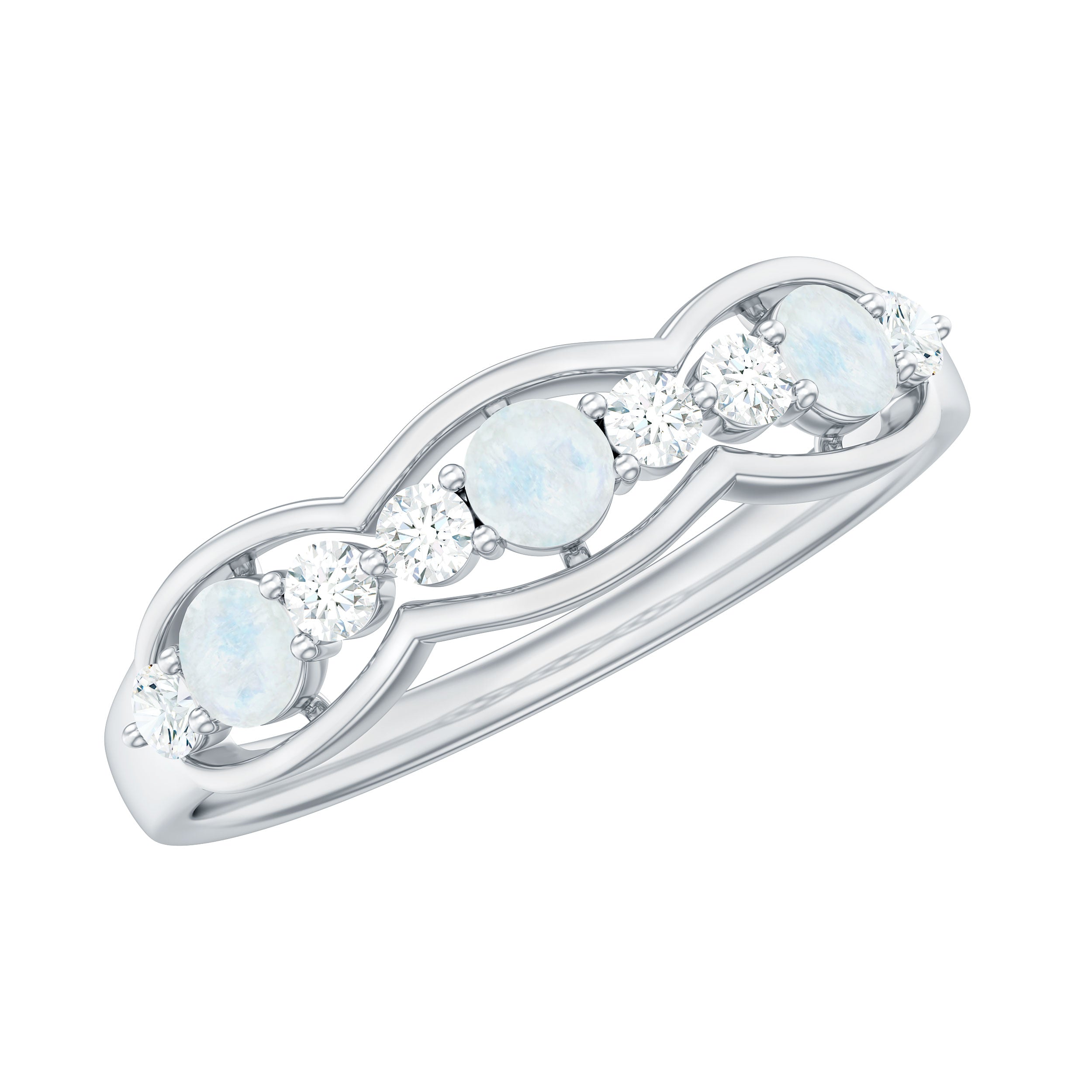 Celebrate lasting love with this Moonstone and Diamond Wedding Anniversary Ring, a timeless expression of devotion and celestial allure.