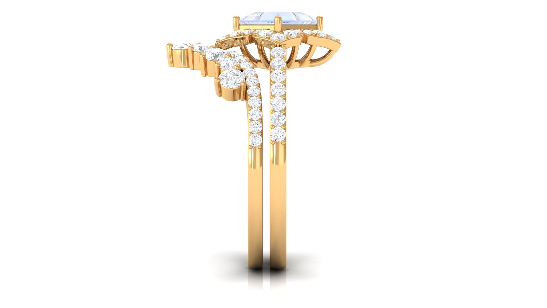 Make a striking statement with this Moonstone and Moissanite Wedding Ring Set, a captivating fusion of celestial allure and modern elegance.