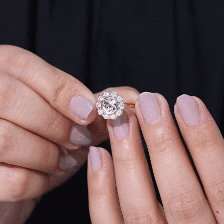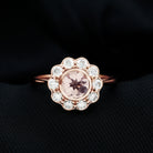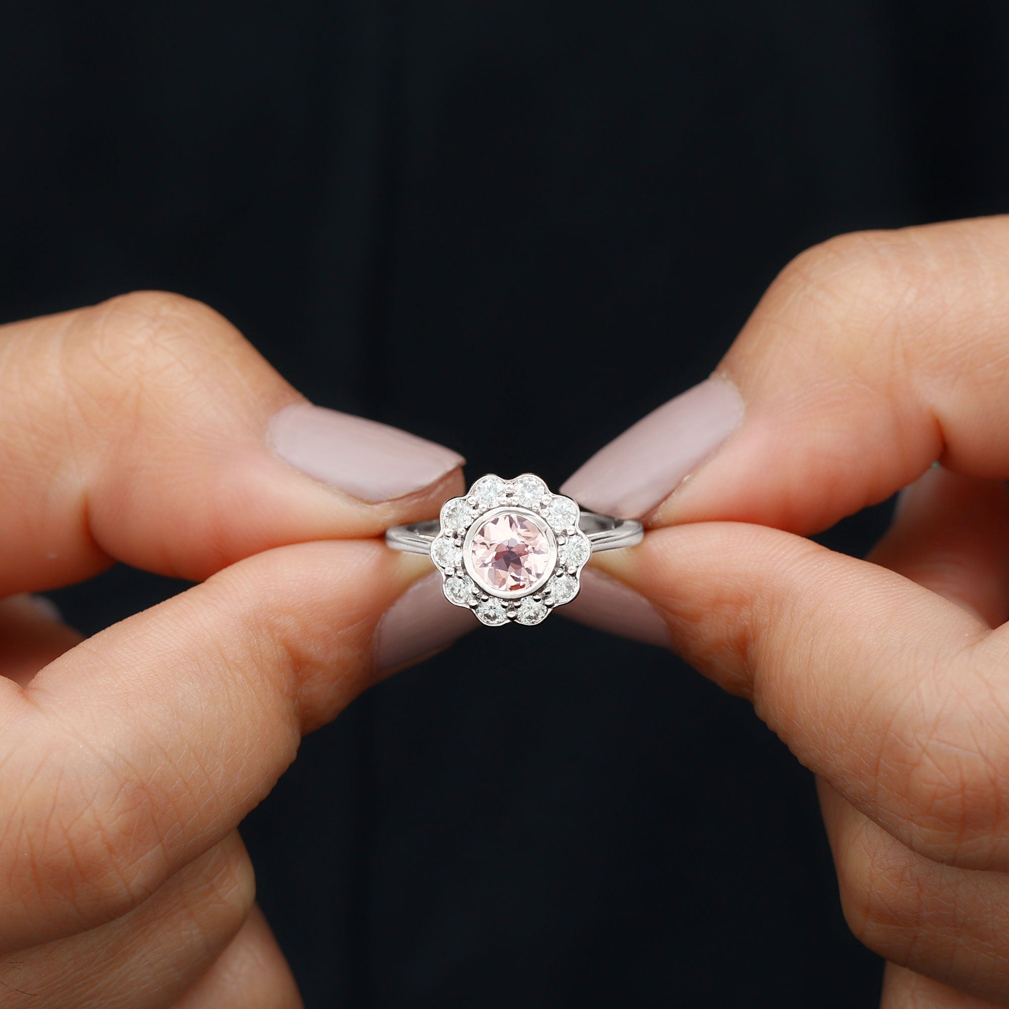 Embrace the beauty of nature with the Floral Engagement Ring featuring a Round Shape Morganite set in a secure bezel setting at the center. The dazzling Round Shape Diamond stones encasing the Morganite form the appearance of a delicate flower. Let the enchanting design of this ring bloom on your finger and celebrate your special moments with timeless style.