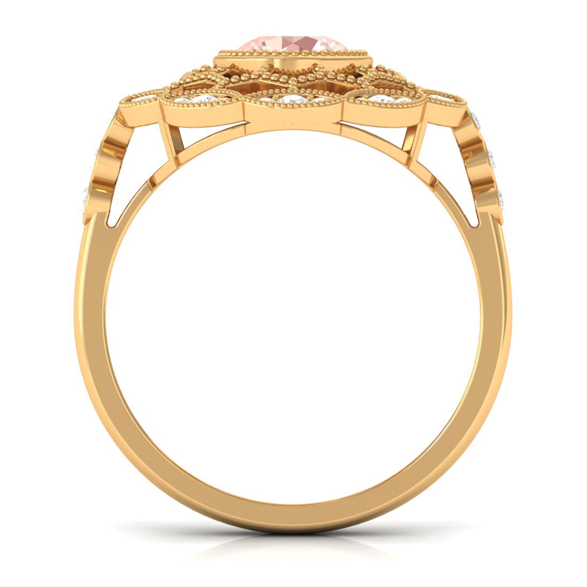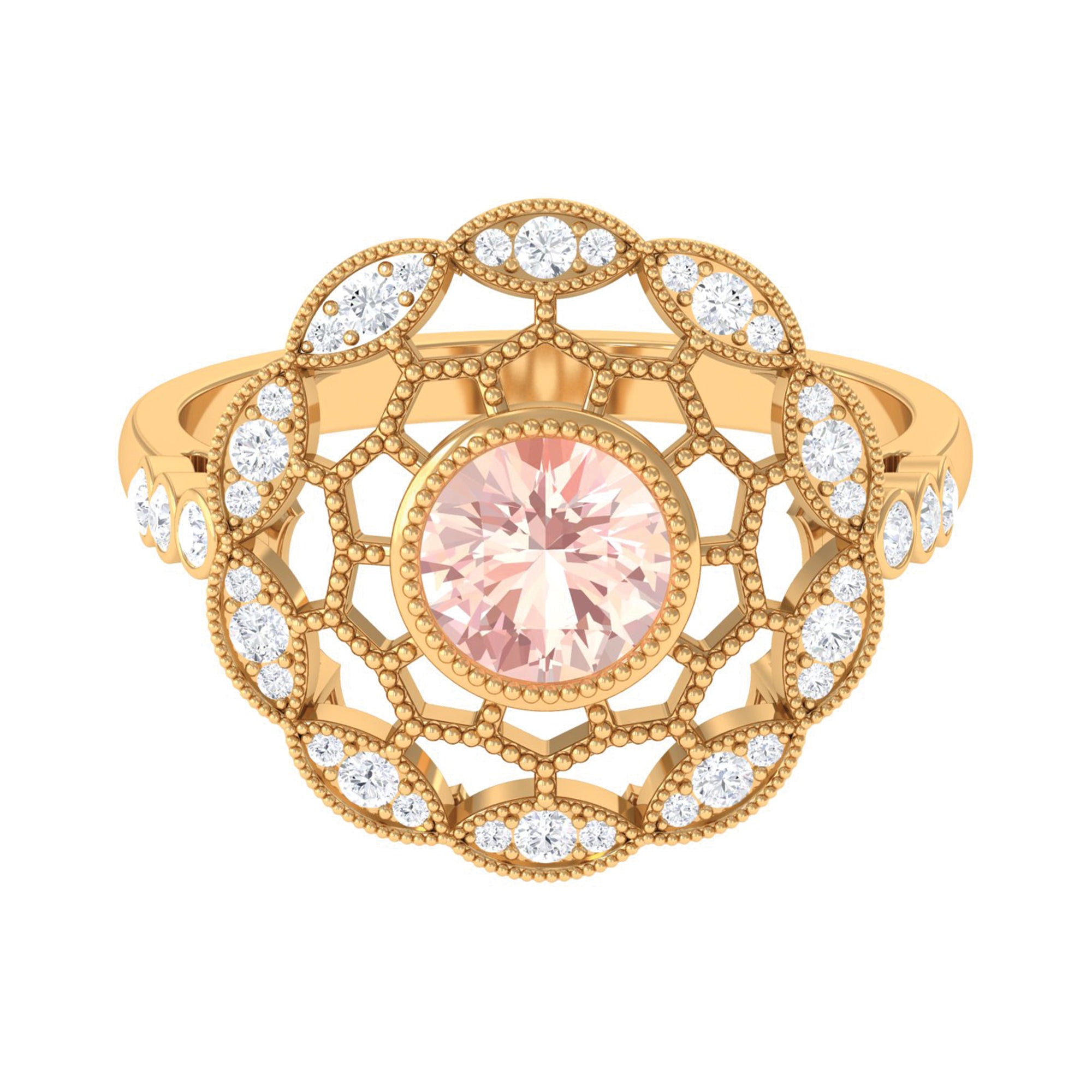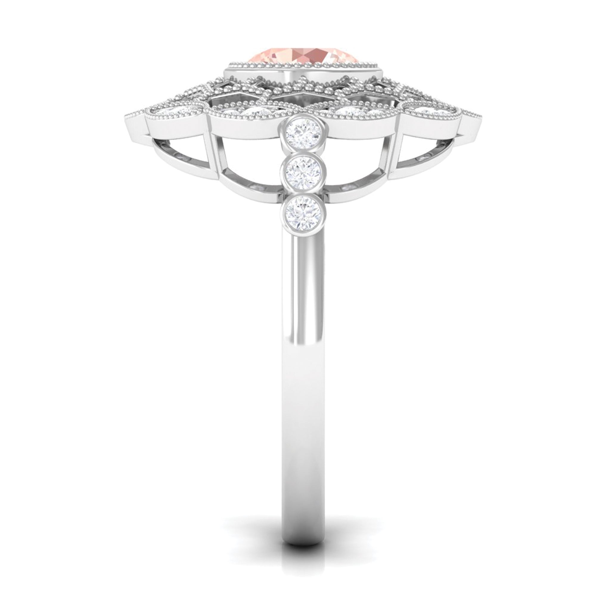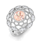A dazzling bloom of love and light, the Morganite and Diamond Flower Statement Ring is a breathtaking symbol of your forever bond. At its center, a sparkling morganite gemstone radiates a soft, ethereal glow, reminiscent of a rose kissed by morning dew. Around it, a halo of Diamond shimmers like a constellation of stars, creating a truly dazzling display. Like a flower in full bloom, this ring is a celebration of your loves beauty and resilience. Wear this ring as a reminder of your loves eternal bloom.