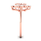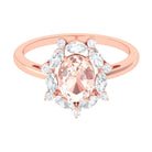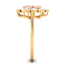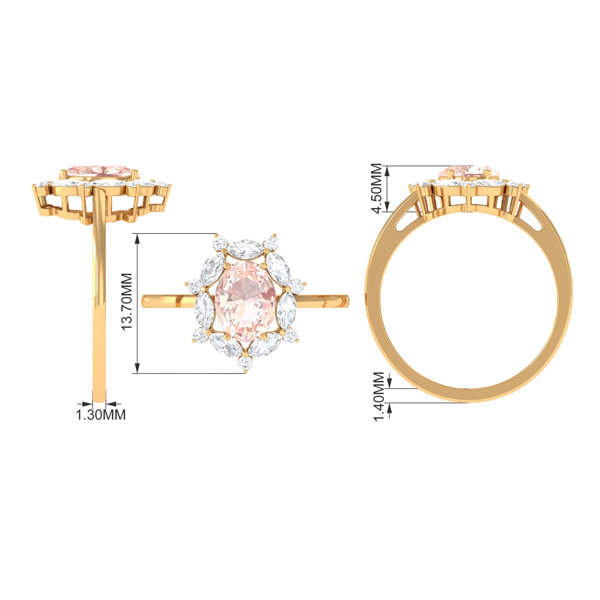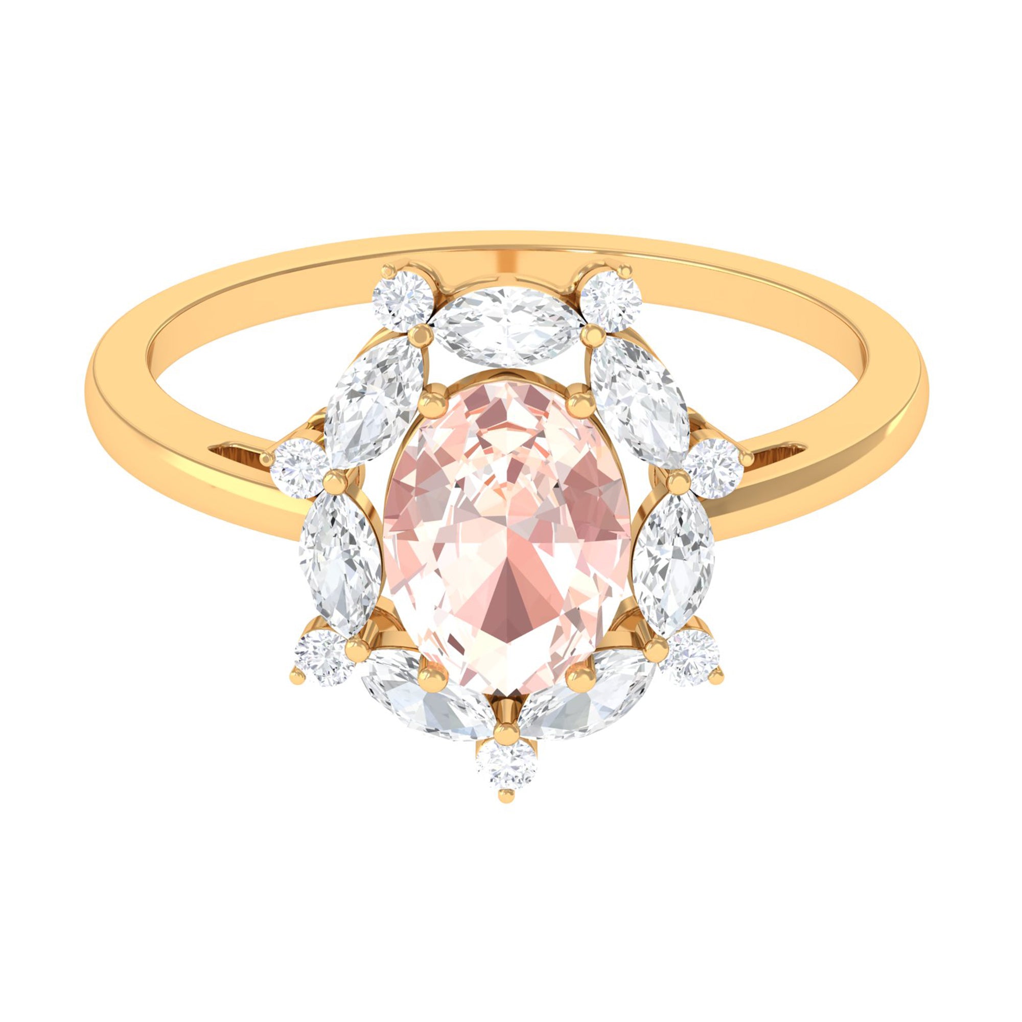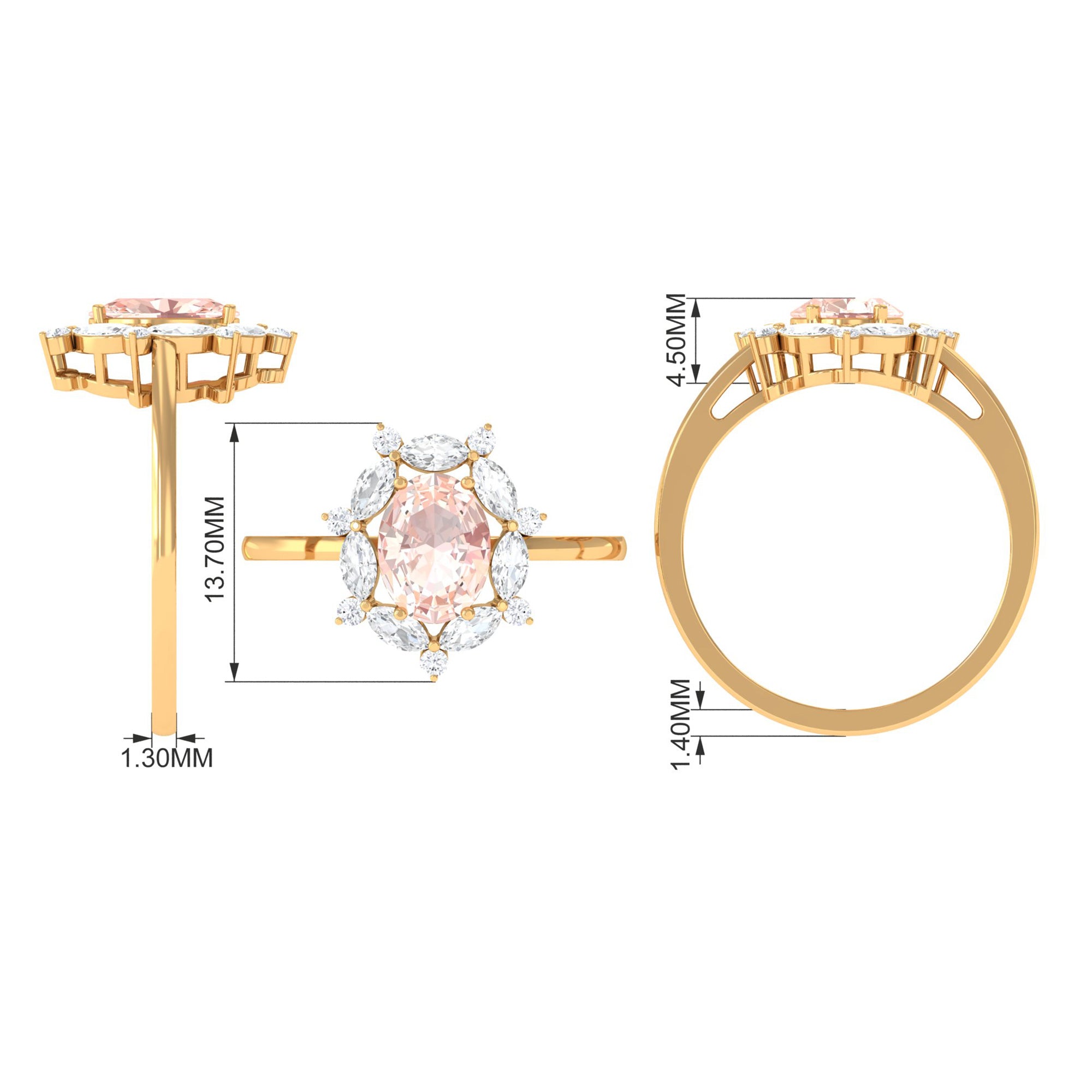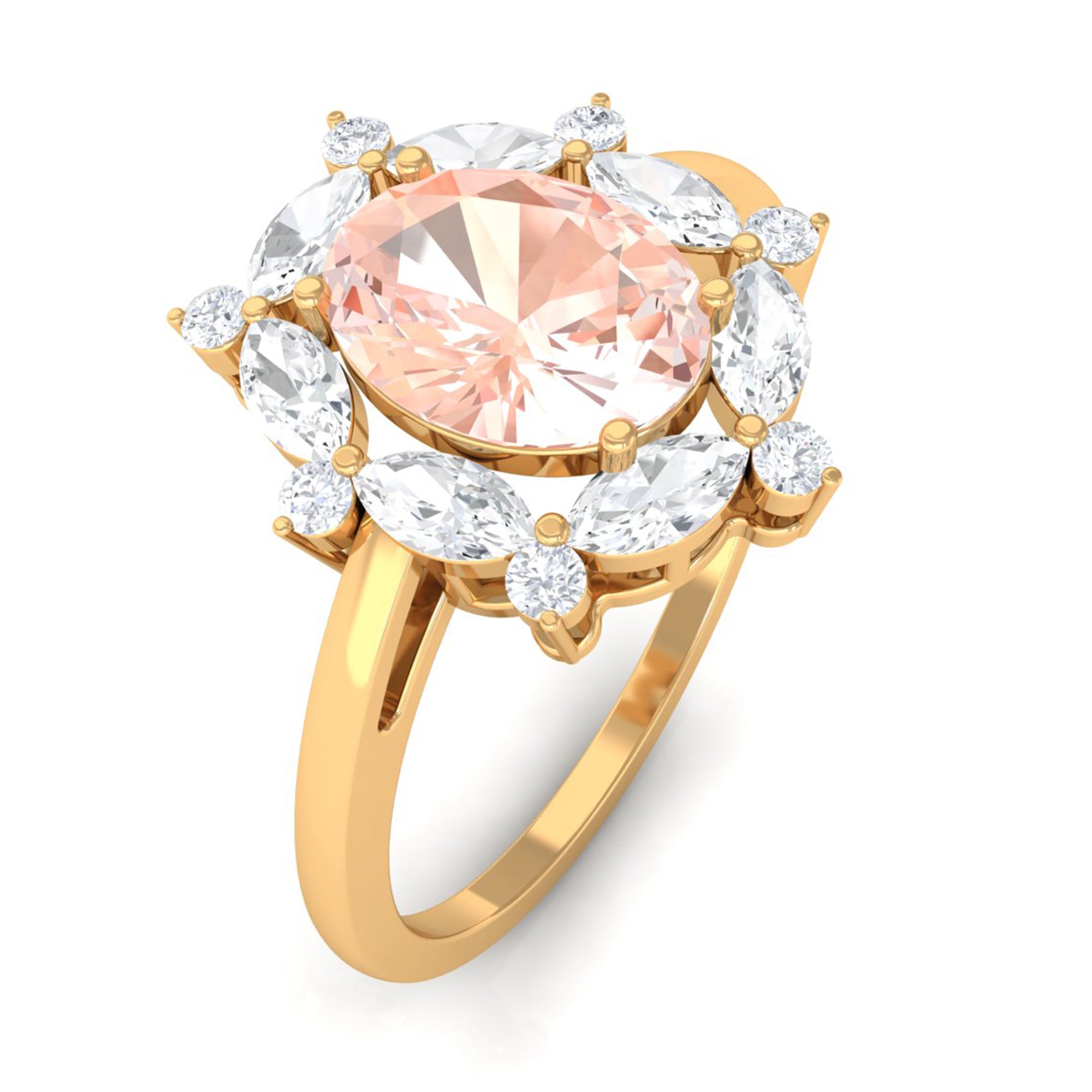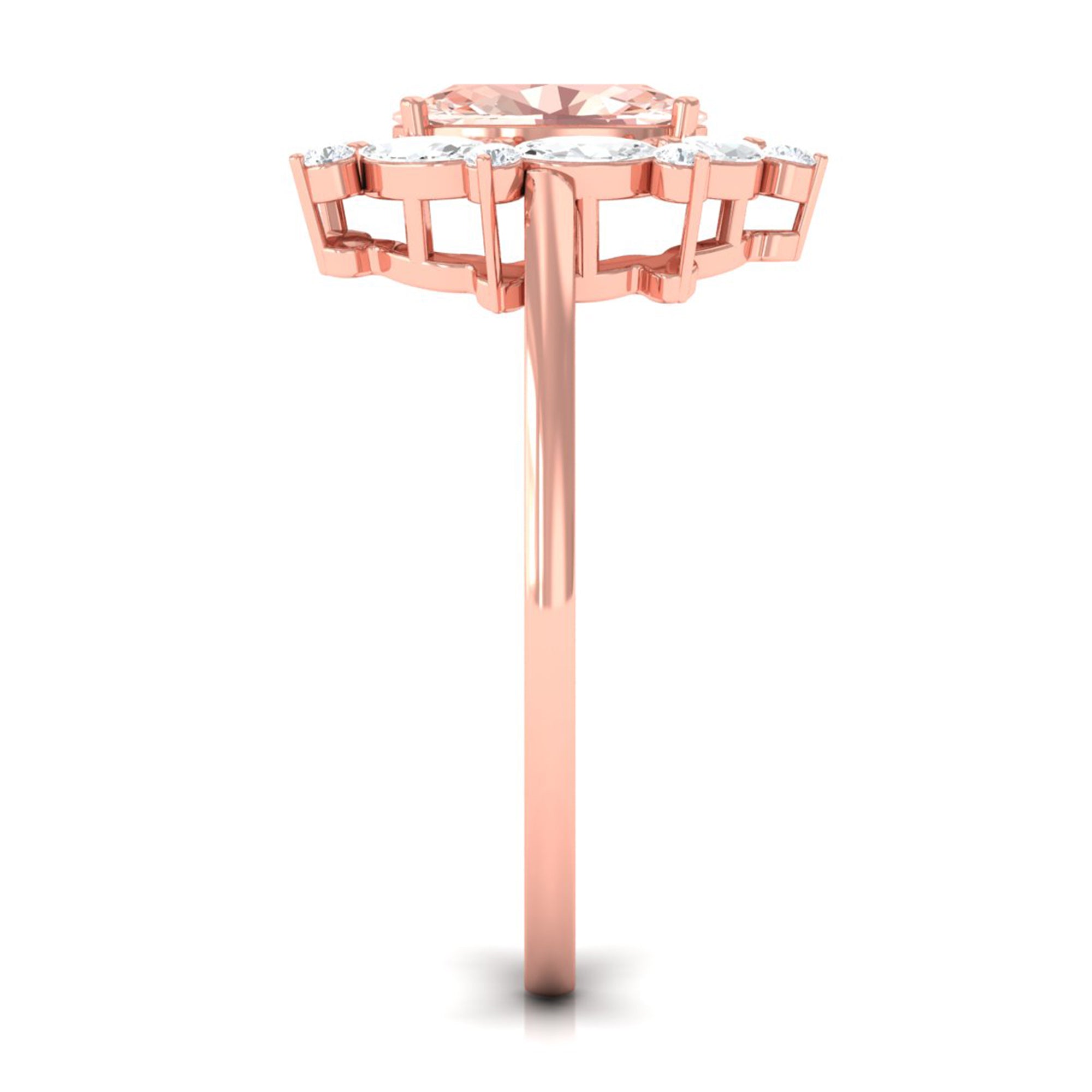 Make a stunning proposal with this elegant Morganite Engagement Ring. The ring features an oval cut Morganite surrounded by a halo of marquise and round moissanite. The designer halo adds a touch of glamour to this gorgeous piece of jewelry, crafted in beautiful gold. Celebrate your love in style with this stunning engagement ring.