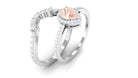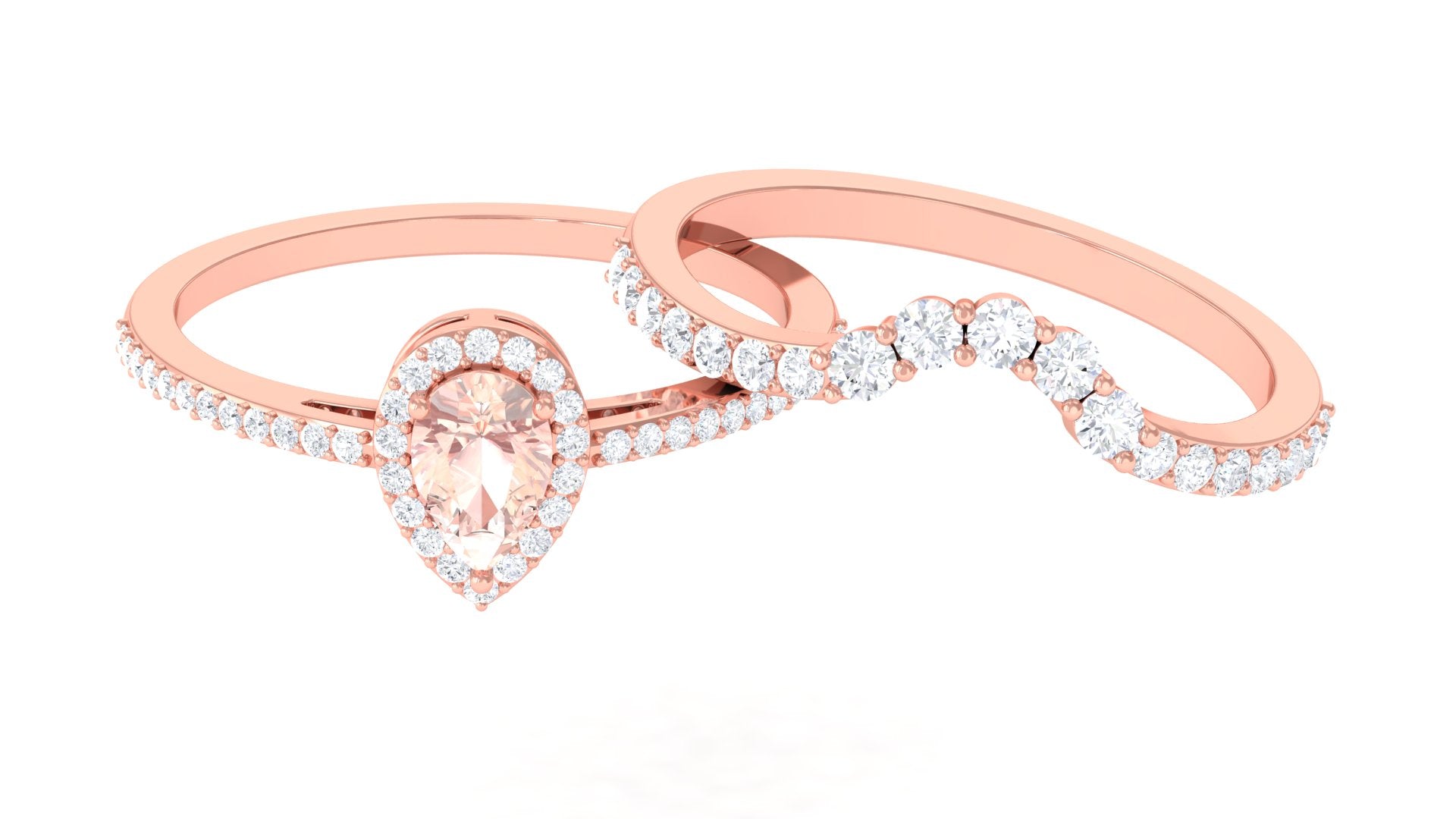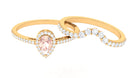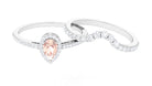 Morganite Designer Teardrop Ring Set with Diamond Halo