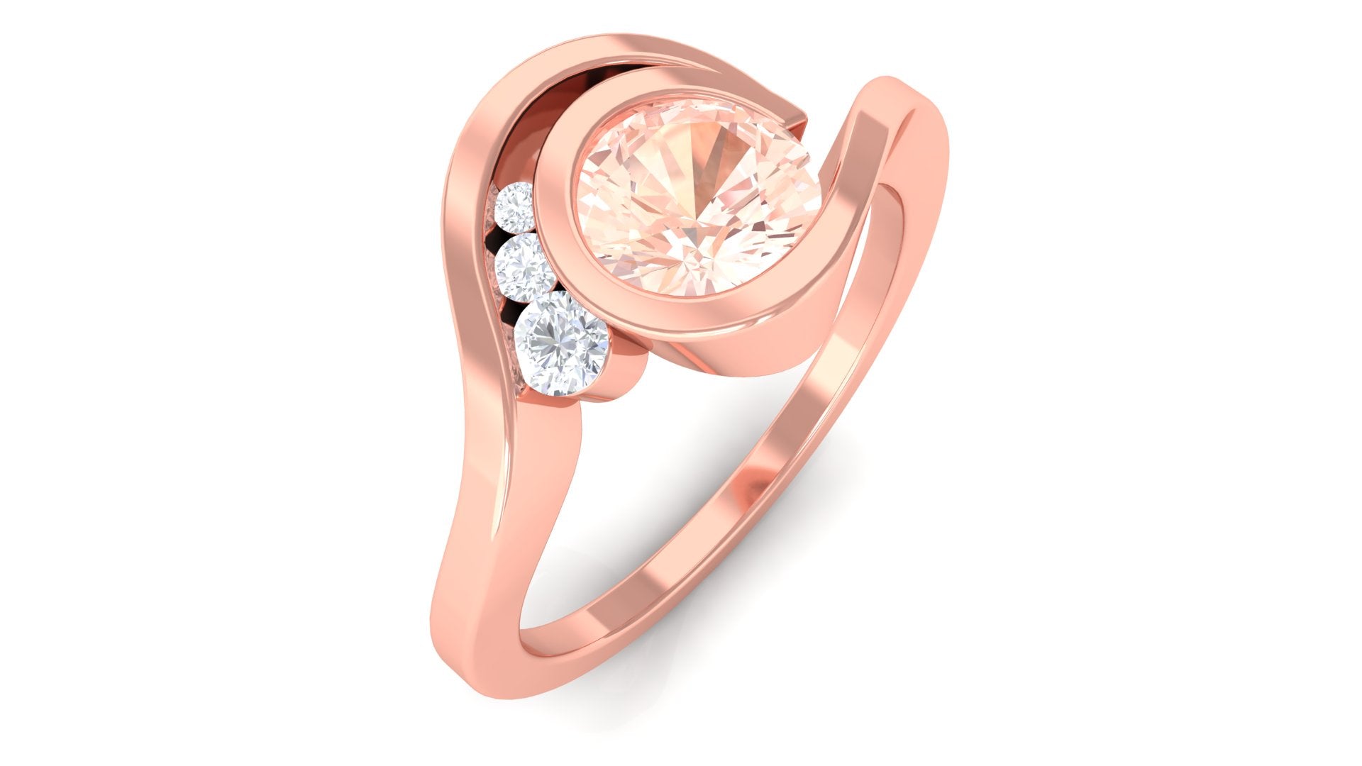This exquisite morganite solitaire bypass engagement ring is a breathtaking sight to behold. The delicate round-shaped morganite gemstone, with its soft pink hue and sparkling brilliance, is the perfect embodiment of your eternal love. The sparkling Diamond placed on the side gives a luxury touch. The bypass design adds a touch of whimsy and romance, creating a ring that is both unique and timeless. As you slip this ring onto your beloveds finger, imagine the look of joy and amazement on their face.