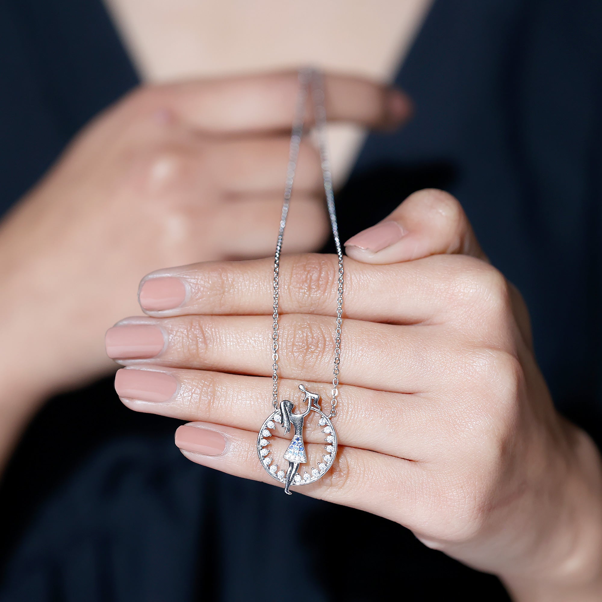 A token of everlasting love, this New Mom Necklace is a heartfelt piece that beautifully celebrates the unbreakable bond between a mother and her child. Crafted in 925 Sterling Silver, the Necklace features a Mother lovingly holding her little one. The Mother is adorned with colorful Aquamarine, Lab Blue Sapphire and Zircon stones that add warmth, vibrance and meaning to the design. Surrounding them is an open circle lined with shimmering Zircon stones, symbolizing protection, unity and the endless nature of a mother’s love. The elegant chain complements the pendant perfectly, offering a soft, comfortable fit that is easy to wear with everyday outfits or special-occasion looks. Arriving in a thoughtfully designed jewelry box, this Multi Gemstone Necklace makes an unforgettable gift for new moms, baby showers, Mother’s Day, birthdays or anyone celebrating the joy of motherhood. Whether worn as a symbol of personal love or given as a meaningful keepsake, this Multi Stone Necklace is a reminder of the most precious bond of life, beautifully captured in a design that feels both modern and timeless.