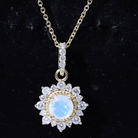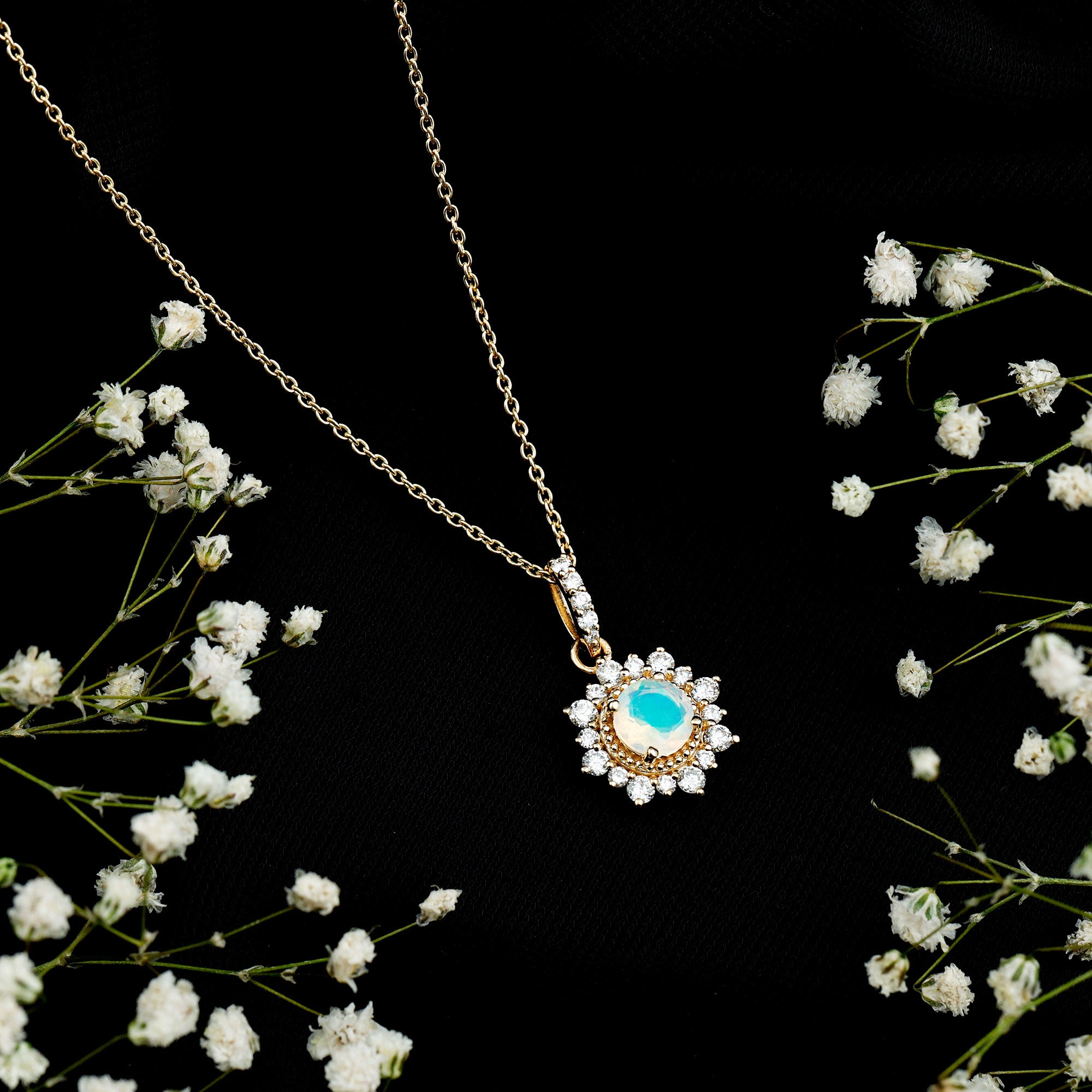 Natural 0.8 Ethiopian Opal Flower Necklace with Diamond Halo