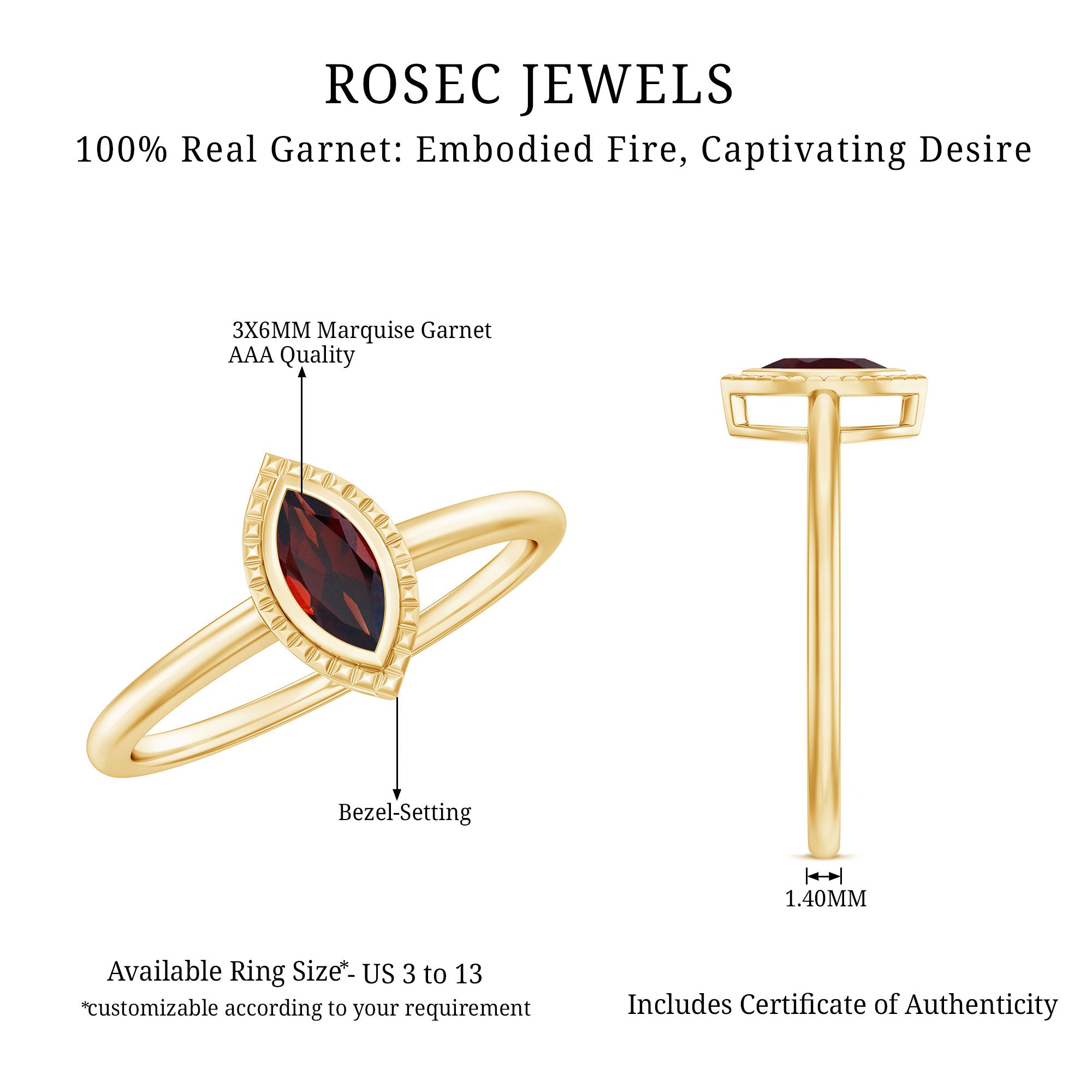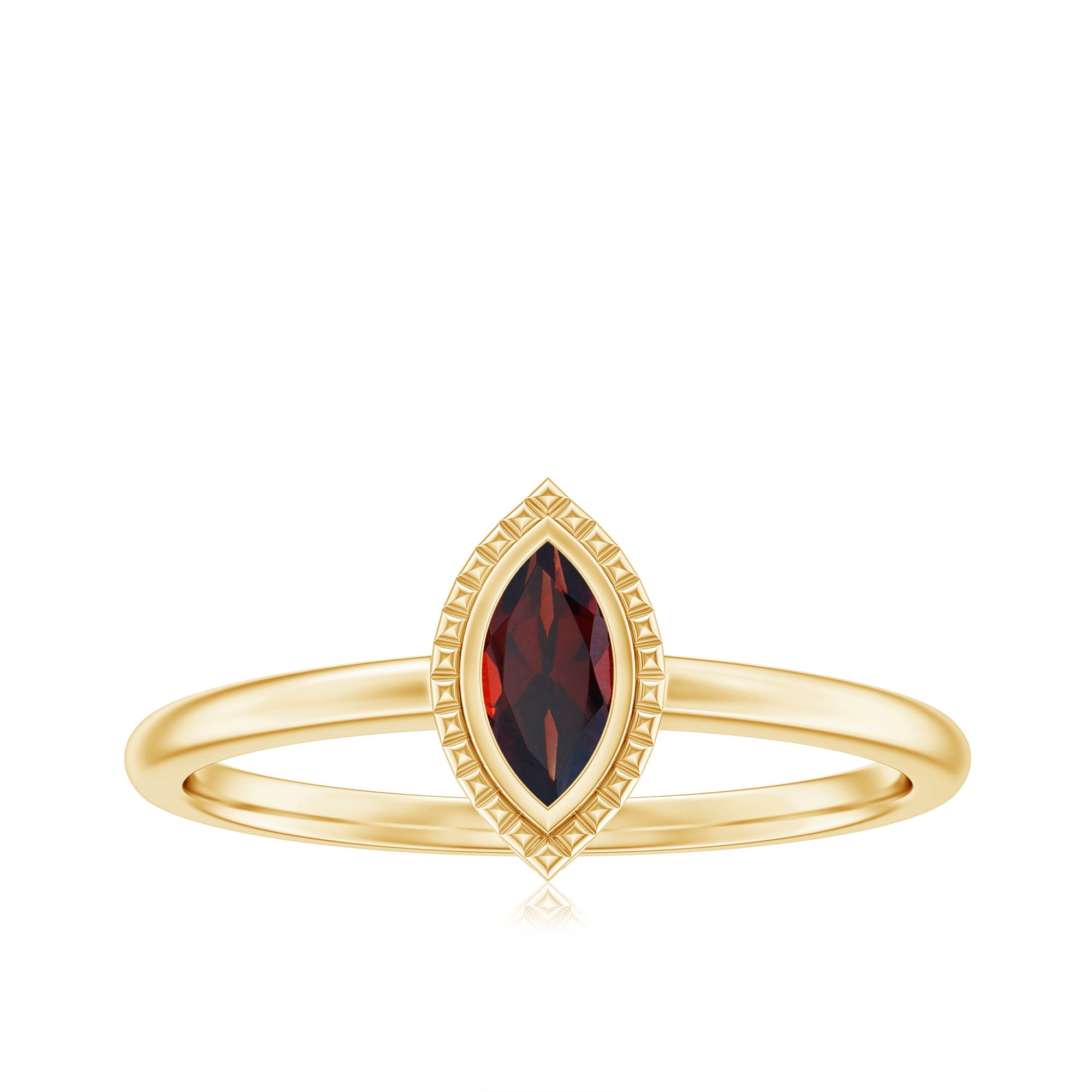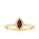 The unparalleled charm of the Garnet Ring has modern design with contemporary aesthetics. Crafted from Yellow Gold Plated Silver, this Promise Ring is embellished with 3X6 MM Marquise Shape Garnet in Bezel Setting with the engraved design. As a classic and dominant appeal, this Solitaire Ring have a timeless appeal that continues to captivate jewelry lovers. This Red Garnet Ring symbolizes the romantic bond that demonstrates their love and devotion. Its enchanting design signifies the promise of forever and a vow of love and loyalty. A single and stand-alone AAA Quality Garnet takes the center stage with its color and clarity. Garnet also graces January as the birth month, which simply appreciates the beauty, thus making it a beautiful piece of jewelry that appreciates the understated elegance and making it an excellent choice for special occasions like birthdays, anniversaries, or even Valentines Day.