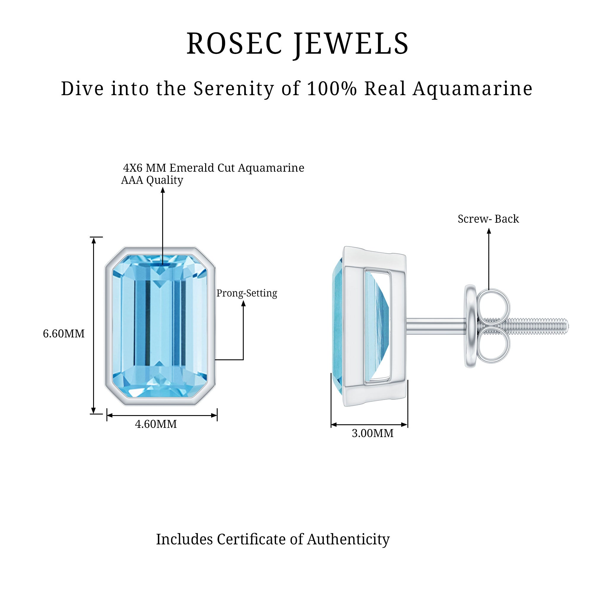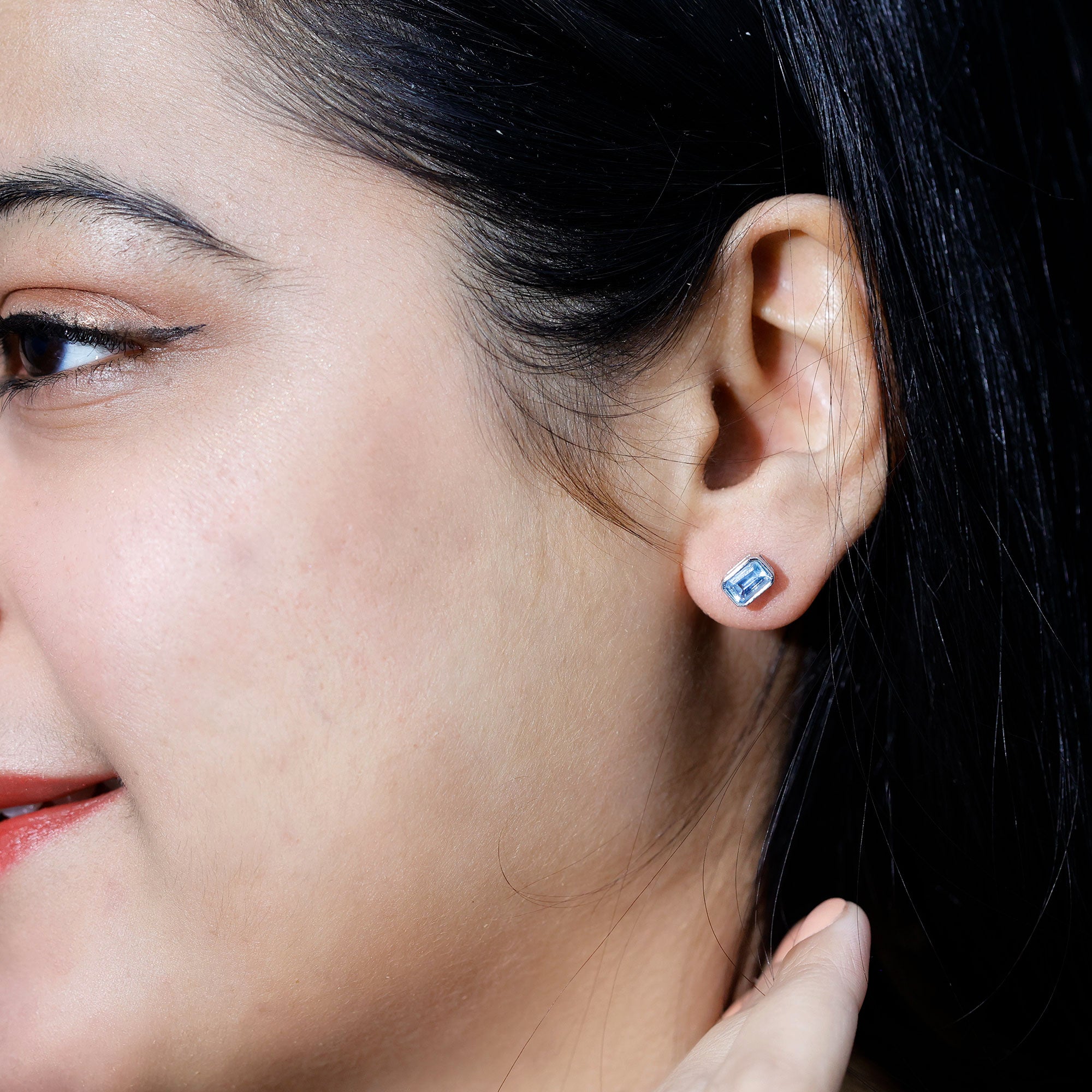 Looking for a perfect day-to-day jewelry, weve got your back with these Aquamarine Stud Earrings, precisely crafted with 14K White Gold Plated Silver. The big earrings feature a 4X6 MM Emerald Cut Aquamarine secured in Bezel Setting. These Emerald Cut Earrings can be a perfect option to be styled with formal looks that give a vibrant hue to the gemstone. These Earrings with Screw on Backs stays on place throughout the day. The Solitaire Earrings will be delivered to you in a premium quality packaging with the certificate of authenticity.
