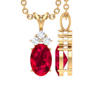 Natural 4X6MM Oval Ruby Pendant with Diamond Trio