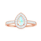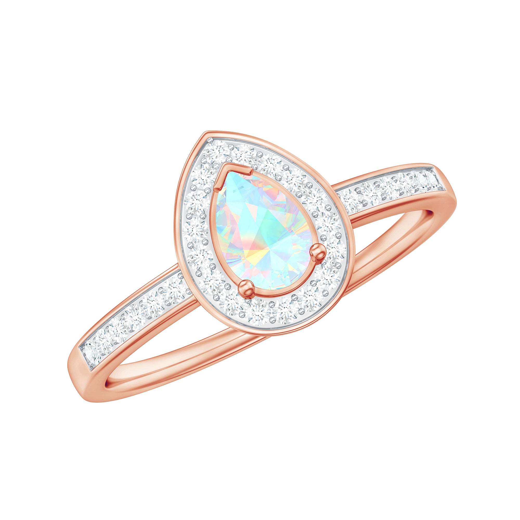 Natural 5X7mm Opalescent Teardrop Engagement Ring with Diamond Halo