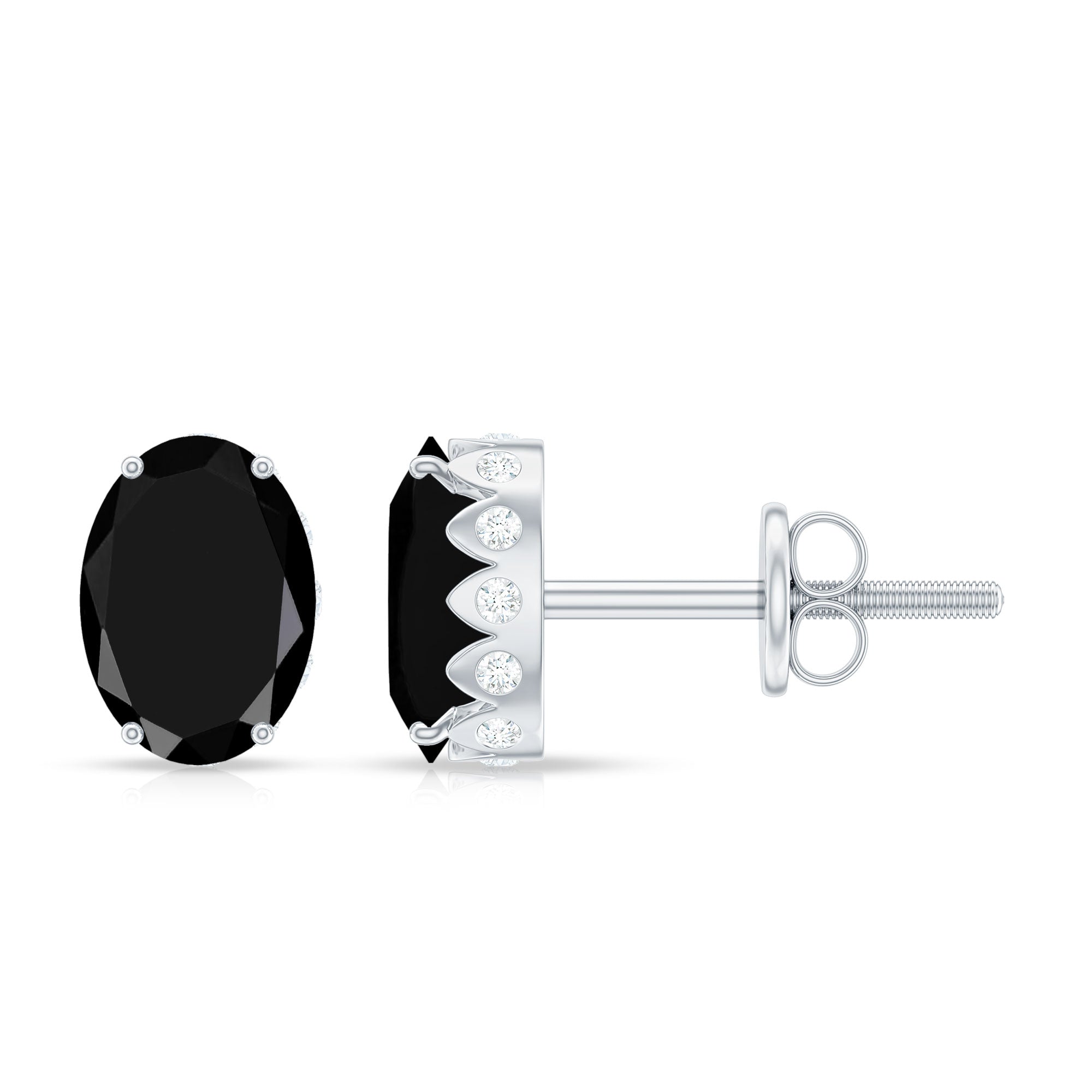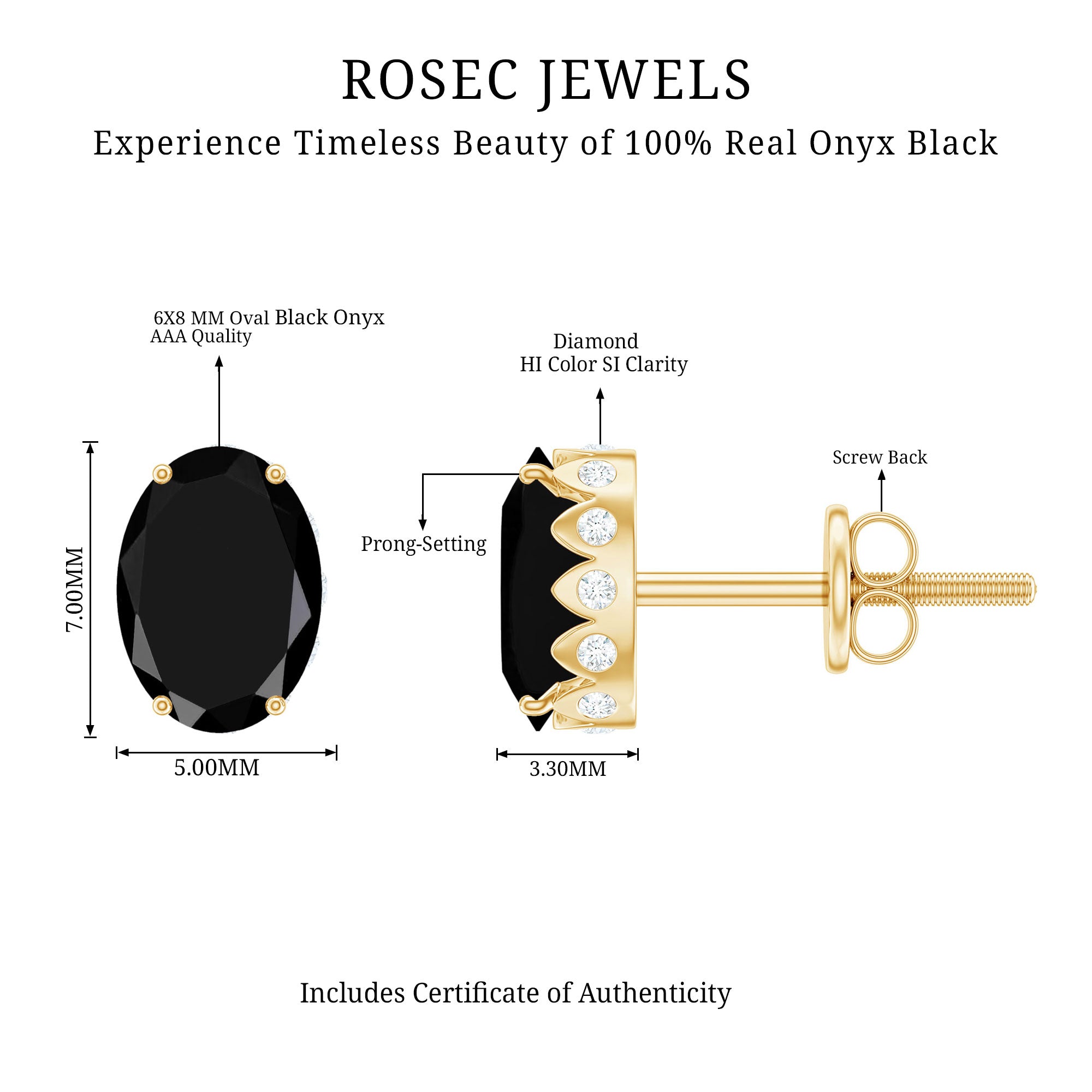 Natural 6X8mm Oval Black Onyx Earrings with Diamond