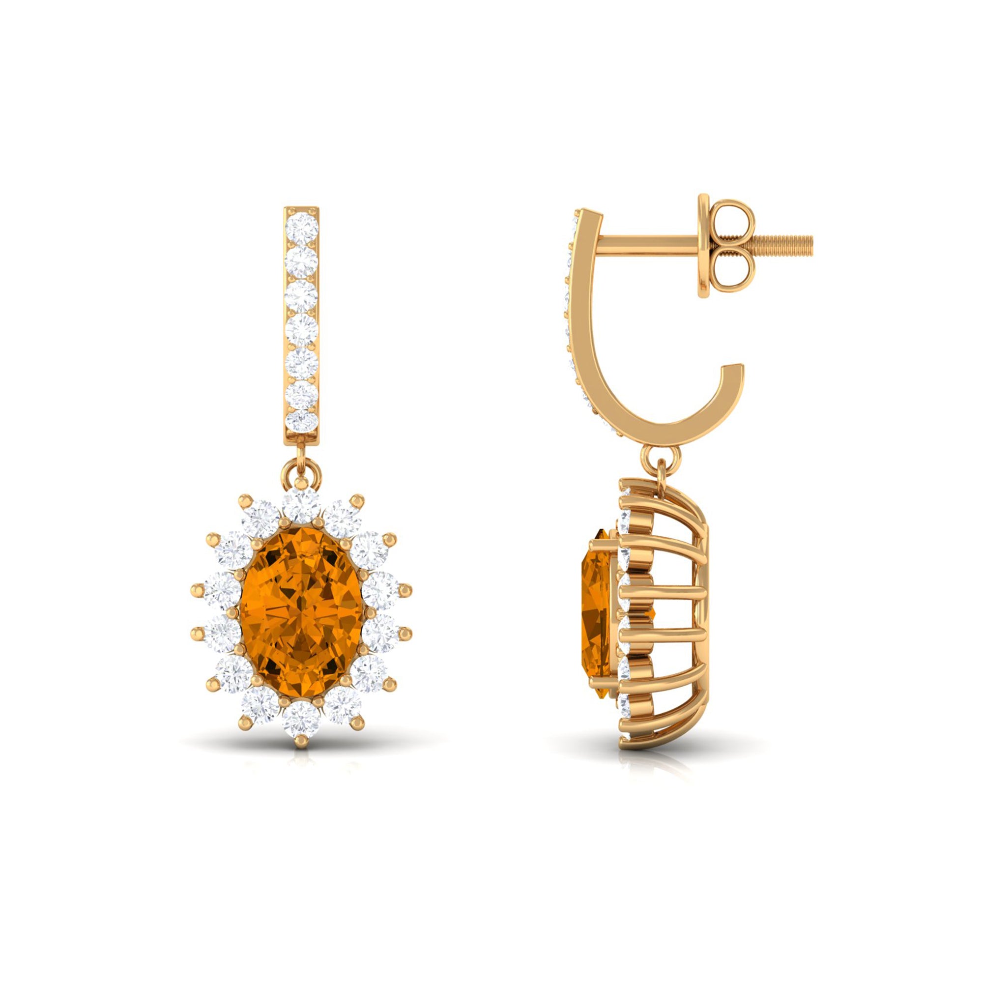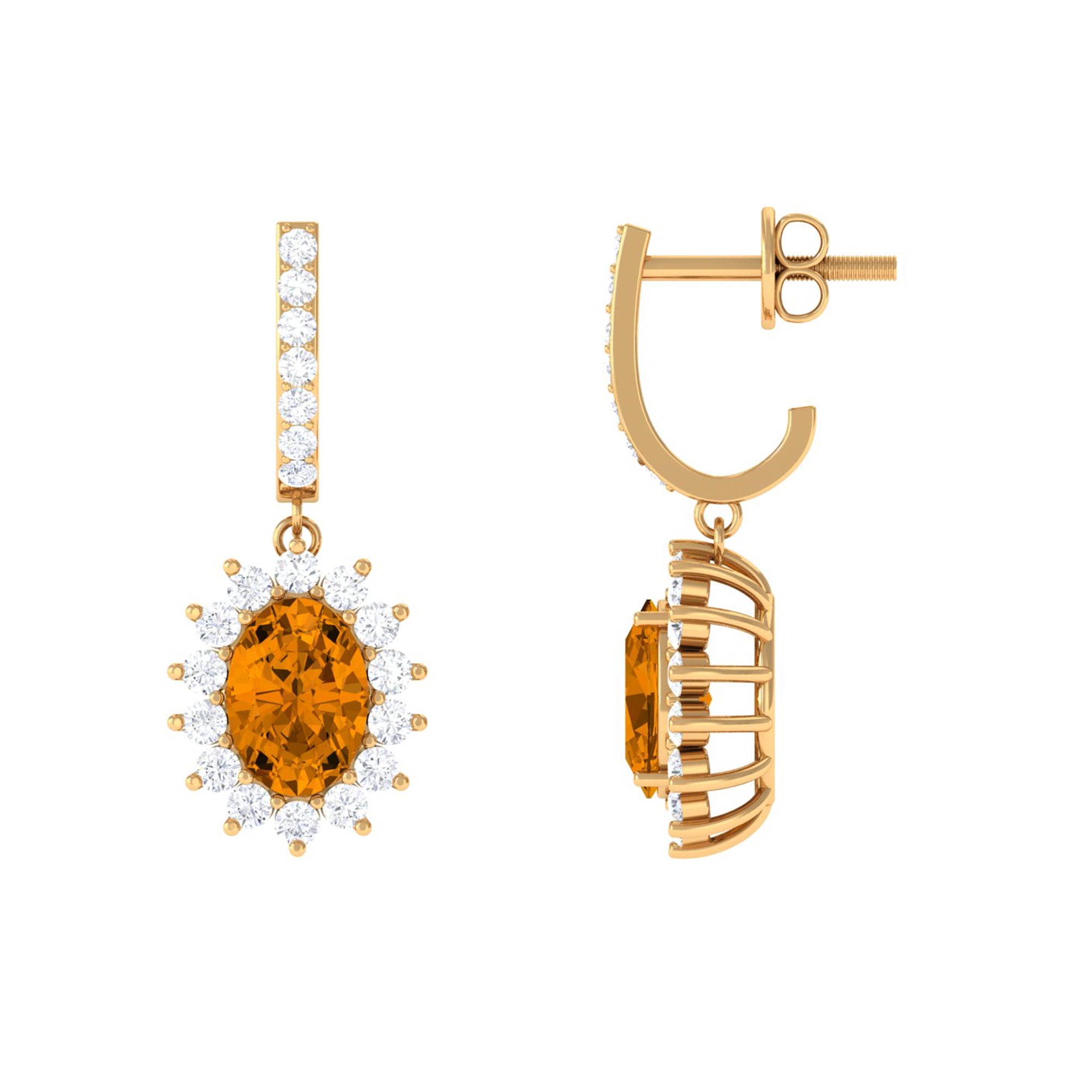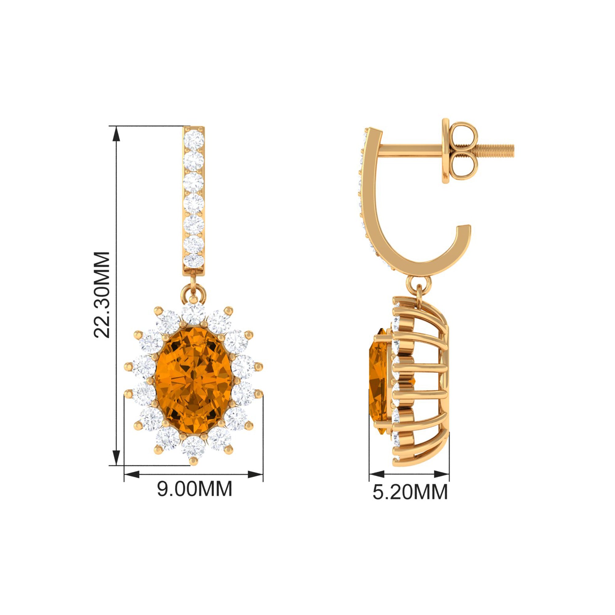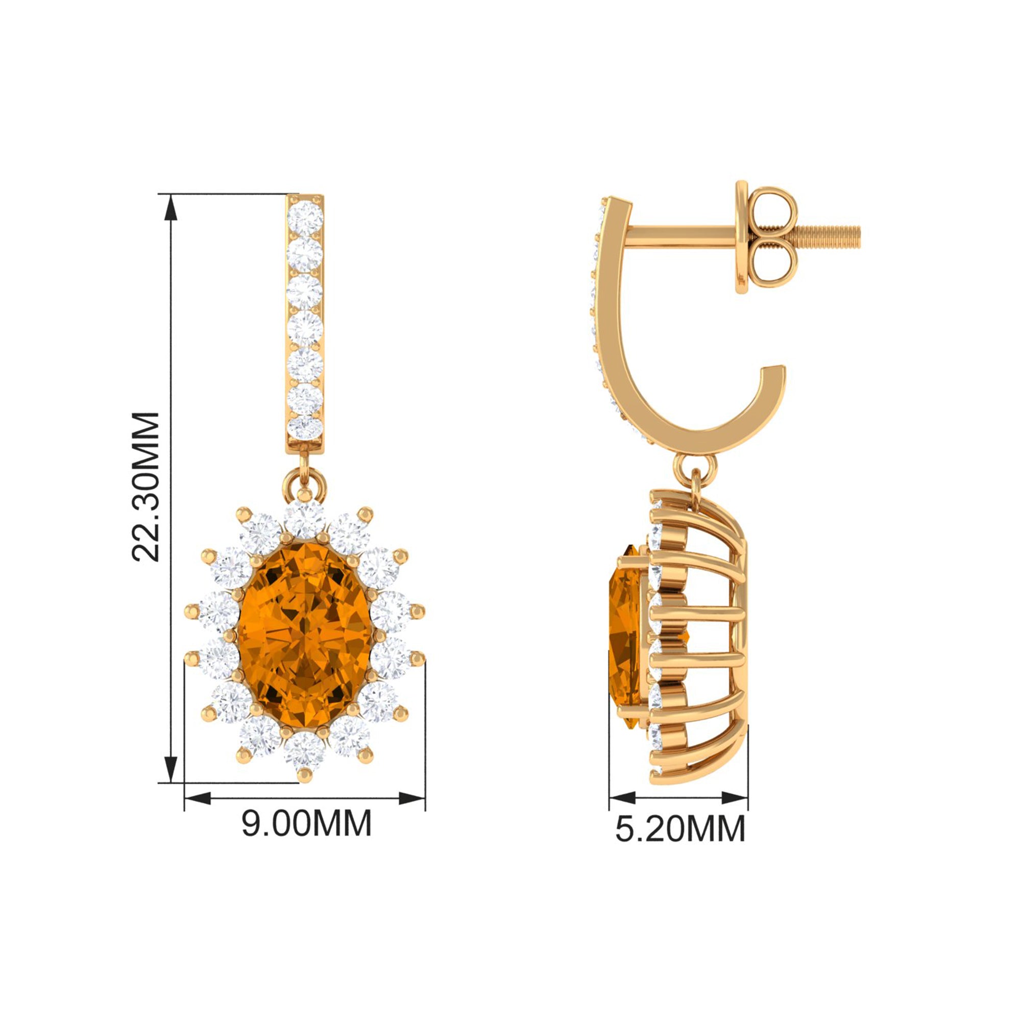 Natural 6X8mm Oval Citrine Drop Earrings with Moissanite
