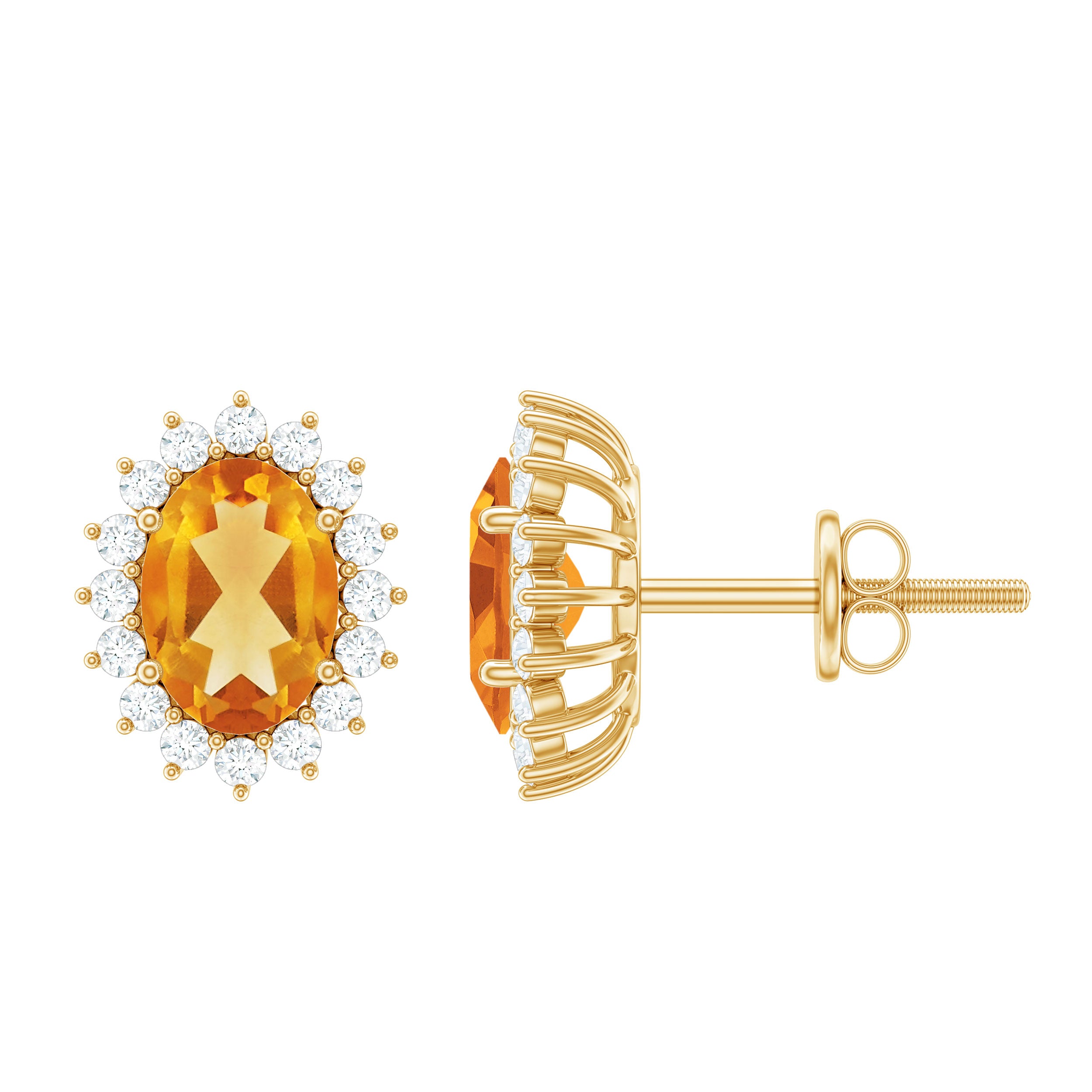 Bring lots of compliments with these dazzling Citrine Stud Earrings, beautifully framed by a dazzling Moissanite Halo. The rich golden hue of the 6X8 mm Oval Shape Citrine is perfectly complemented by the sparkle of Moissanite stones, creating a striking contrast that catches the light from every angle. Whether you are heading to a special event or adding a touch of luxury to your everyday look, these Halo Stud Earrings are sure to turn heads and add a radiant pop of color to any outfit. Designed for both style and comfort, the secure Screw Back Closure ensures a snug and worry-free fit, allowing you to wear them with confidence all day long. The Oval Shape of AAA Quality Citrine offers a timeless elegance, while the D-VS1 Moissanite Halo adds a modern twist, making these Citrine Ear Studs a versatile accessory that works with everything from evening wear to casual attire. Presented in a signature jewelry box, these November Birthstone Earrings are ready to gift for any occasion, be it a birthday, anniversary or just a thoughtful surprise.