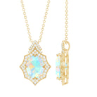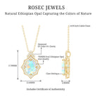 Make a bold statement with this Art Deco Necklace, featuring a striking design that captures the spirit of vintage glamour and timeless elegance. The pendant showcases a beautiful 7X9 mm Oval Shape Ethiopian Opal of AAA Quality in Claw Setting, with its unique play of colors shifting with every angle, set in an intricate Art Deco inspired frame that highlights geometric patterns and delicate craftsmanship. Accentuating the luminous beauty of Opal are sparkling Lab Grown Diamond stones carefully set around the pendant, adding just the right amount of brilliance and sophistication. The Opal Pendant Necklace hangs gracefully from a fine chain, both crafted in Yellow Gold Plated Sterling Silver, giving the piece a warm, luxurious finish that complements the glow of Opal. Ideal for those who appreciate classic style with a modern twist, this Opal Diamond Necklace effortlessly elevates any outfit, from a chic evening look to elegant daywear. This Ethiopian Opal Necklace comes beautifully presented in a signature jewelry box, making it ready to gift for a special occasion or to treasure as a personal keepsake. Add a touch of vintage charm and elegance to your jewelry collection with this exquisite piece.