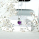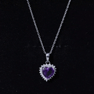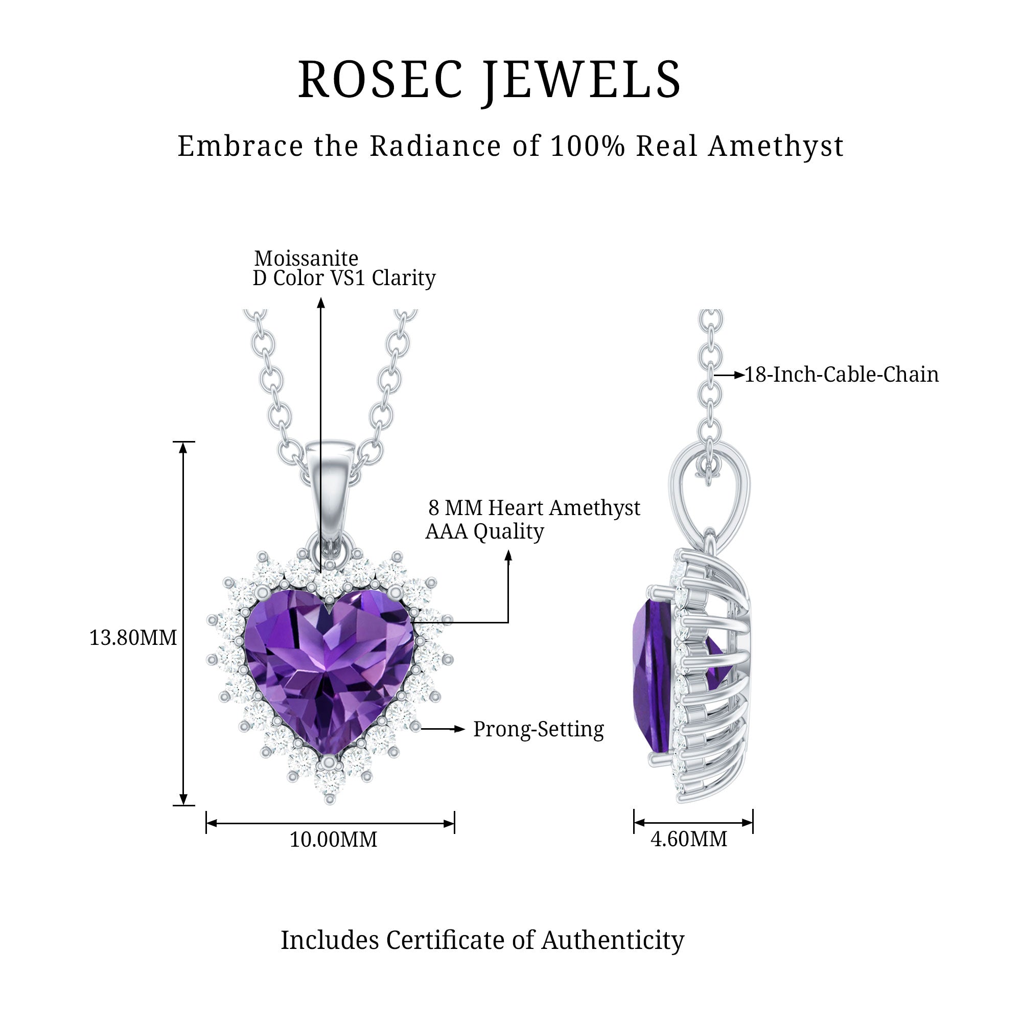 Natural 8 MM Amethyst Heart Necklace with Moissanite Halo