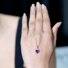 This Amethyst Pendant Necklace exudes a deep purple hue, which depicts royalty and spirituality. The pendant necklace features an 8 MM Heart Shape Amethyst secured in Prong Setting and encircled with a Halo of Moissanite stones. The Heart Shape Pendant is the true symbol of love and affection to present to your beloved. The Halo Pendant Necklace will be delivered to you in a premium packaging with the certificate of authenticity.
