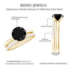Mark the beginning of eternity with a ring that shines as brightly as your love. This exquisite Onyx Bridal Set is crafted to serve as a timeless emblem of your devotion. Meticulously handcrafted by Rosec Jewels, this 2 Piece Wedding Ring Set harmoniously combines traditional elegance with contemporary allure. At the center of the set lies a breathtaking 8 MM round shape Black Onyx, rated AAA quality for its remarkable clarity and brilliance. Set in a prong setting on a sleek, polished band, the solitaire radiates with every glance. Accompanying the engagement ring is a refined half eternity wedding band, which adds an extra touch of sparkle to the bridal ensemble. The enhancer band features delicate round diamond stones, having HI Color SI Clarity. Together, they form a complete Solitaire Bridal Ring Set that is sophisticated, significant, and effortlessly chic. Whether worn together on your wedding day or styled separately for everyday elegance, this Black Onyx Engagement Ring Set will forever remind you of the love, joy, and journey you have chosen to embark upon. It comes presented in a luxurious jewelry box along with a Gemstone Authenticity Certificate, enhancing the significance of your moment.