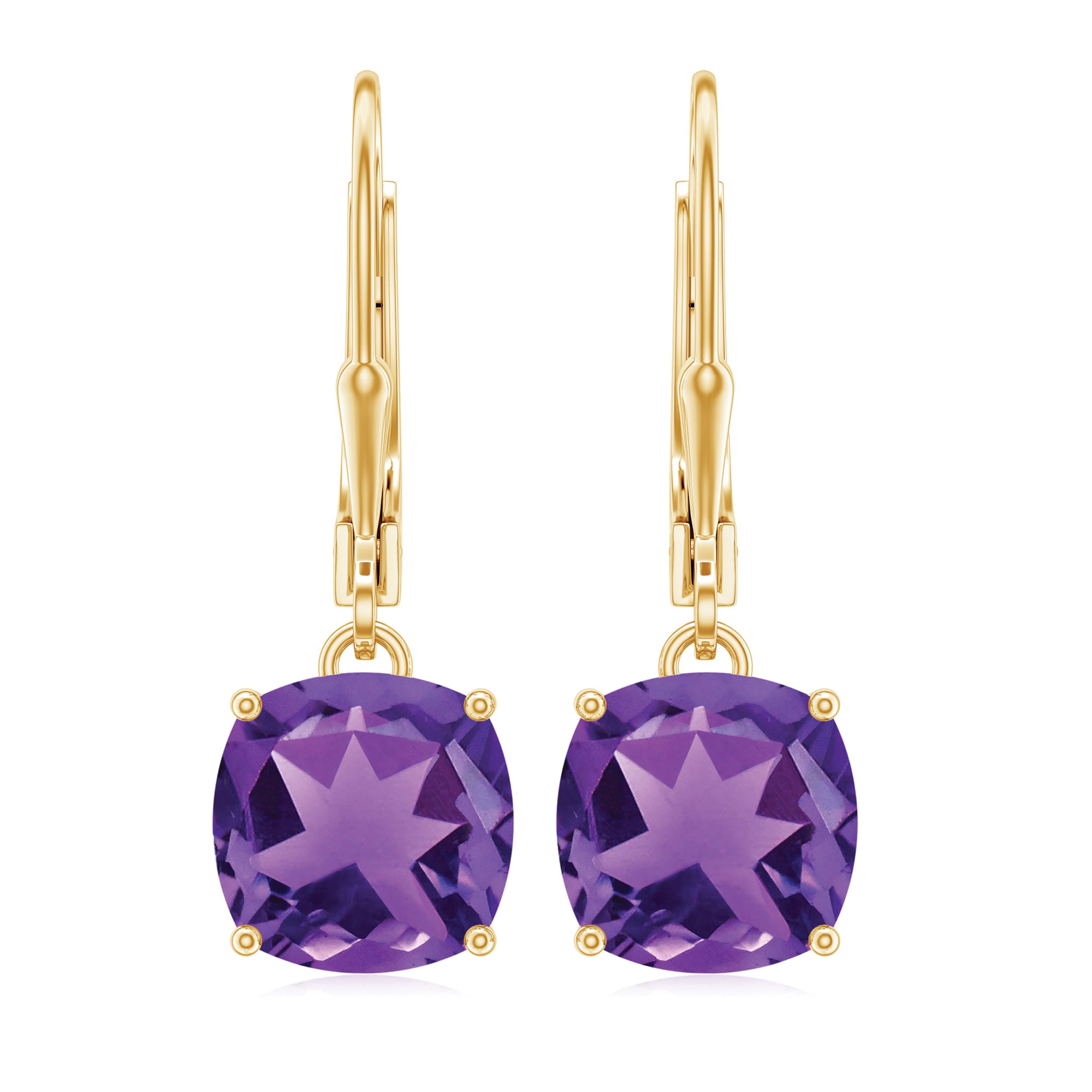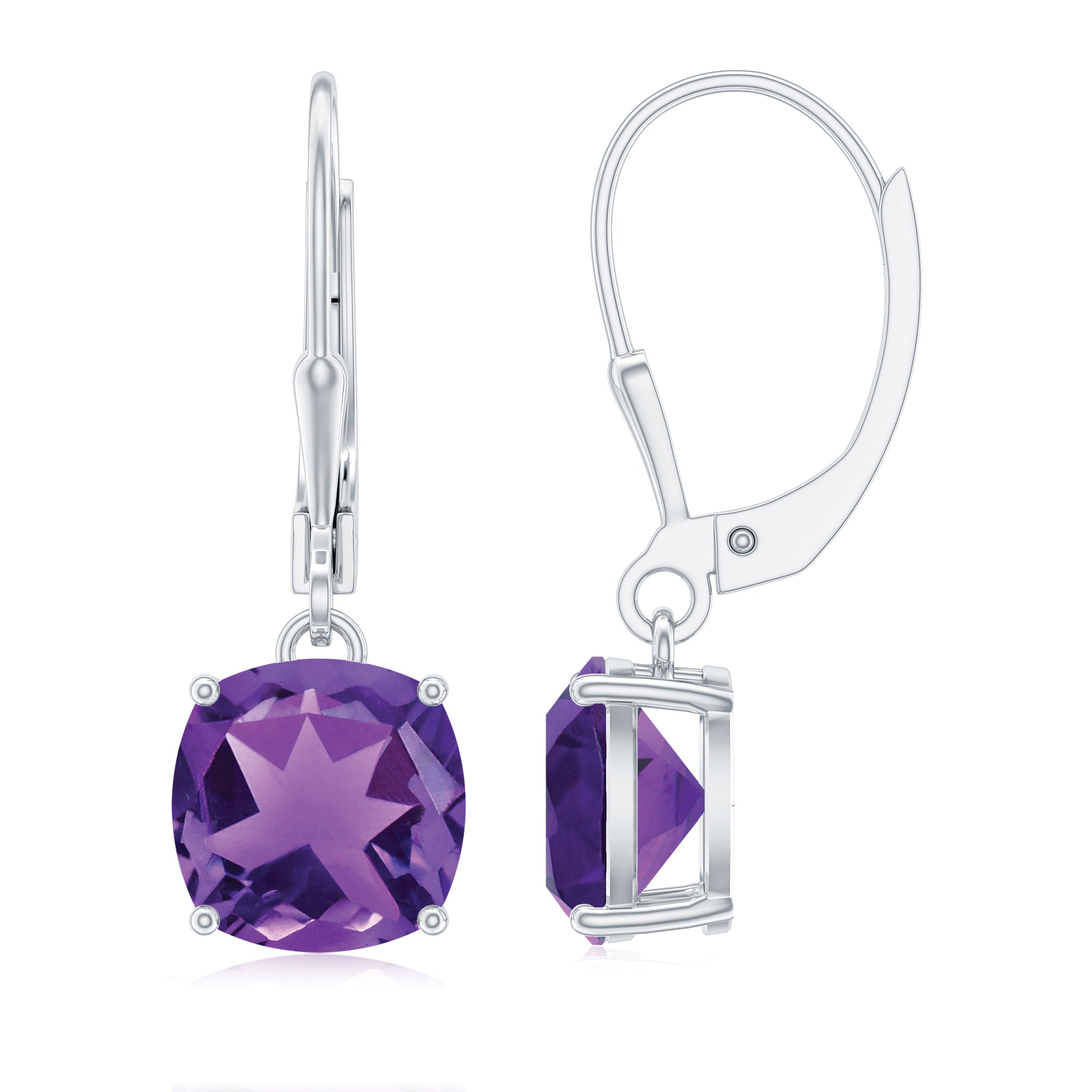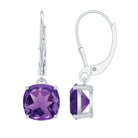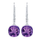 Natural 8mm Cushion Cut Amethyst Drop Earrings with Lever Back