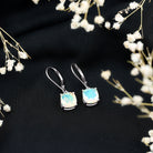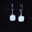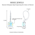 Natural 8MM Cushion Cut Rainbow Opal Hoop Drop Earrings
