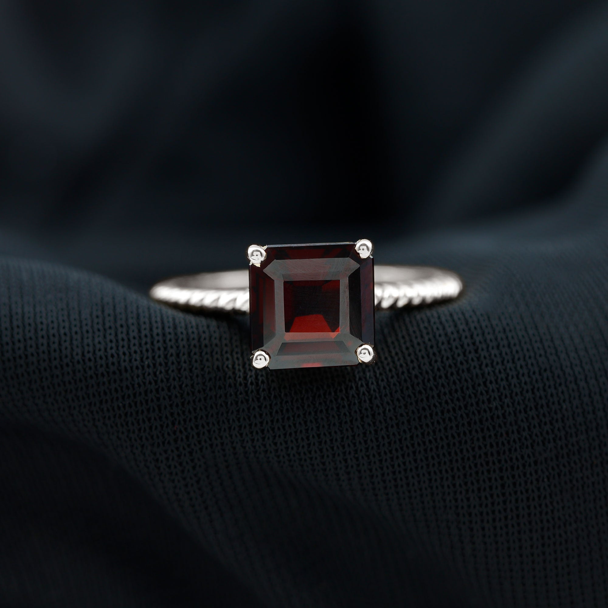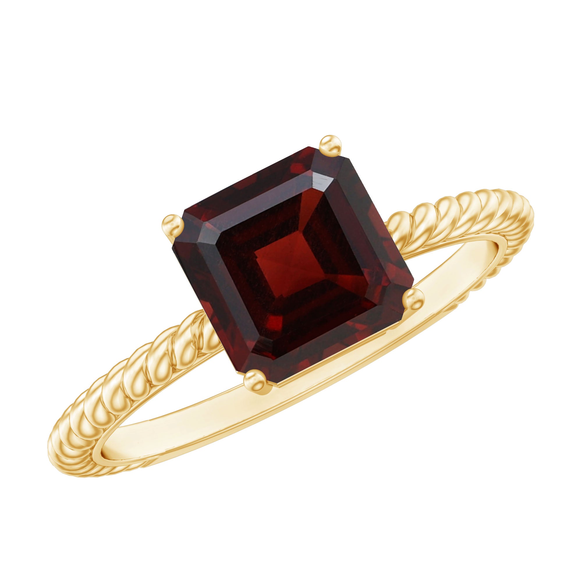 Natural 8mm Garnet Asscher Cut Engagement Ring with Twisted Rope