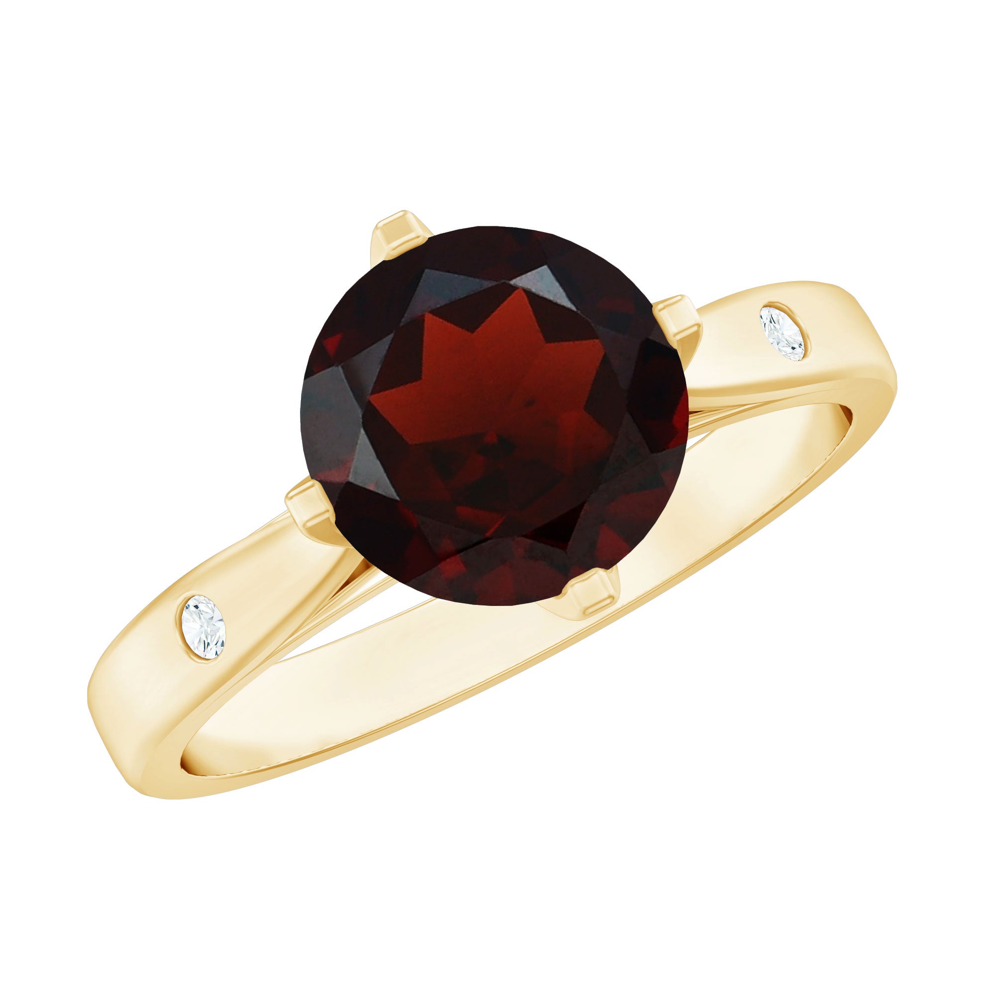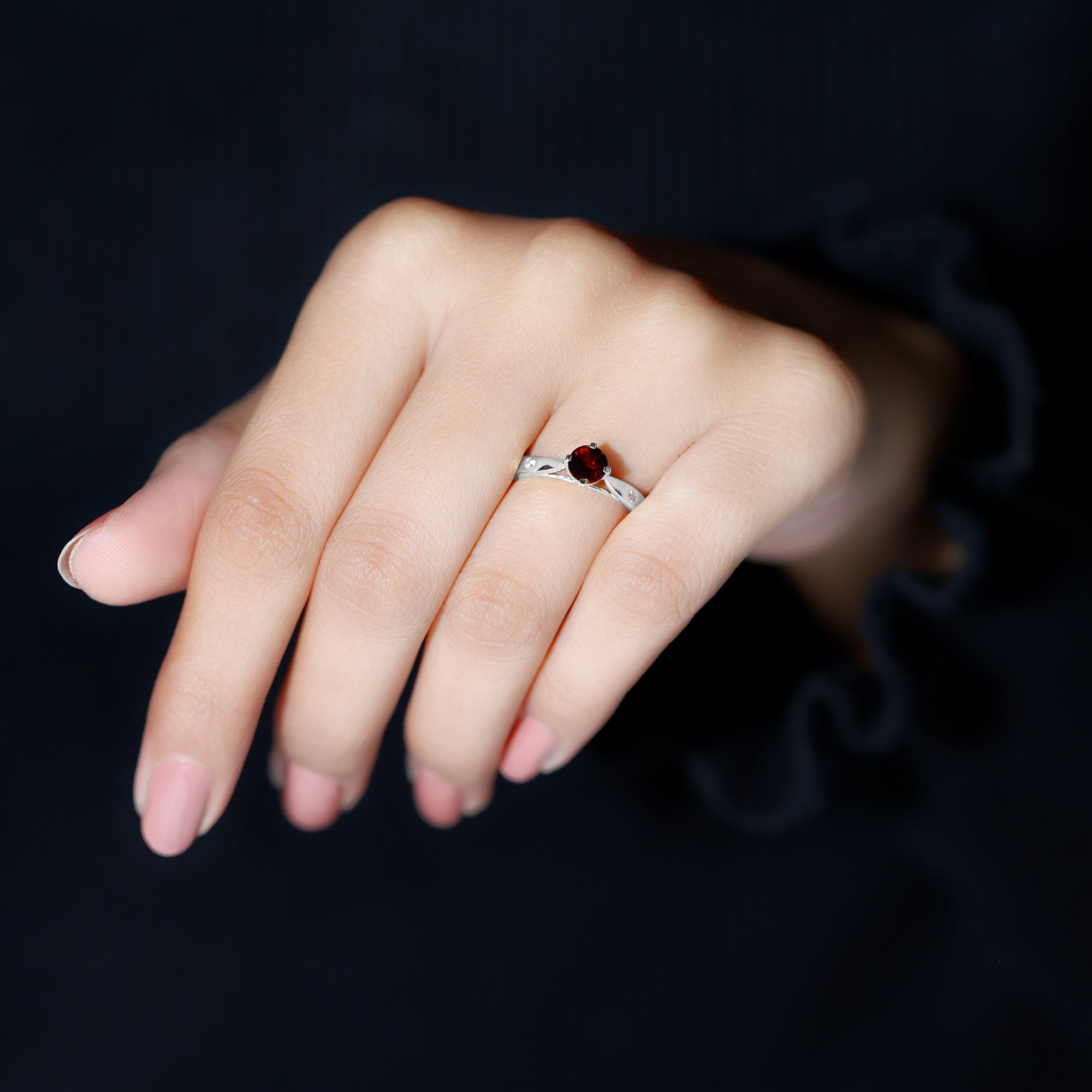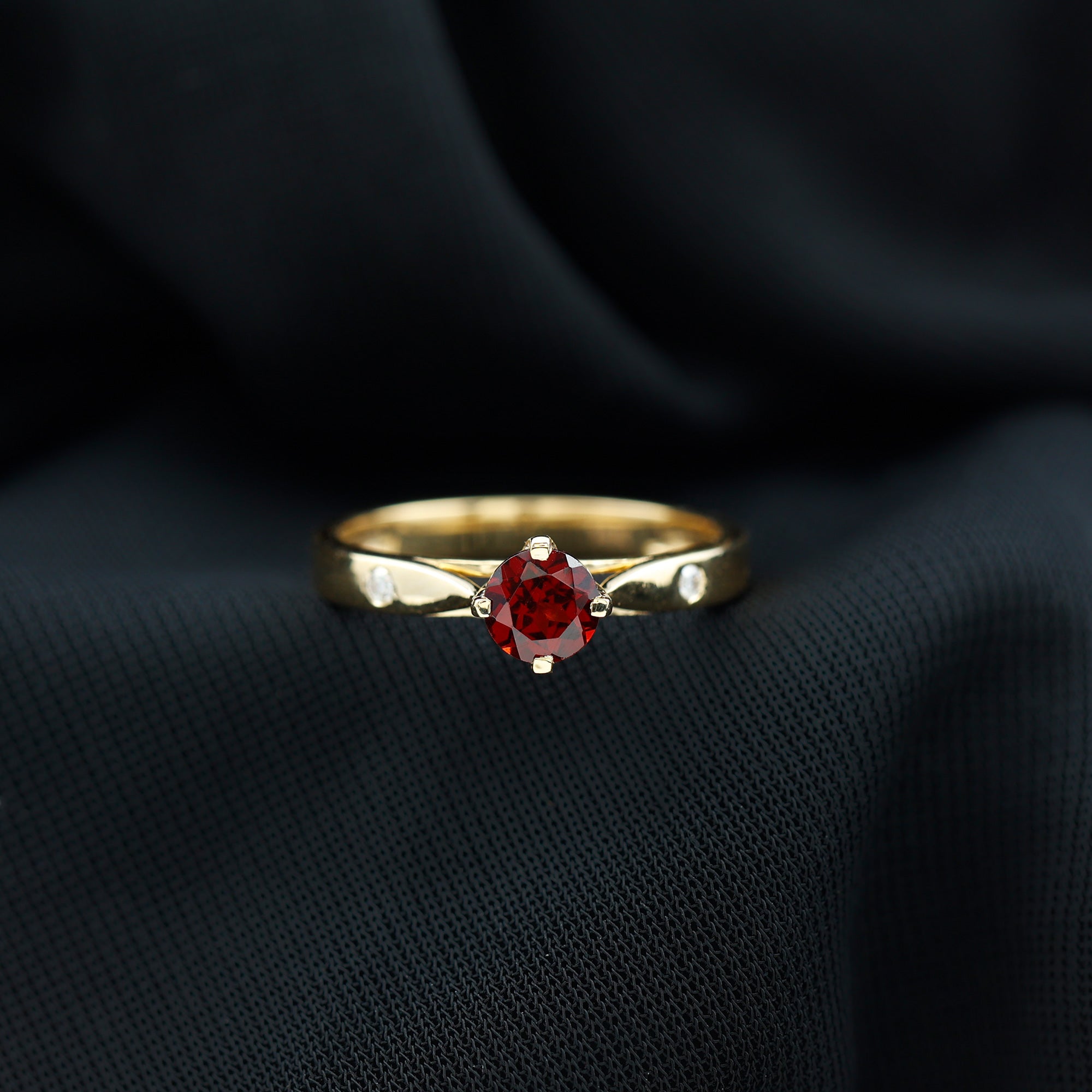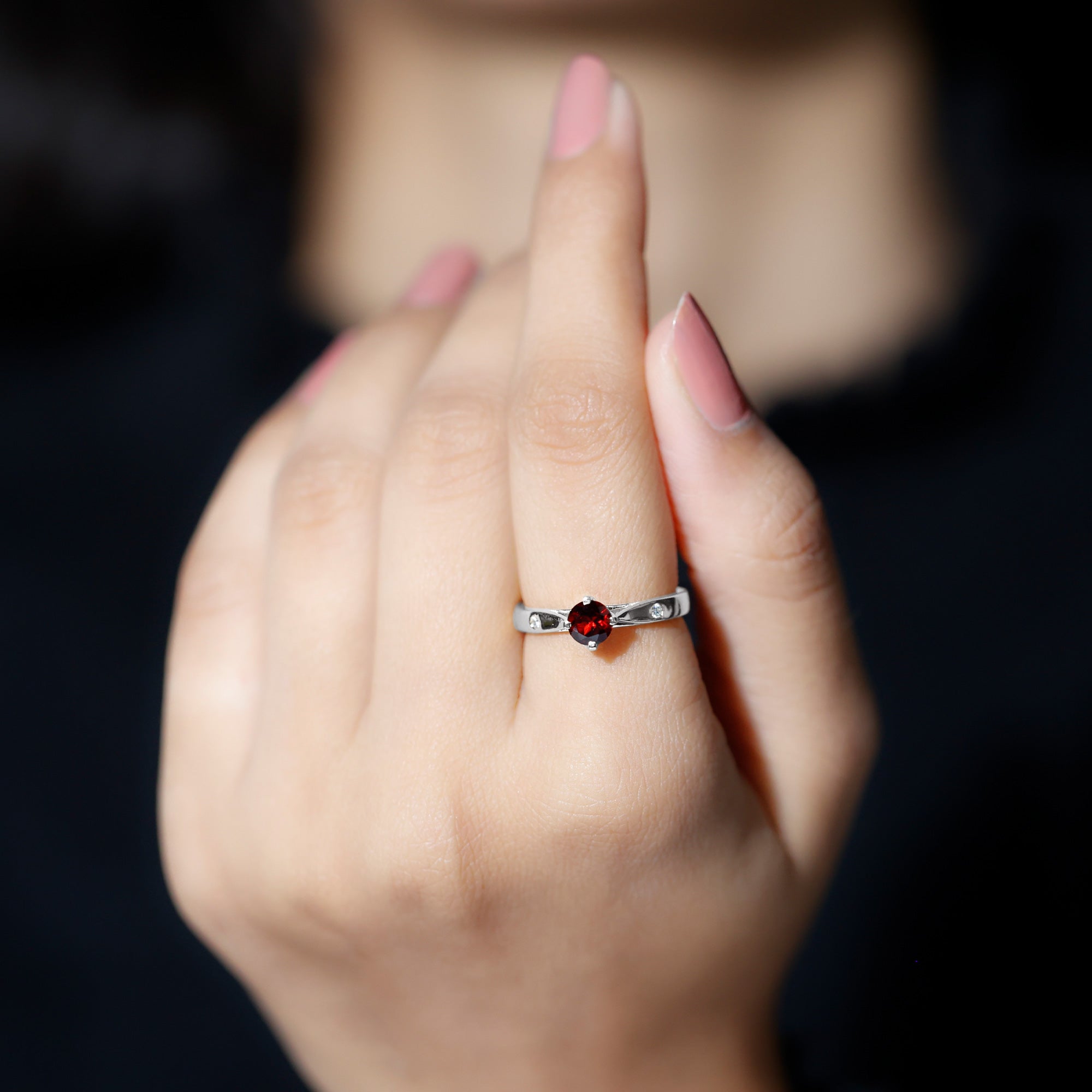 Natural 8mm Round Garnet Solitaire Engagement Ring