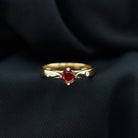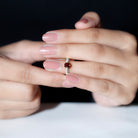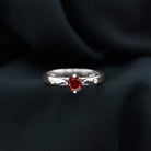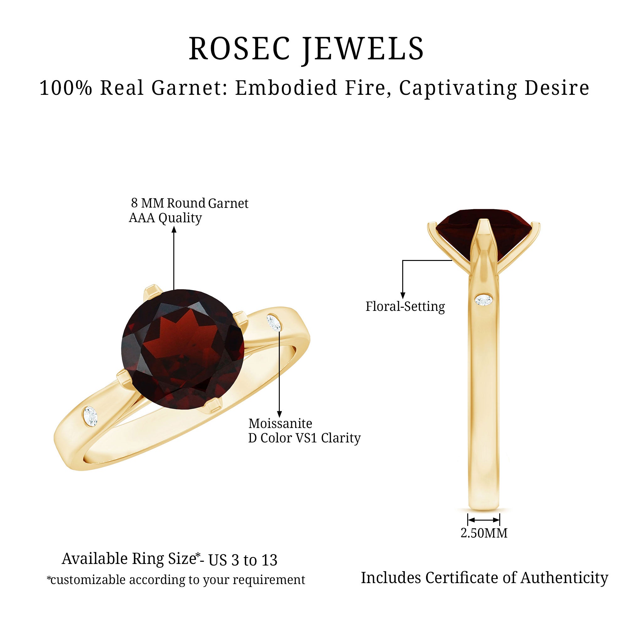 Designed to express the depth of your love, this stunning Garnet Engagement Ring is a bold yet graceful statement of your commitment. The 8 mm Round Shape Garnet at the center, with its deep red hue, captures the passion and intensity of your relationship. Paired with a delicate Moissanite stone set on each side of the Pinched Shank, this Solitaire Engagement Ring with Garnet shines with extra brilliance, adding a touch of elegance and sparkle to the design. The contrast between the Red Garnet of AAA Quality and the dazzling D-VS1 Moissanite creates a harmonious balance of warmth and light, making this Garnet Birthstone Ring a timeless piece that symbolizes your unique bond. The Pinched Shank provides a modern twist, with its sleek and slender design drawing the eye toward the centerpiece, creating a ring that feels both classic and contemporary. Presented in a signature jewelry box, this Garnet Ring for Women is as much a treasure as the love it represents. Available in various ring sizes, it is ready to fit your loved one perfectly. Whether it is the beginning of forever or a promise kept, this ring will carry the story of your eternal love for years to come.