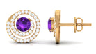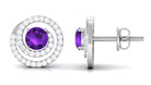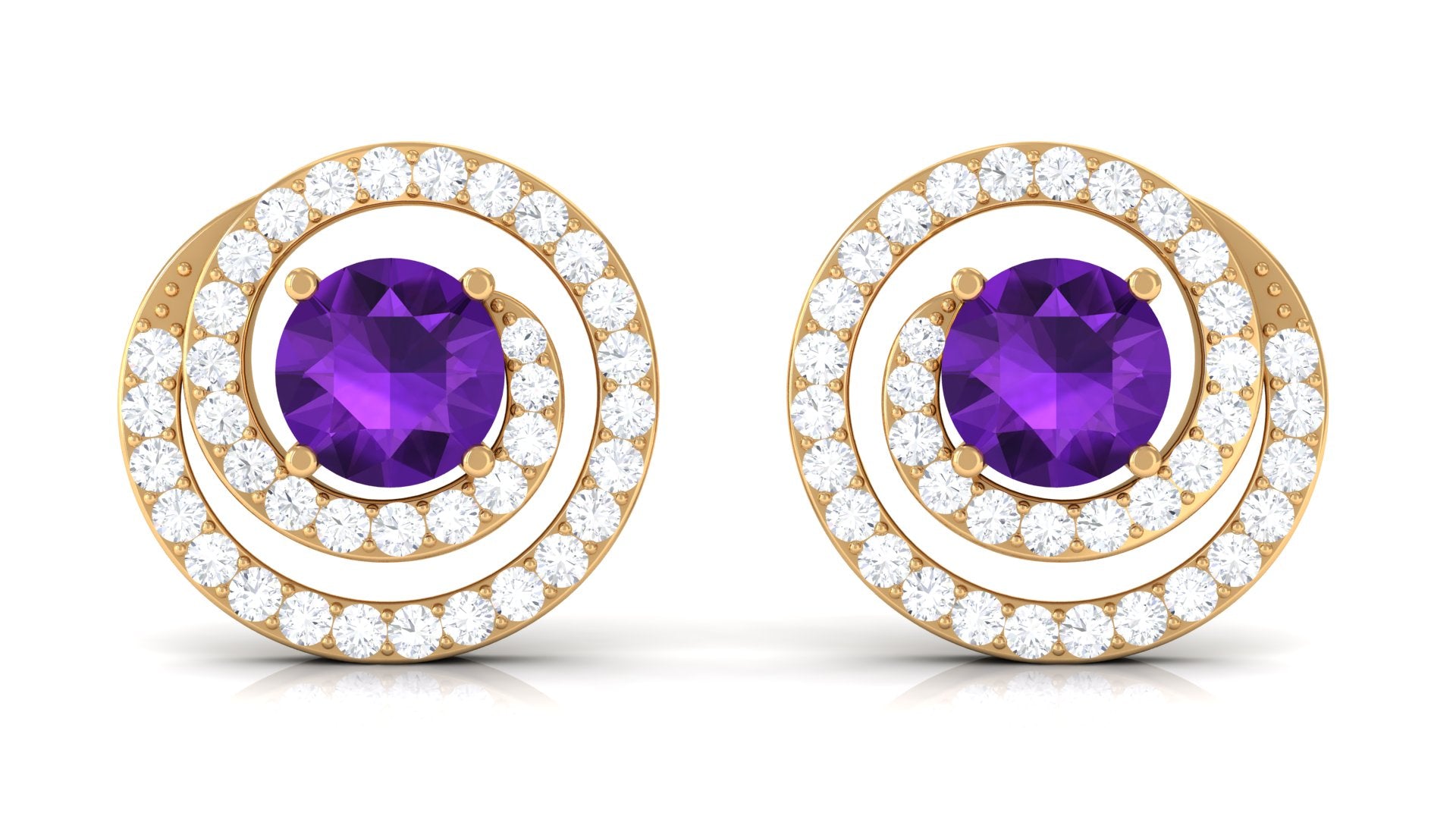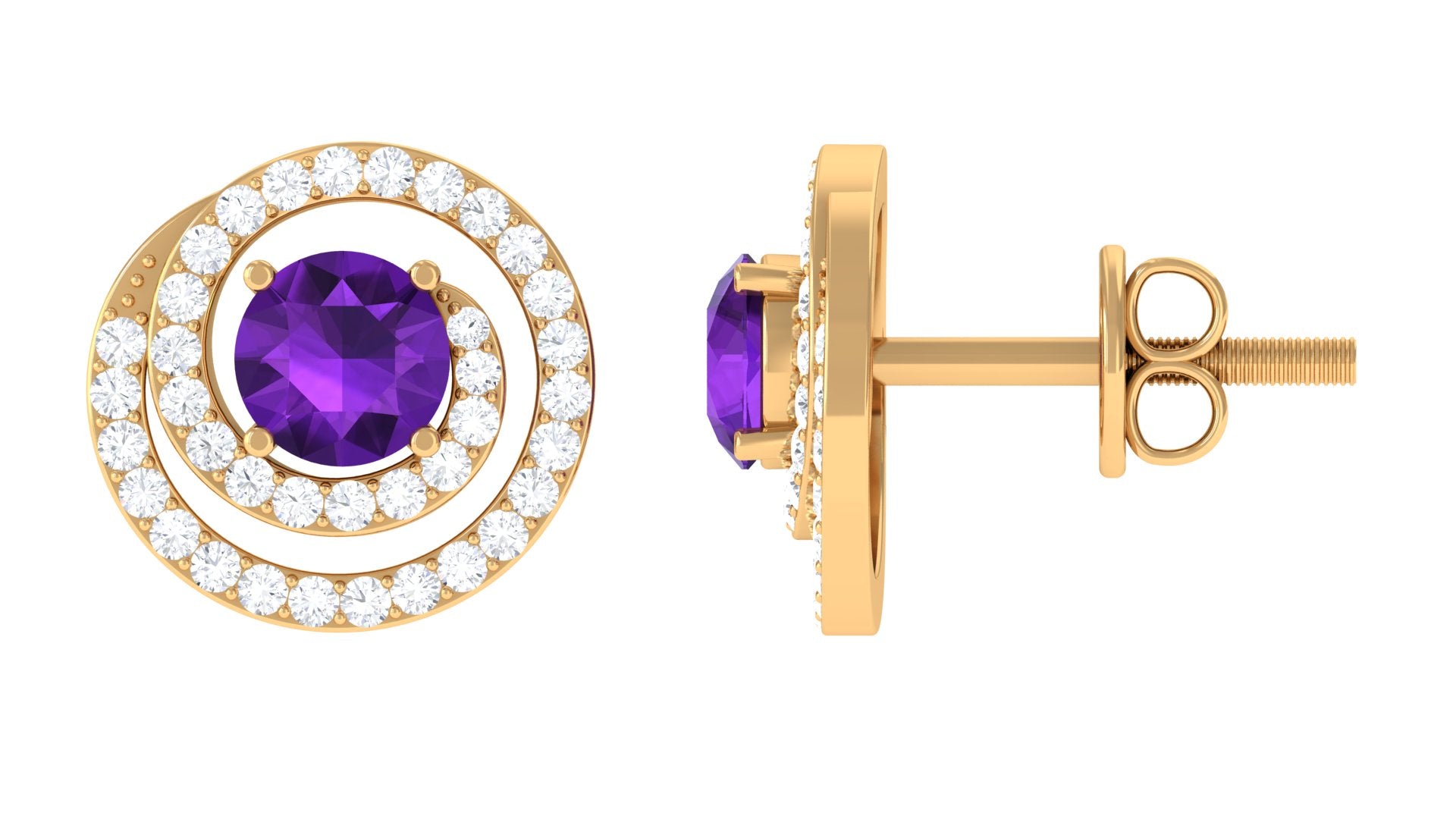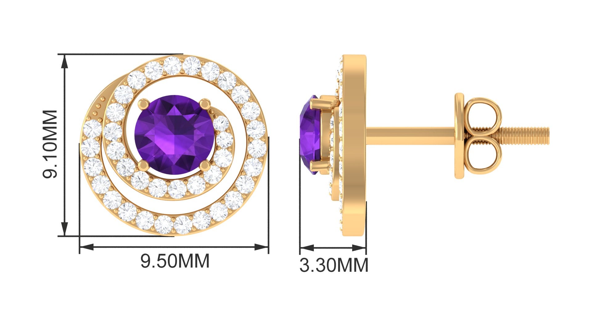 Add a touch of graceful charm and timeless sparkle with these Swirl Earrings, a stunning expression of refined elegance. At the center of each earring rests a vibrant 5 mm Round Shape Amethyst gemstone set in Prong Setting, glowing with regal purple hues that symbolize passion and serenity. Surrounding it, delicate Diamond stones trace an enchanting Swirl design, catching the light with every movement and creating a dance of brilliance that feels both modern and romantic. The elegant Screw Back Closure ensures comfort and security, allowing you to wear them effortlessly from day to night. Whether paired with an evening gown or a simple dress, these Amethyst Diamond Earrings bring an instant touch of luxury and sophistication to any look. Designed to celebrate love, beauty and individuality, these Amethyst Stud Earrings make a perfect gift for someone special or a meaningful indulgence for yourself. Presented in a beautiful jewelry box, these Amethyst Ear Studs are timeless keepsakes, ready to make every occasion feel unforgettable.