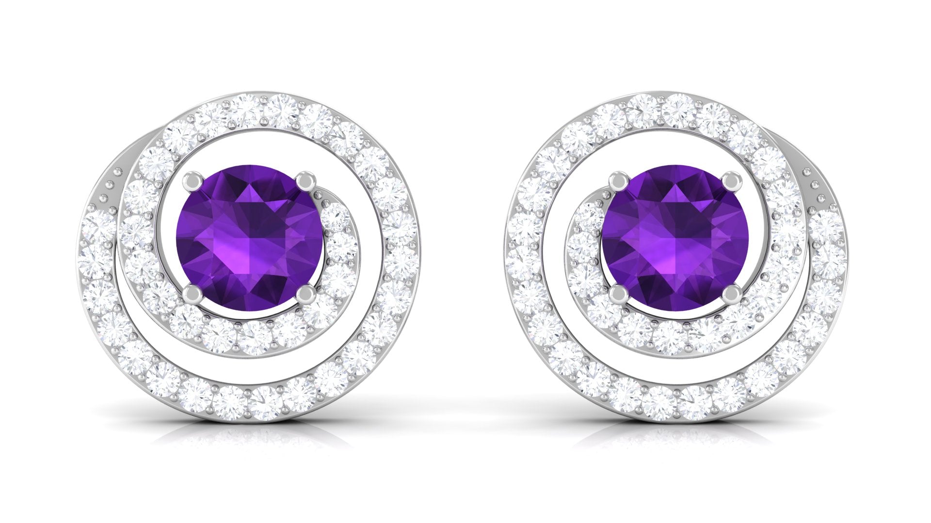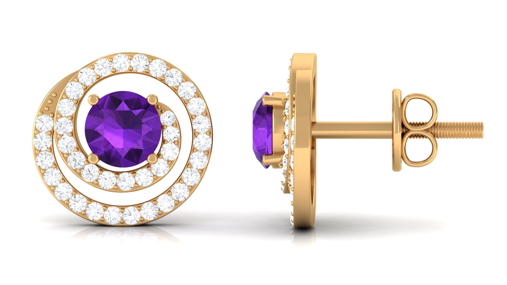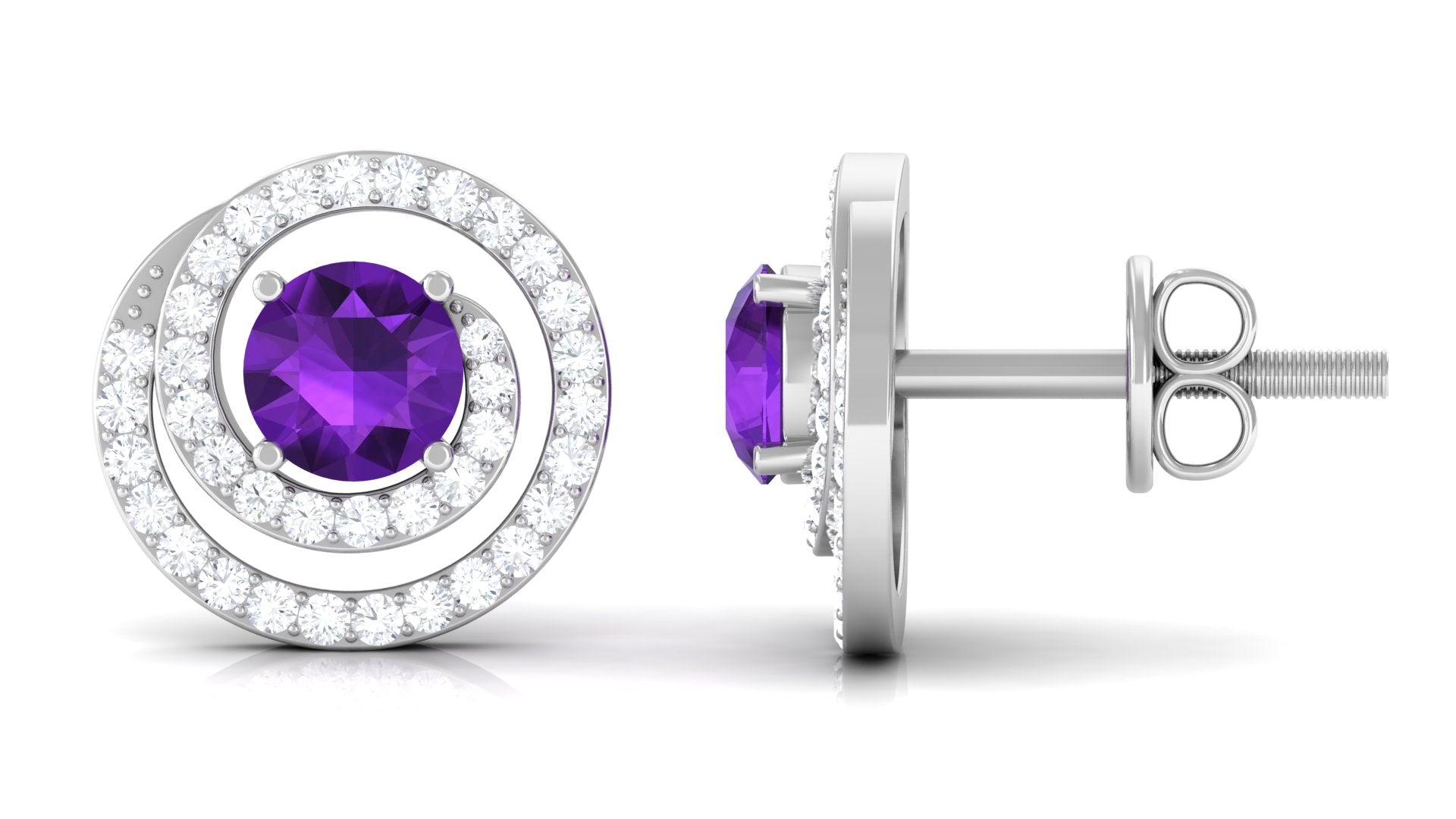 Natural Amethyst Diamond Swirl Earrings with Screw Back
